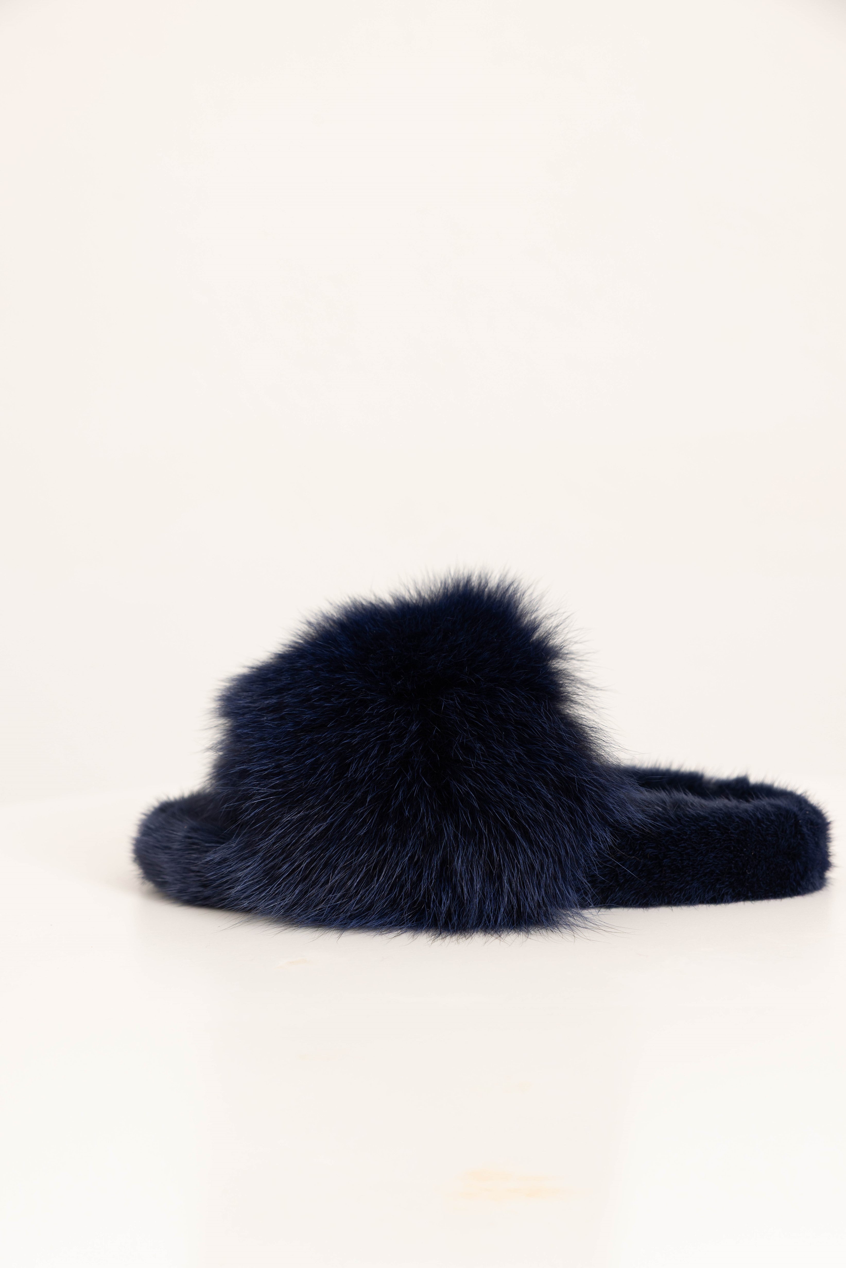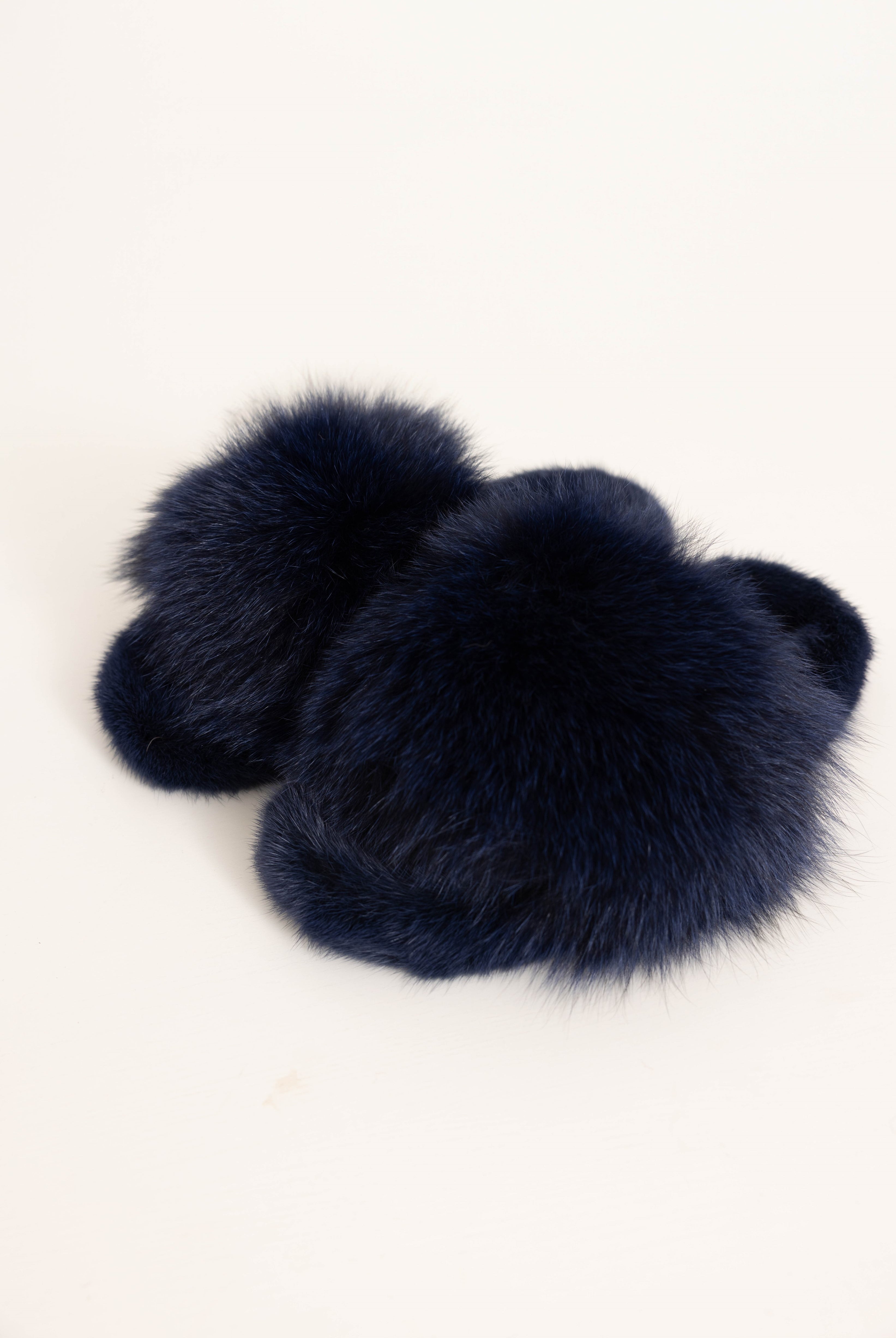 141 recensioniASPEN - Slipper con fascia in volpe e bordatura in visone (Blu Notte)