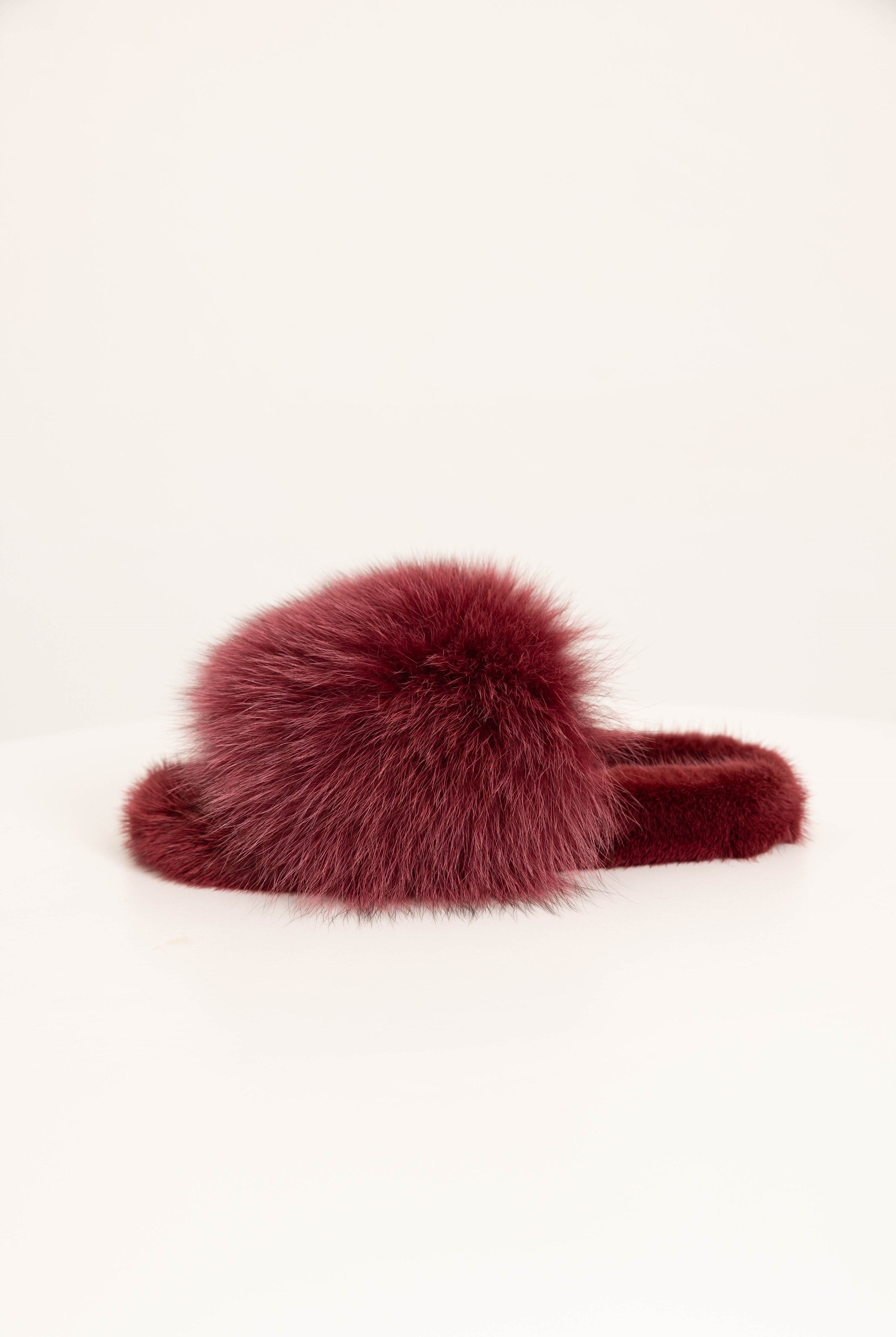 141 recensioniASPEN - Slipper con fascia in volpe e bordatura in visone (Bordeaux)