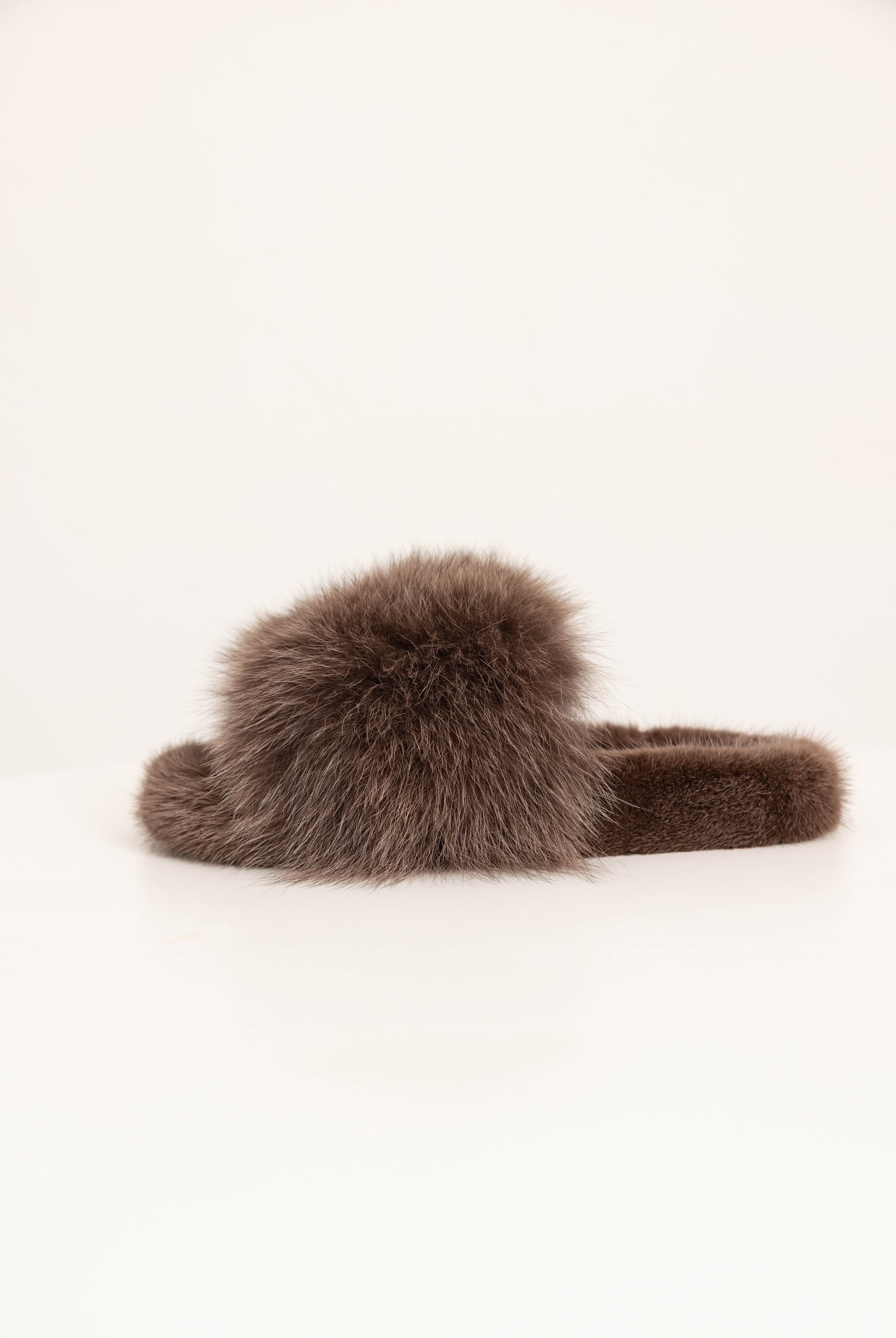 141 recensioniASPEN - Slipper con fascia in volpe e bordatura in visone (Marrone Cioccolato)