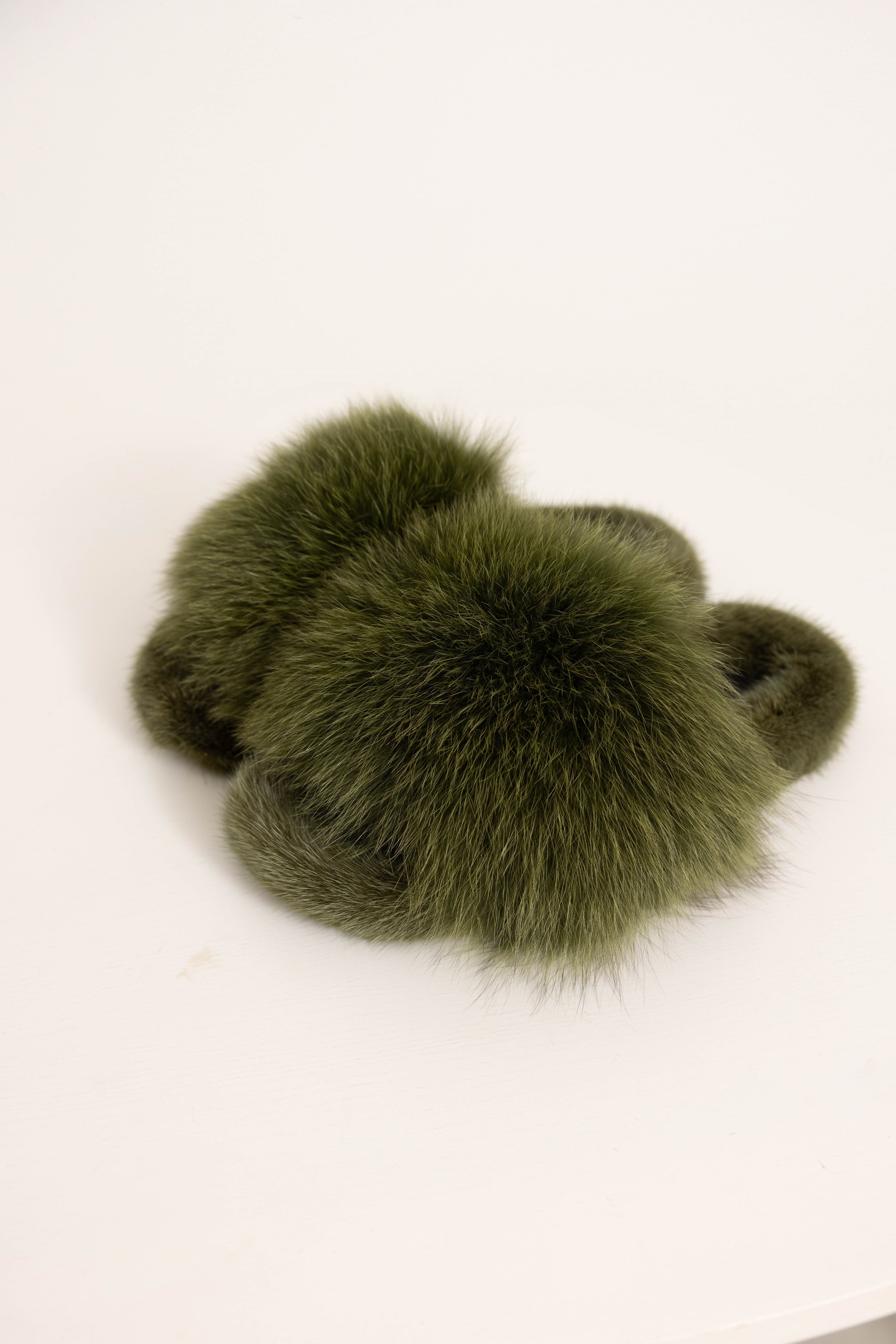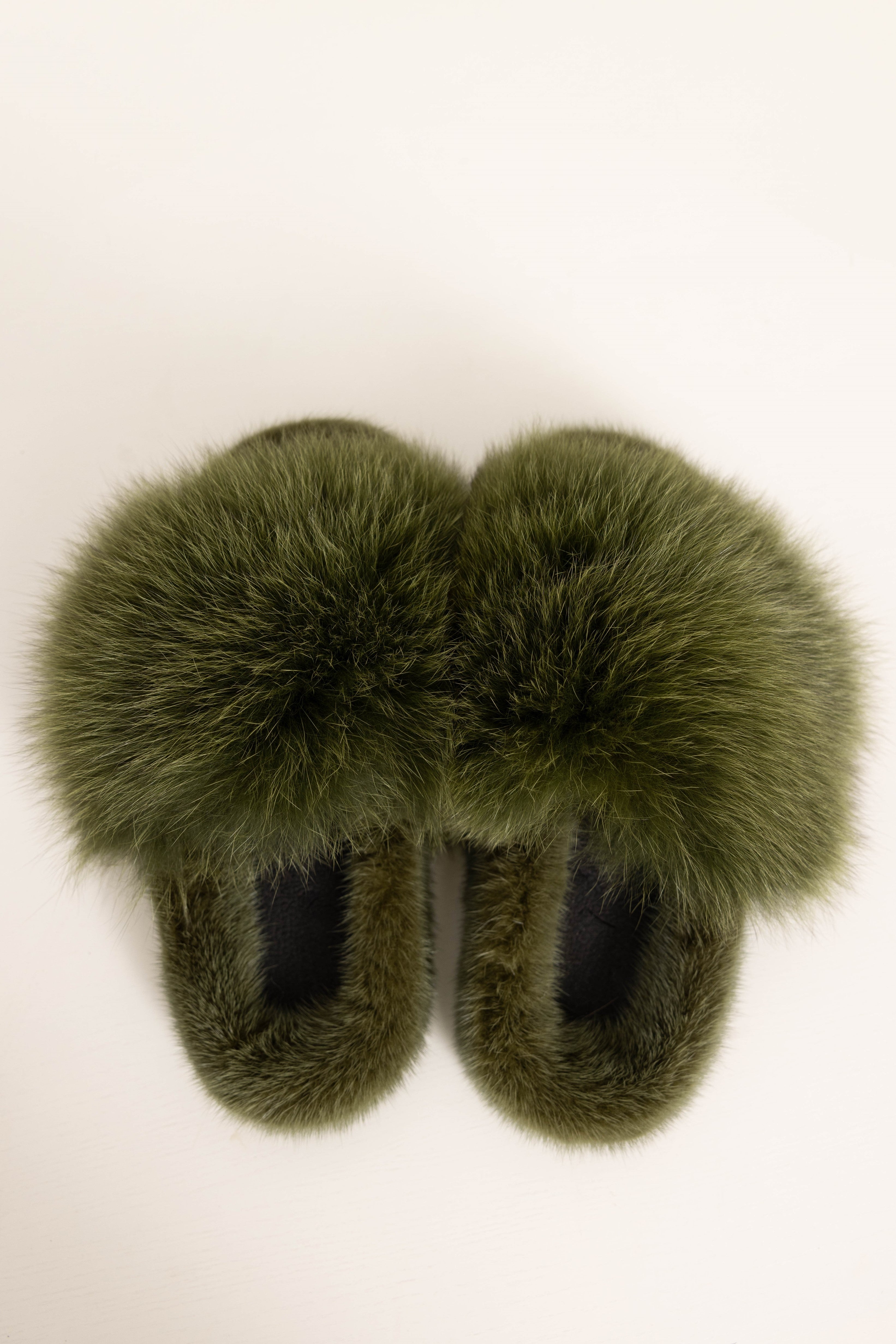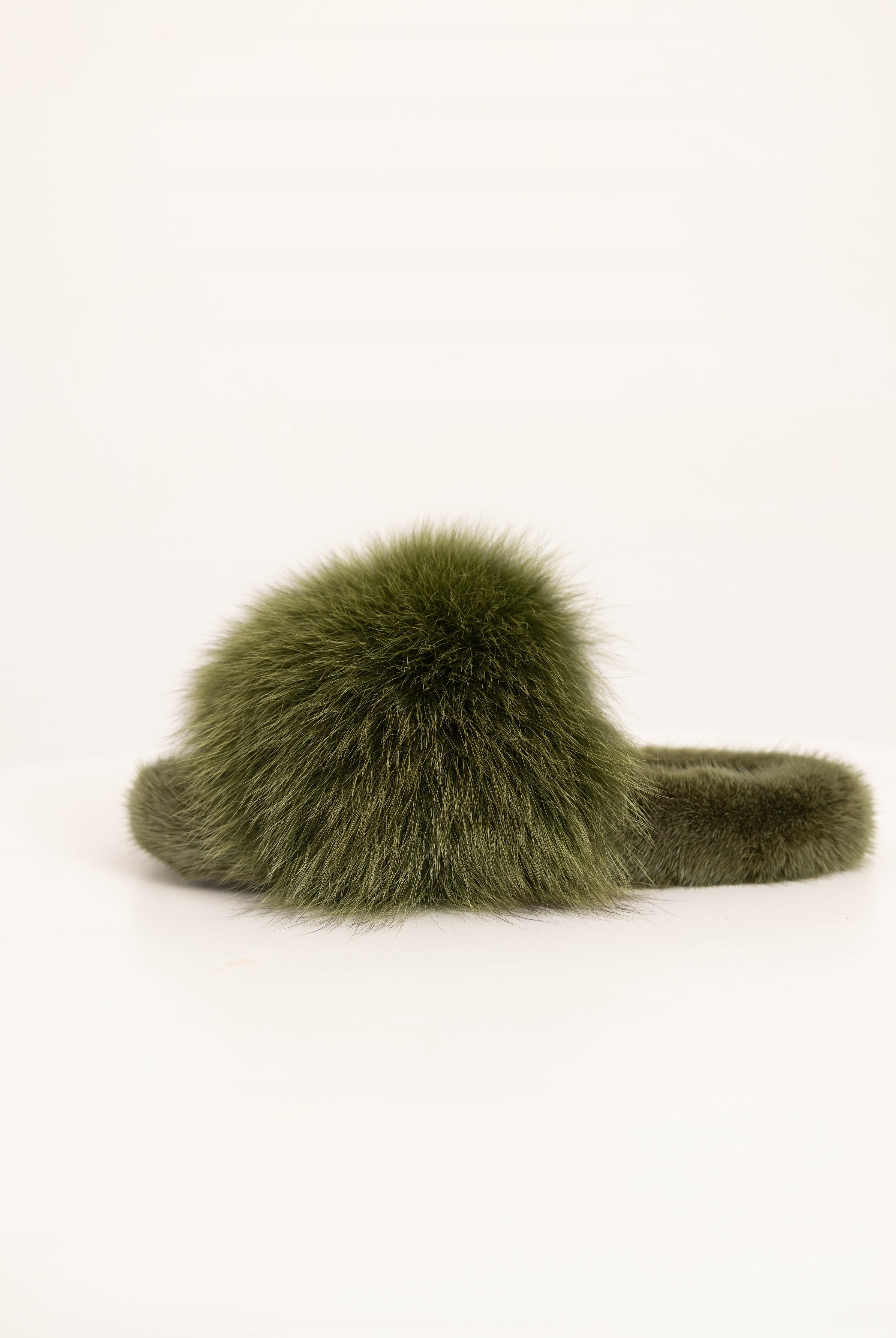 ASPEN - Slipper con fascia in volpe e bordatura in visone (Verde Mimetico)