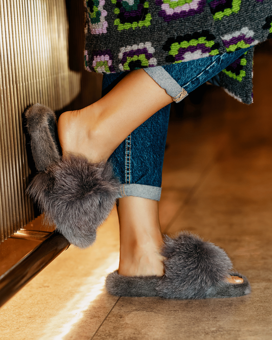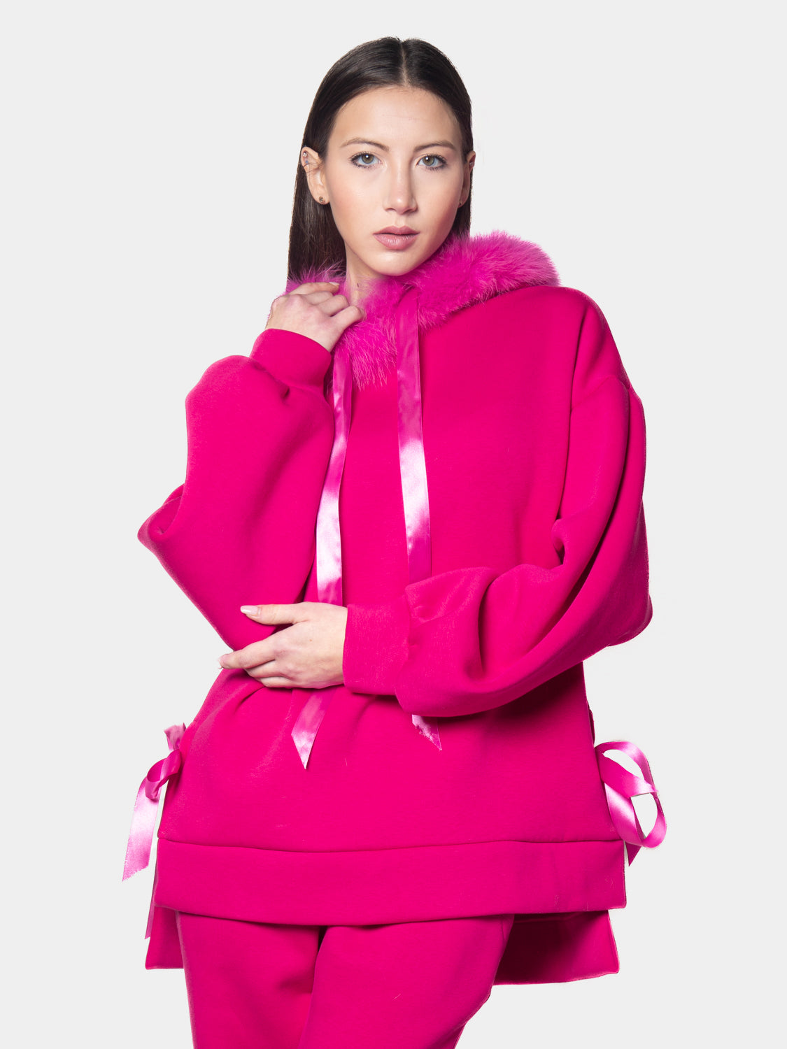LONDRA - Poncho con polsini in volpe (Rosa)