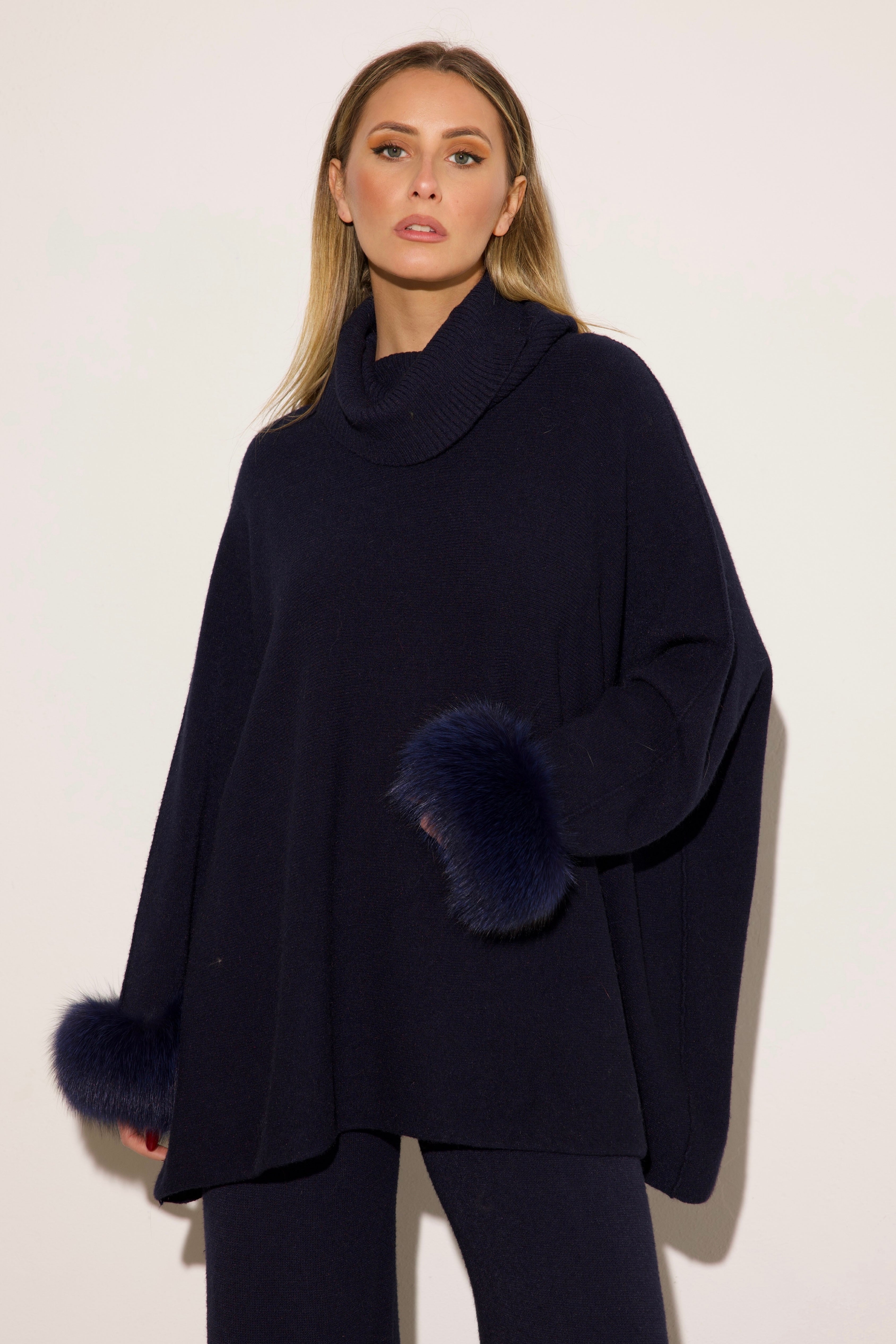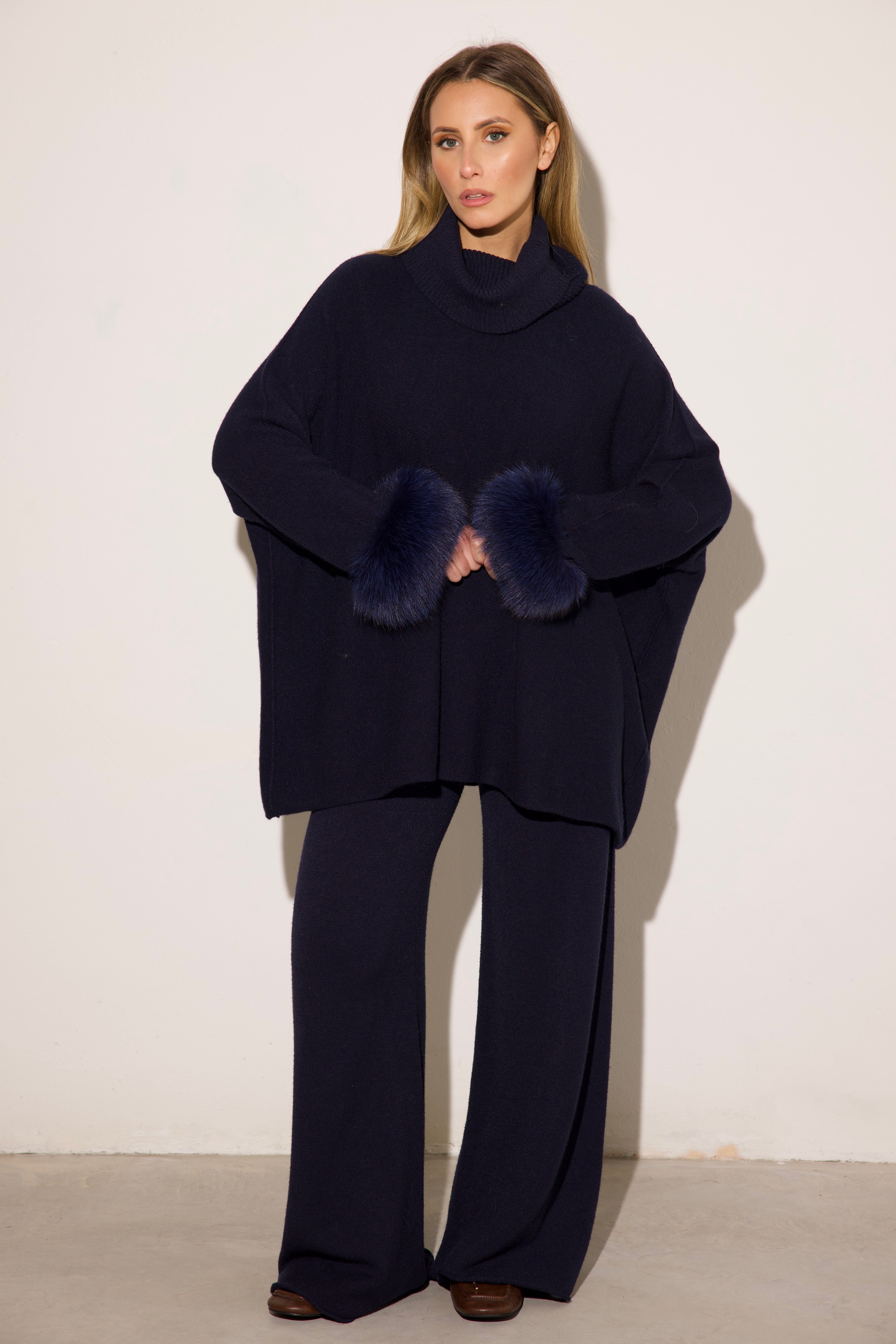 VENEZIA - Completo collo alto polsini in volpe (Blu)