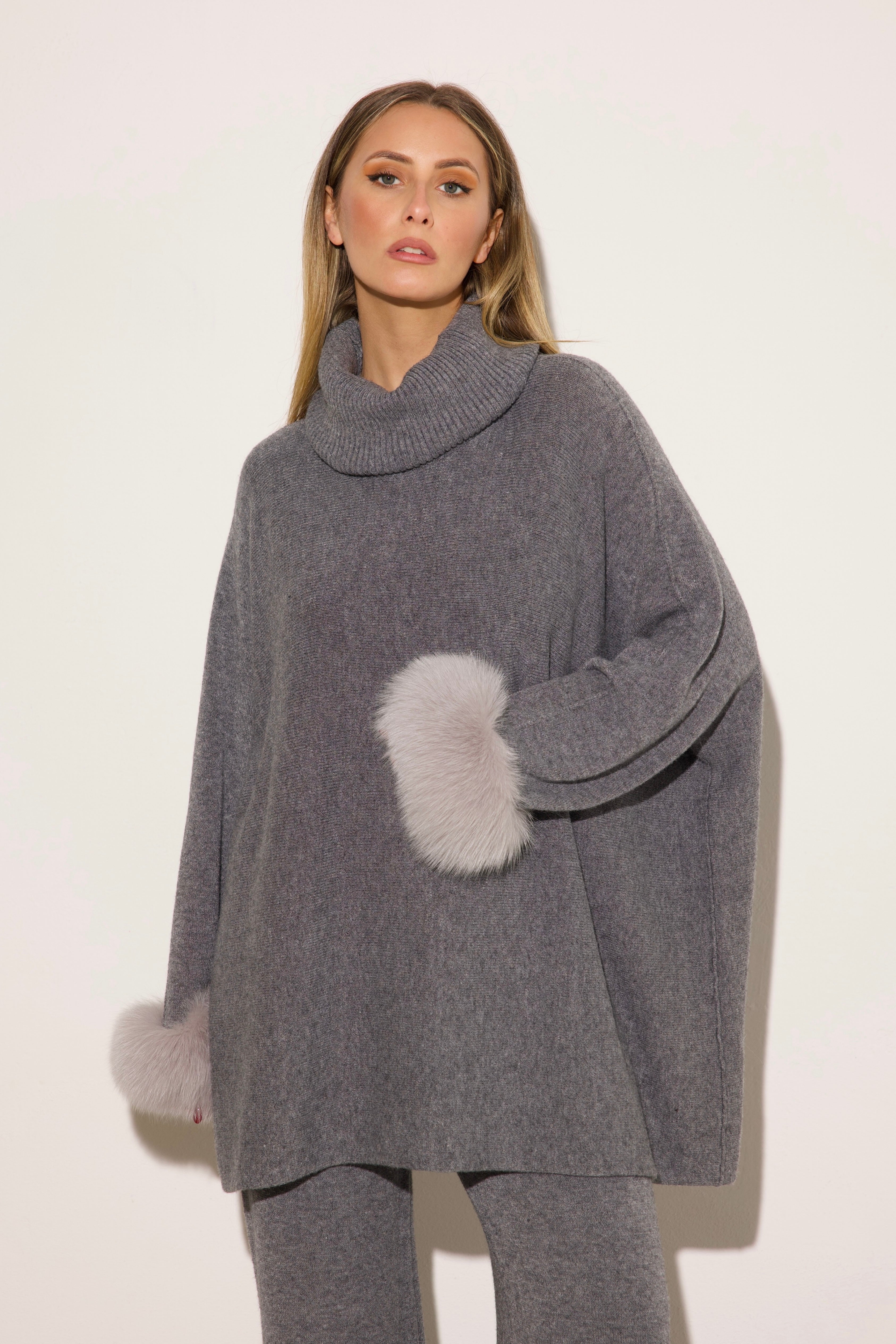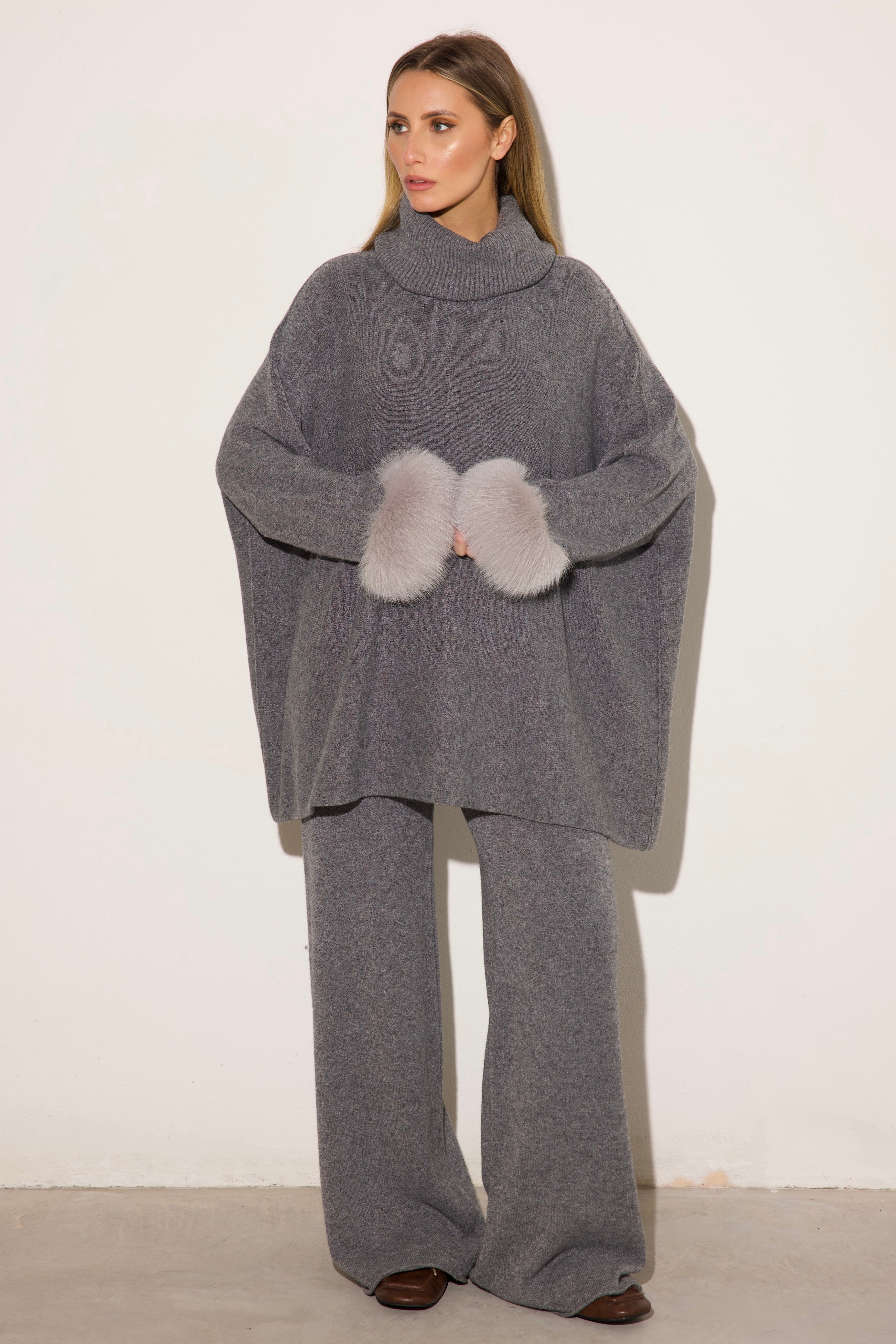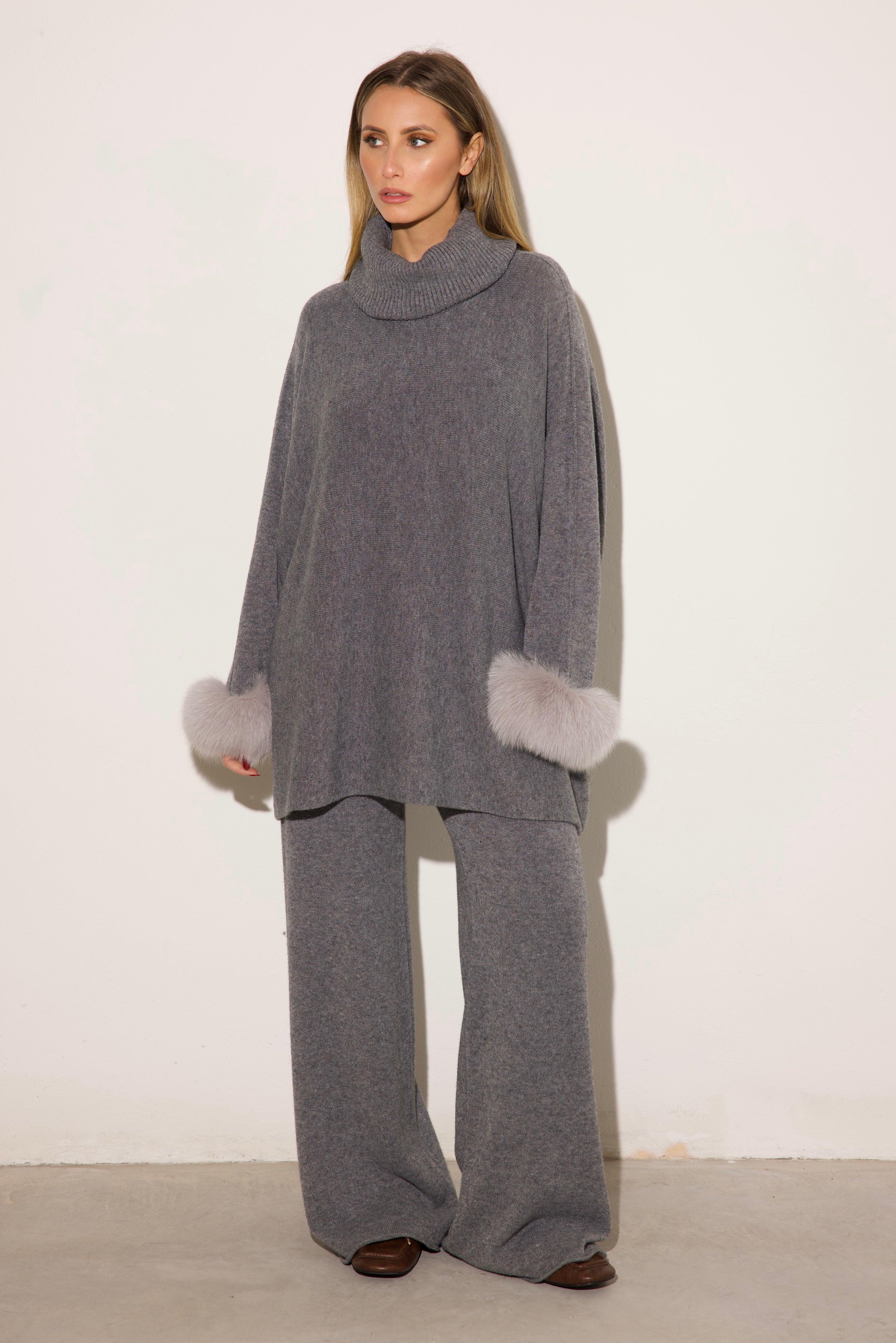 VENEZIA - Completo collo alto polsini in volpe (Grigio)