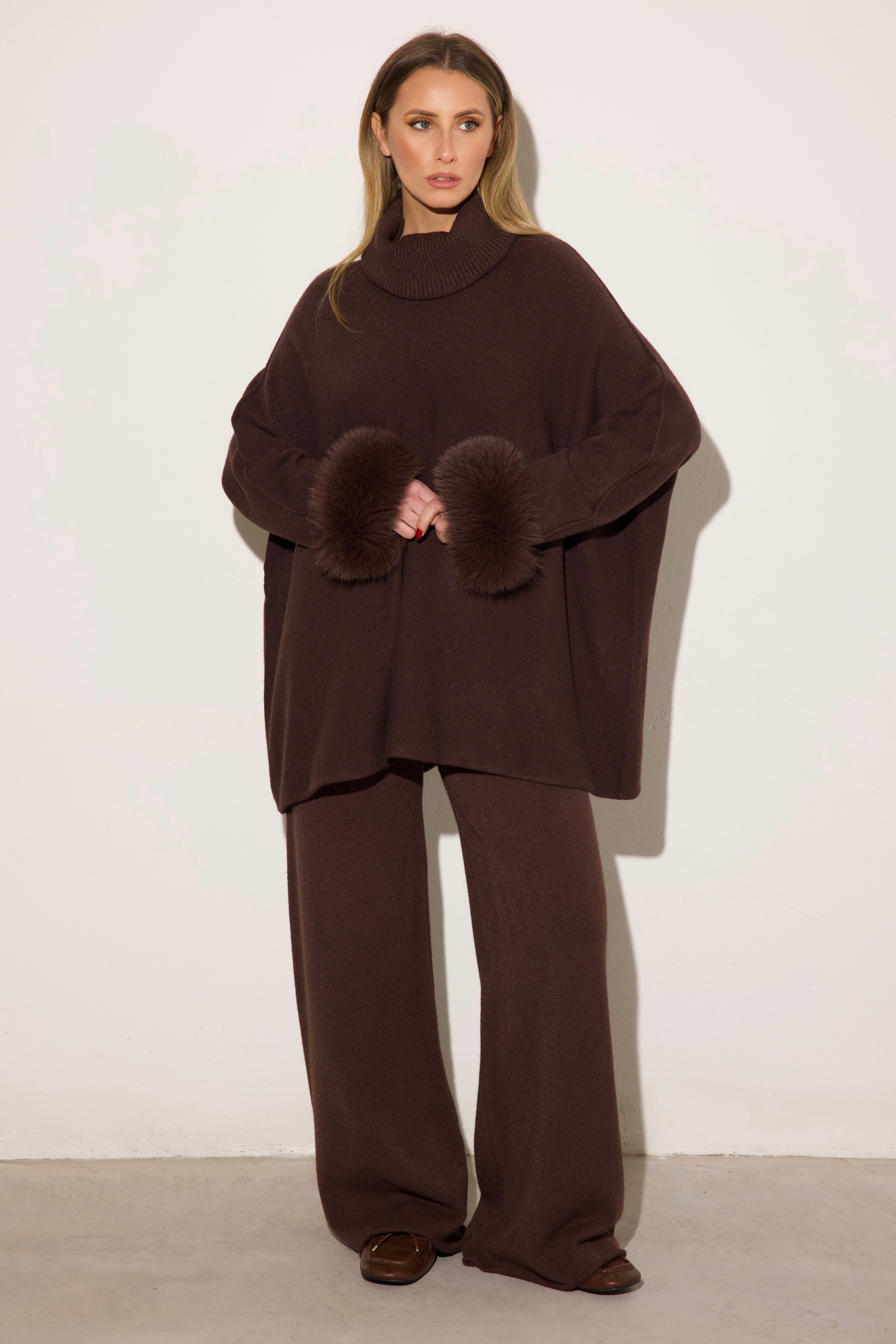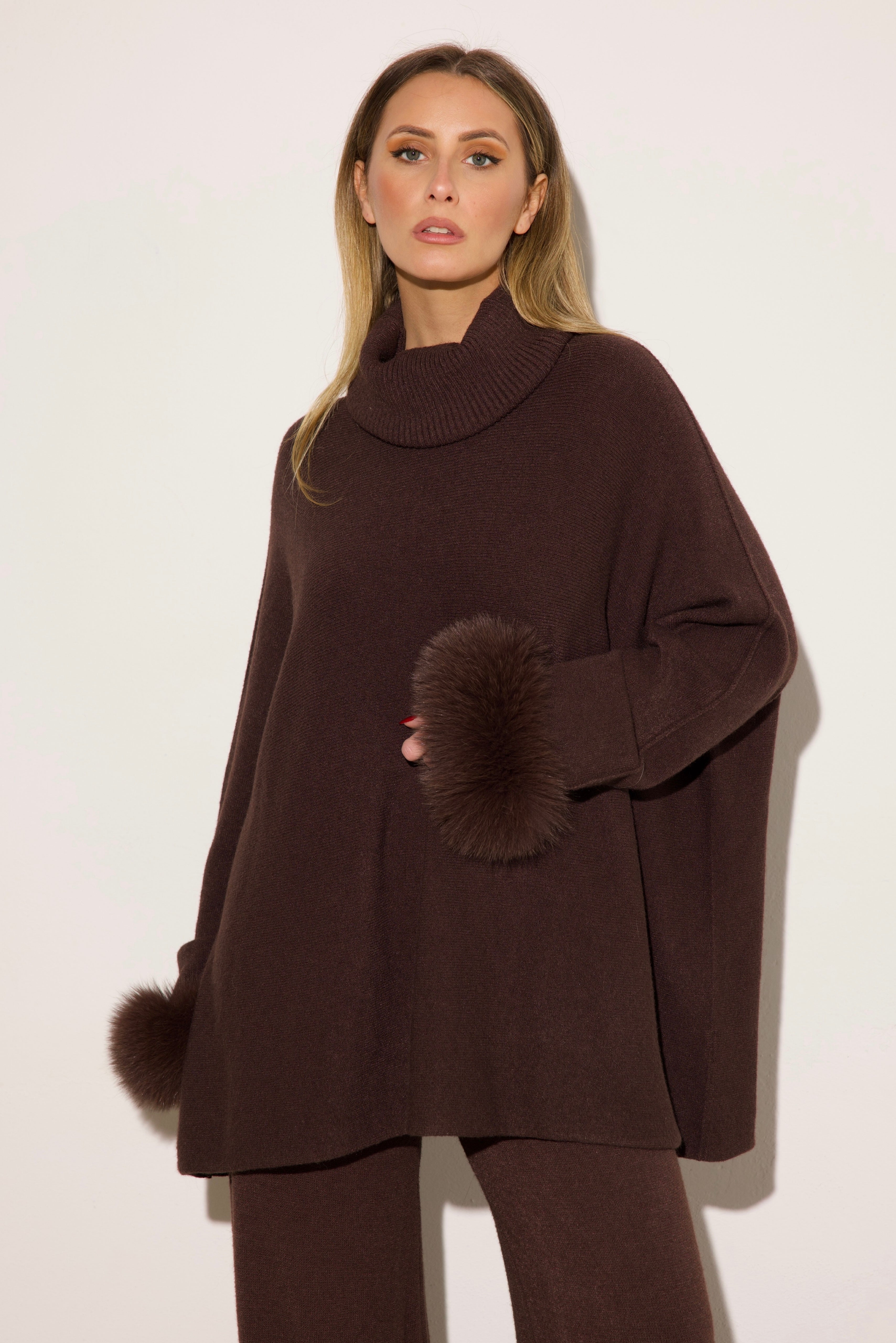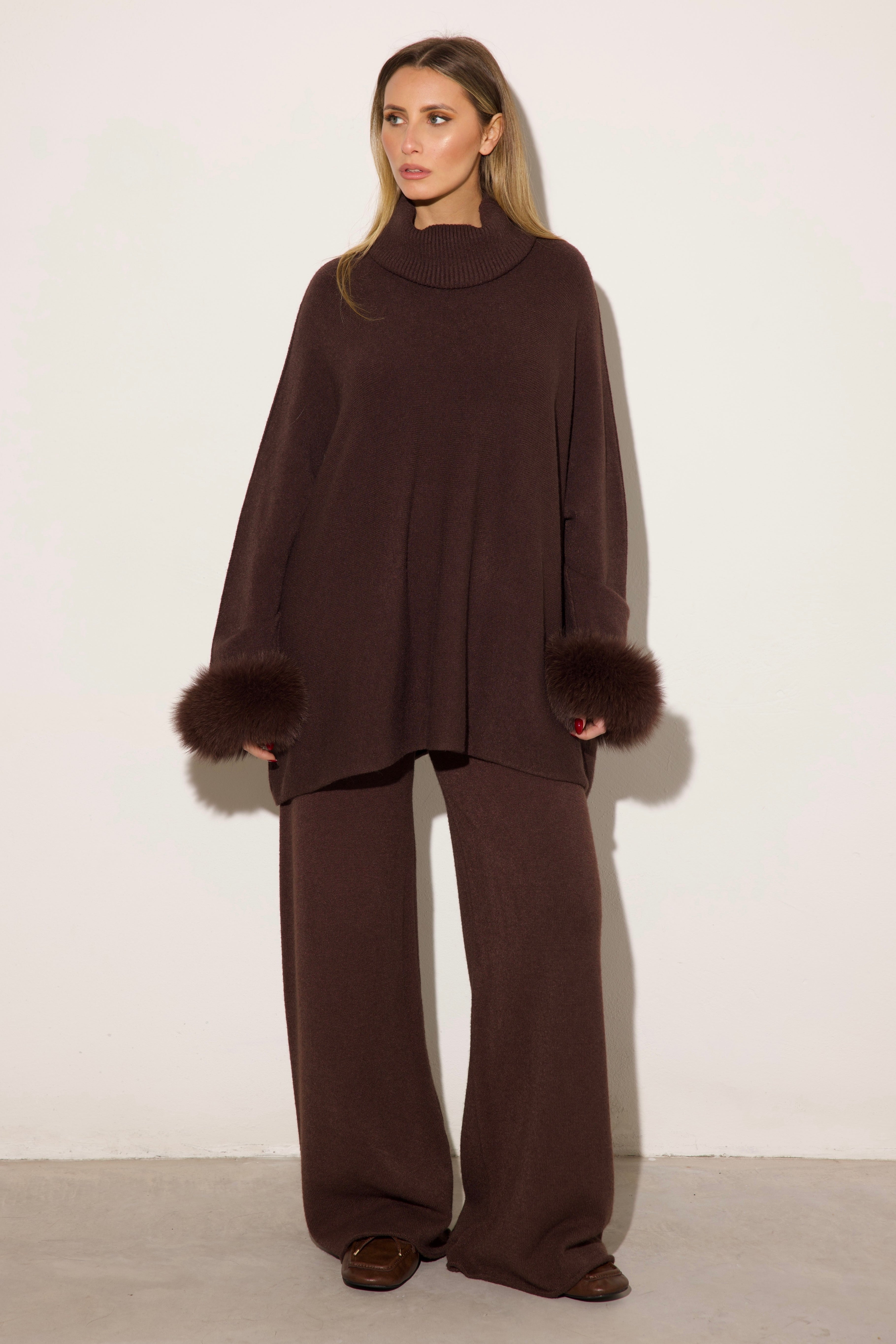 VENEZIA - Completo collo alto polsini in volpe (Marrone)