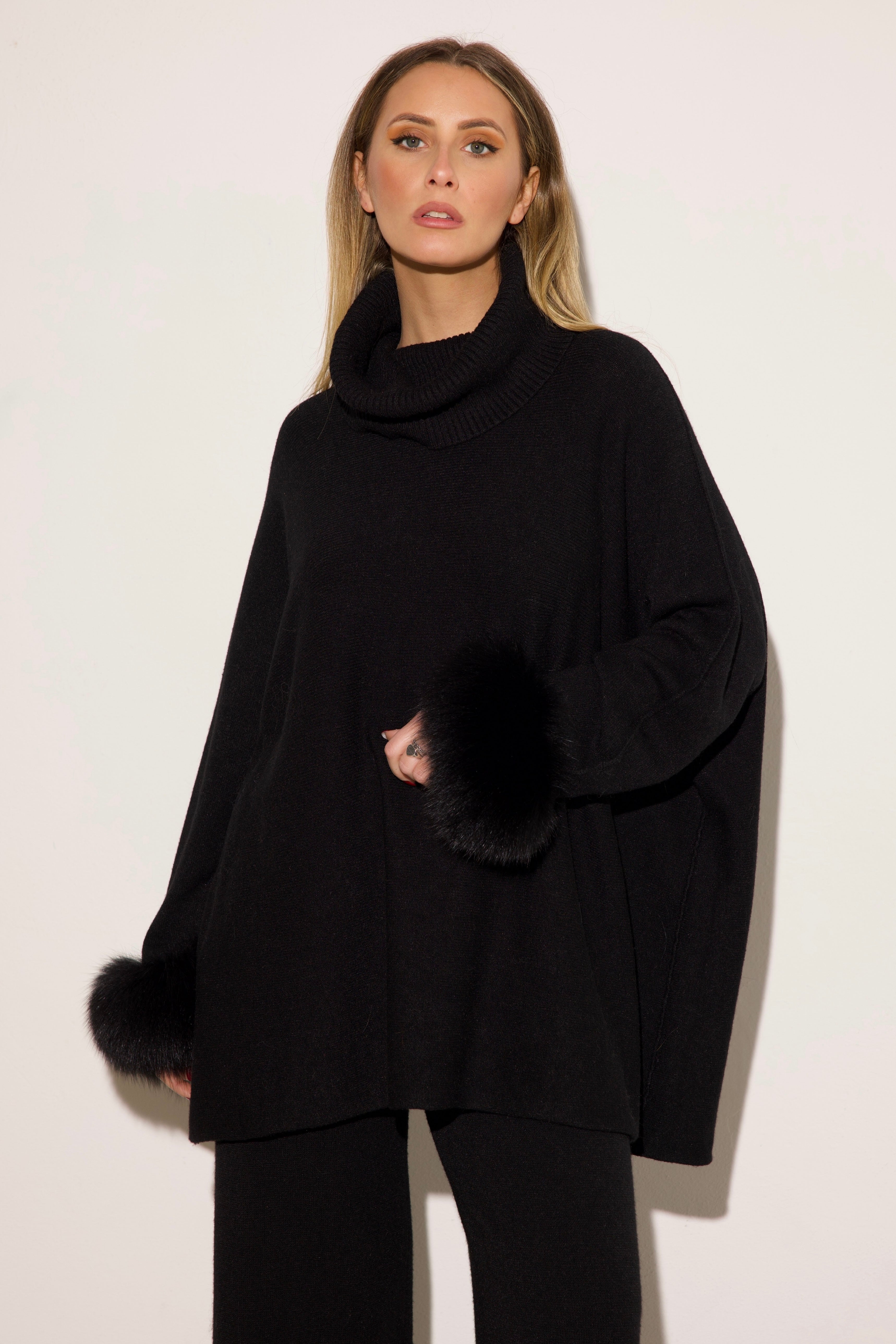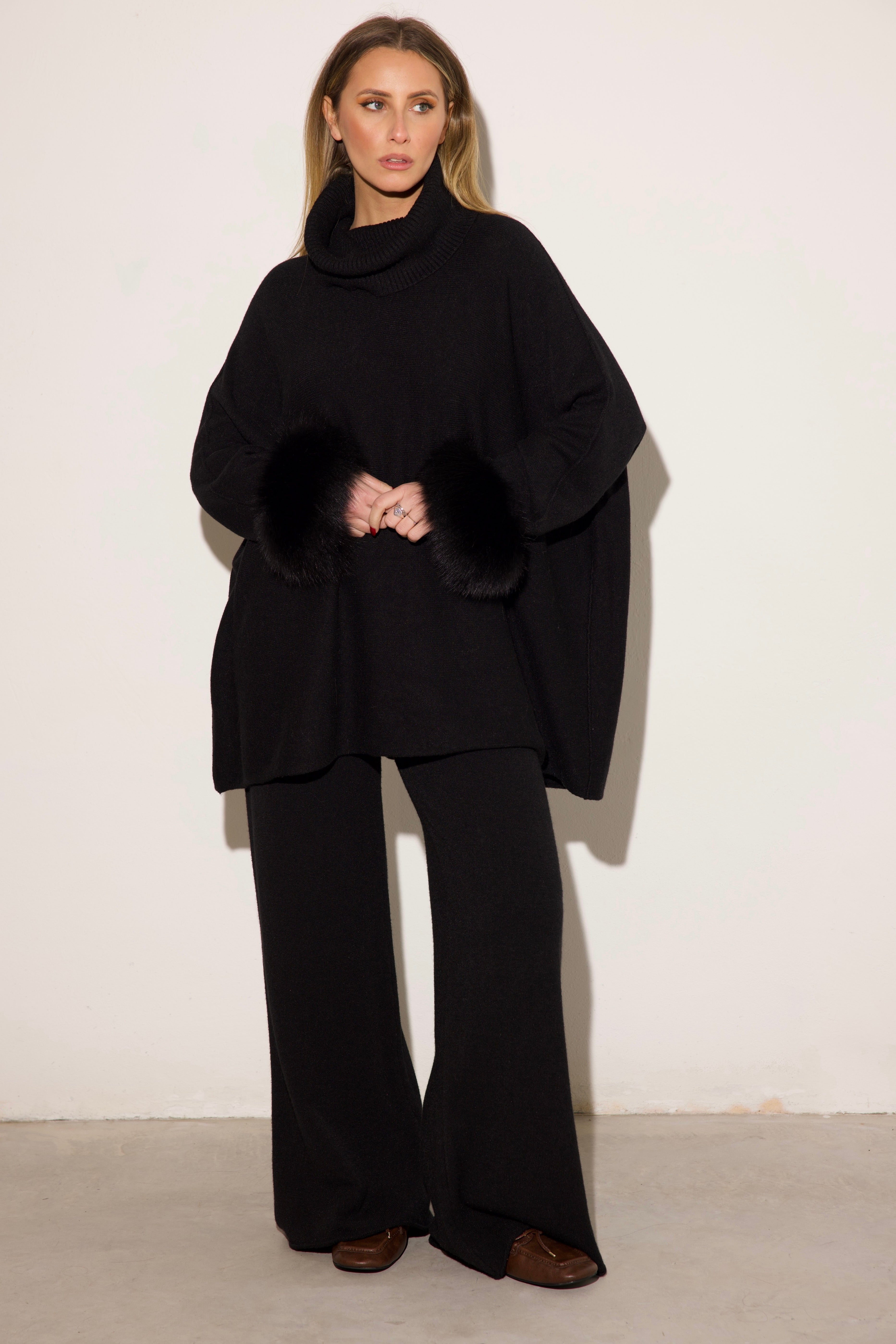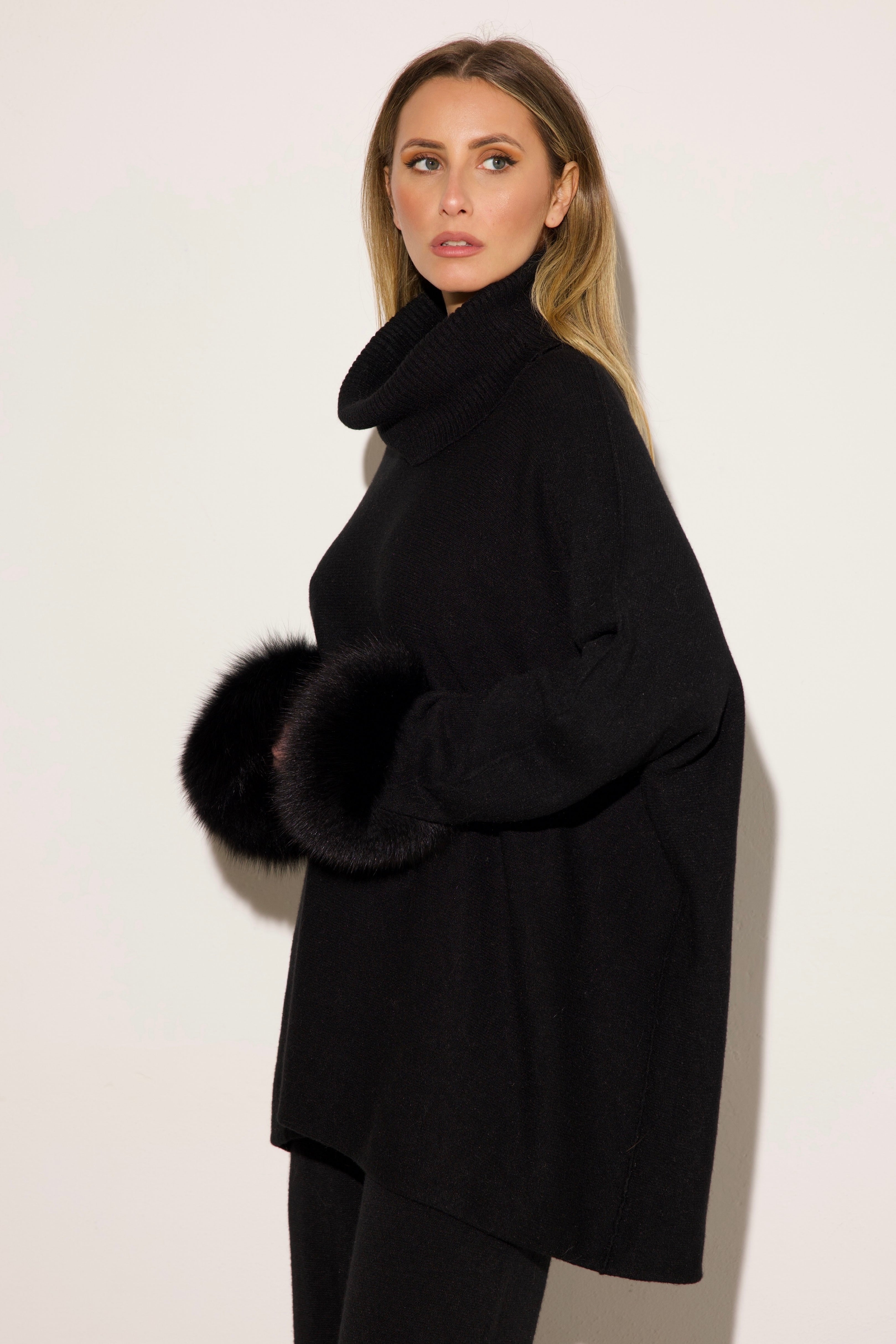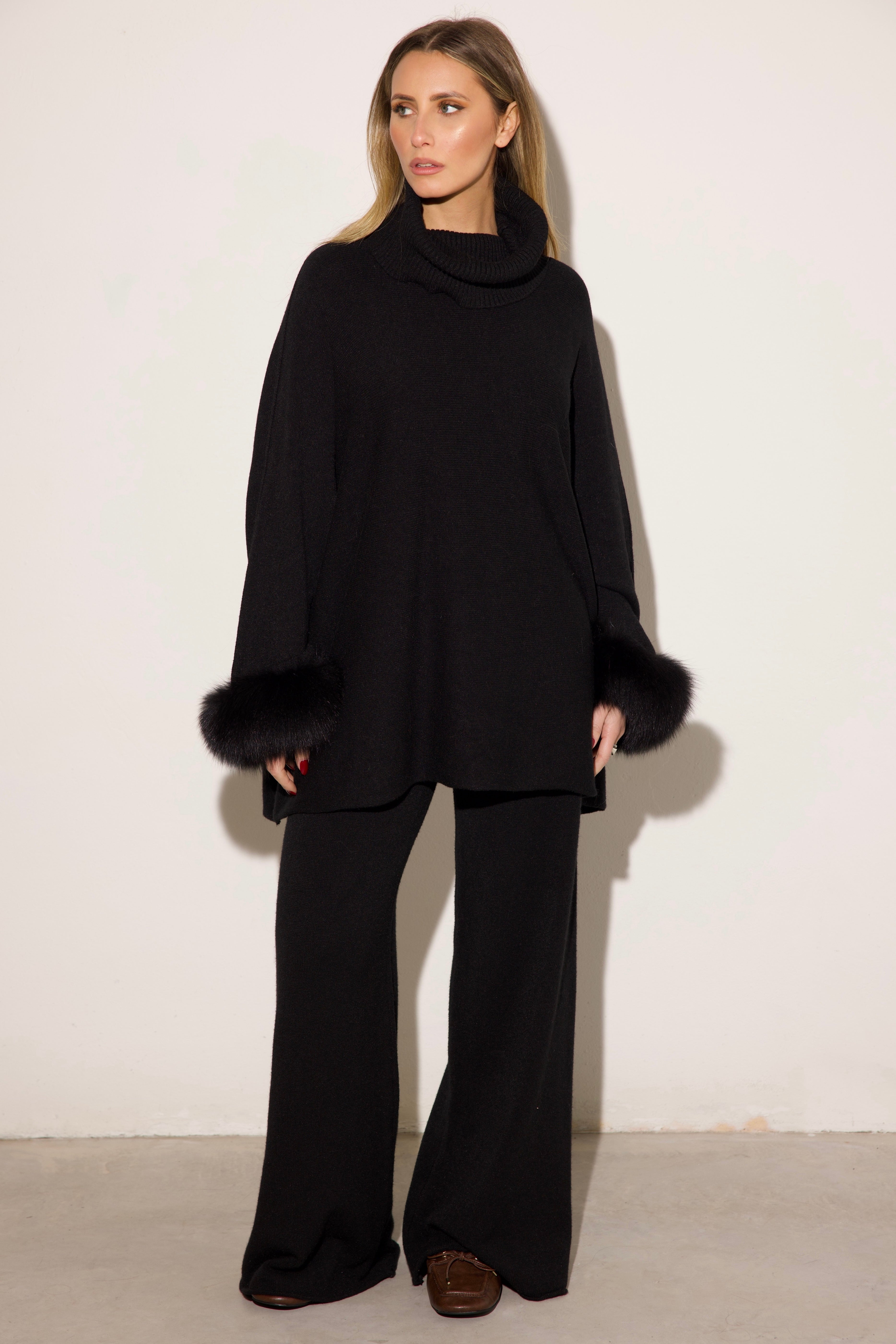 VENEZIA - Completo collo alto polsini in volpe (Nero)