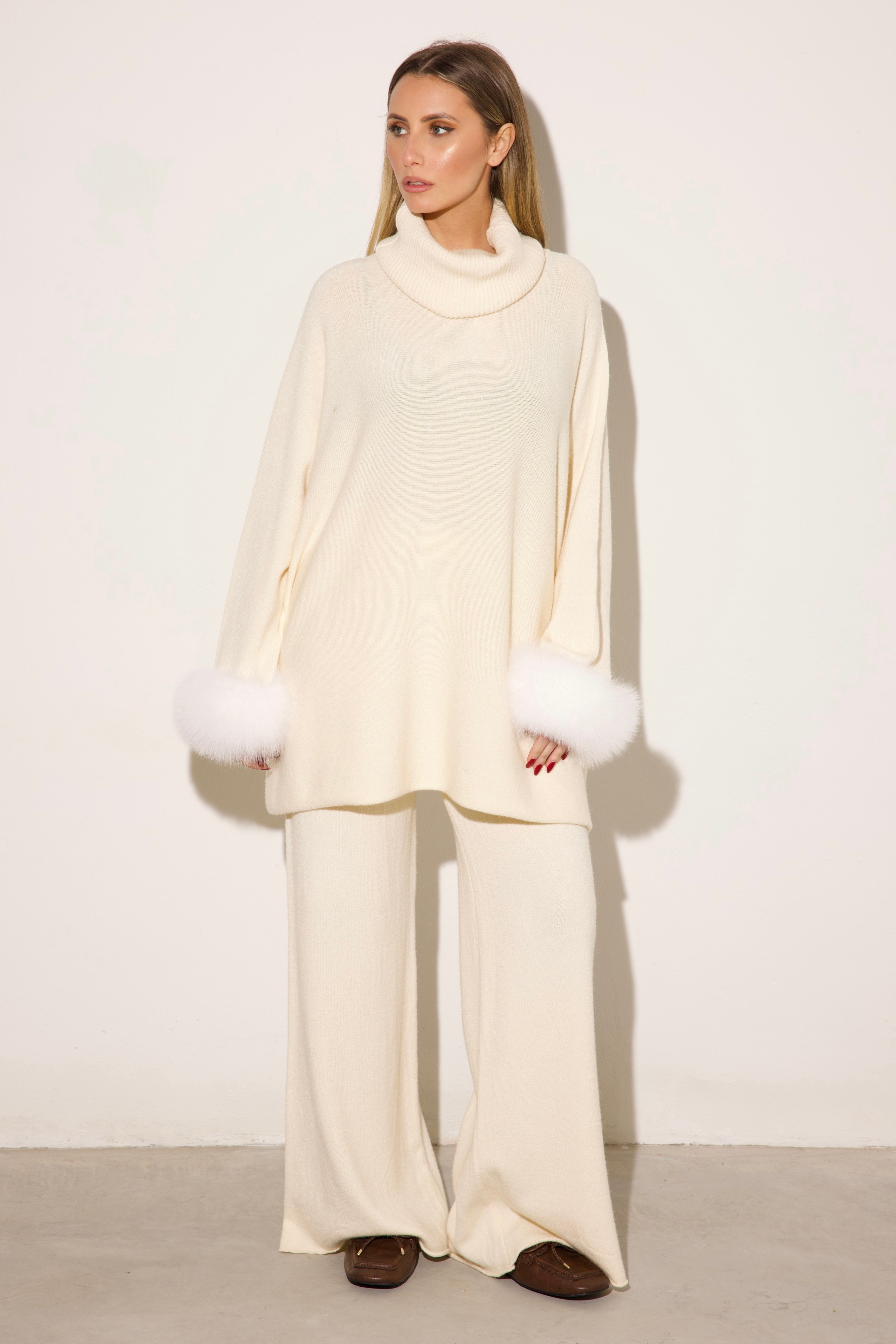 VENEZIA - Completo collo alto polsini in volpe (Panna)