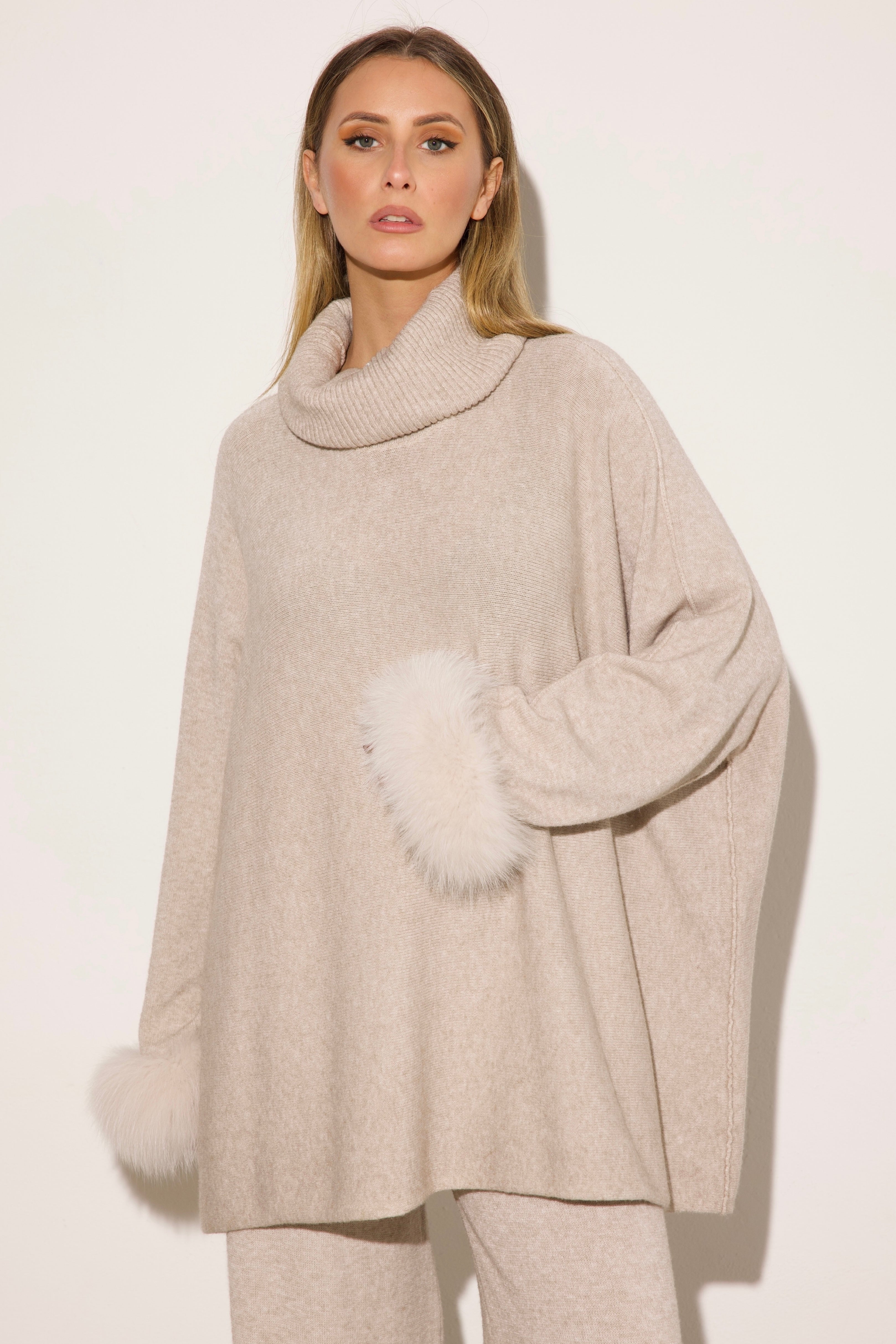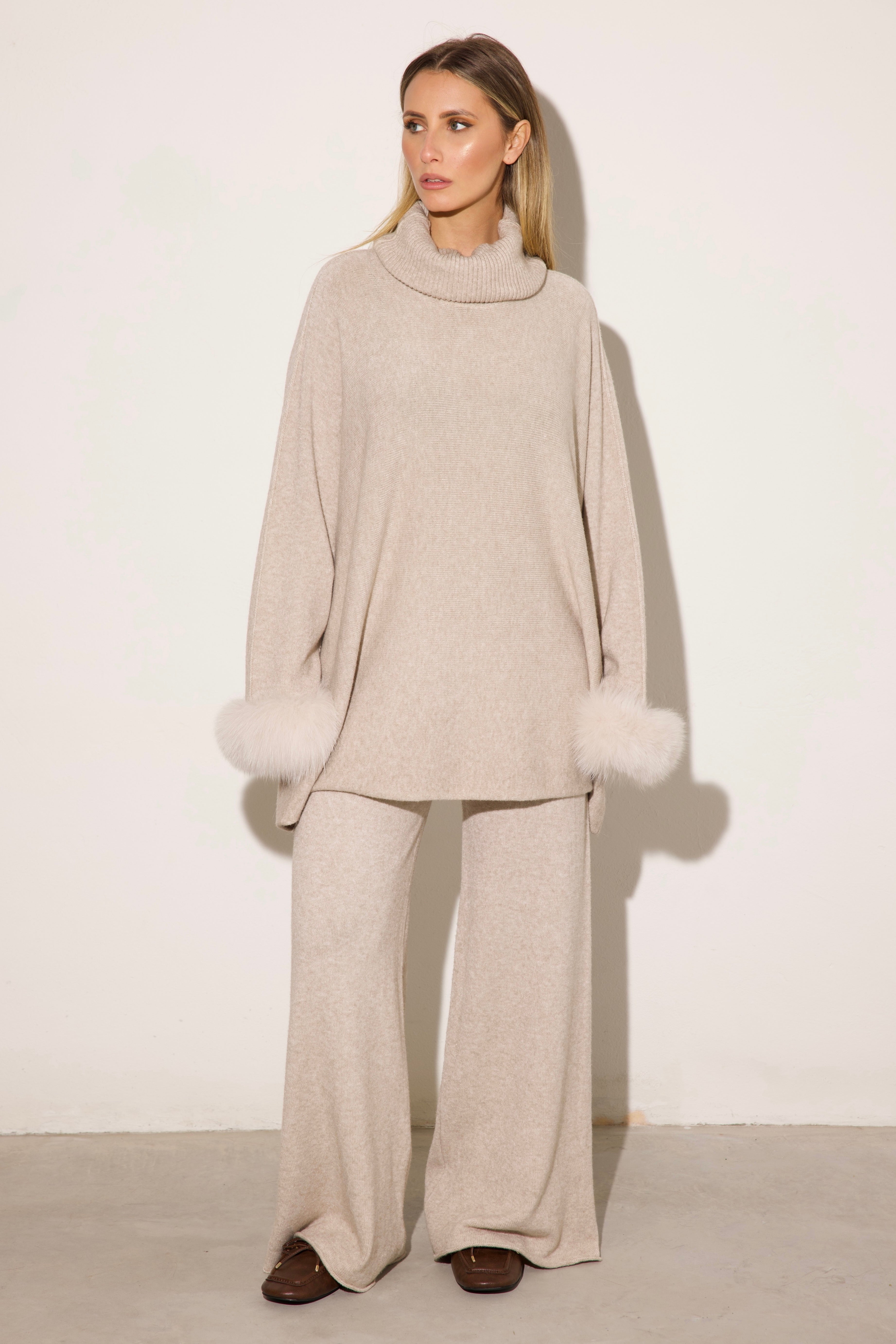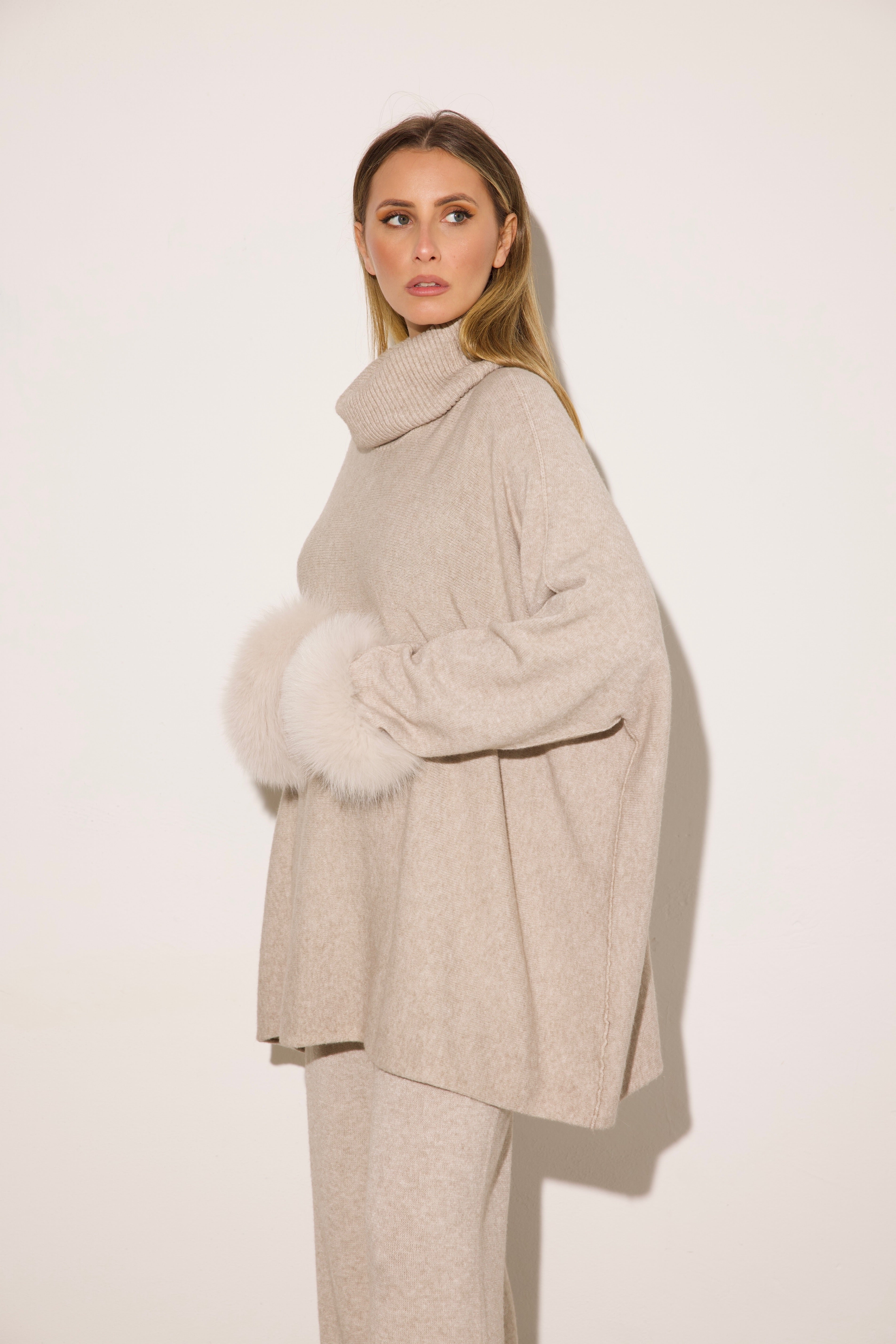 VENEZIA - Completo collo alto polsini in volpe (Sabbia)