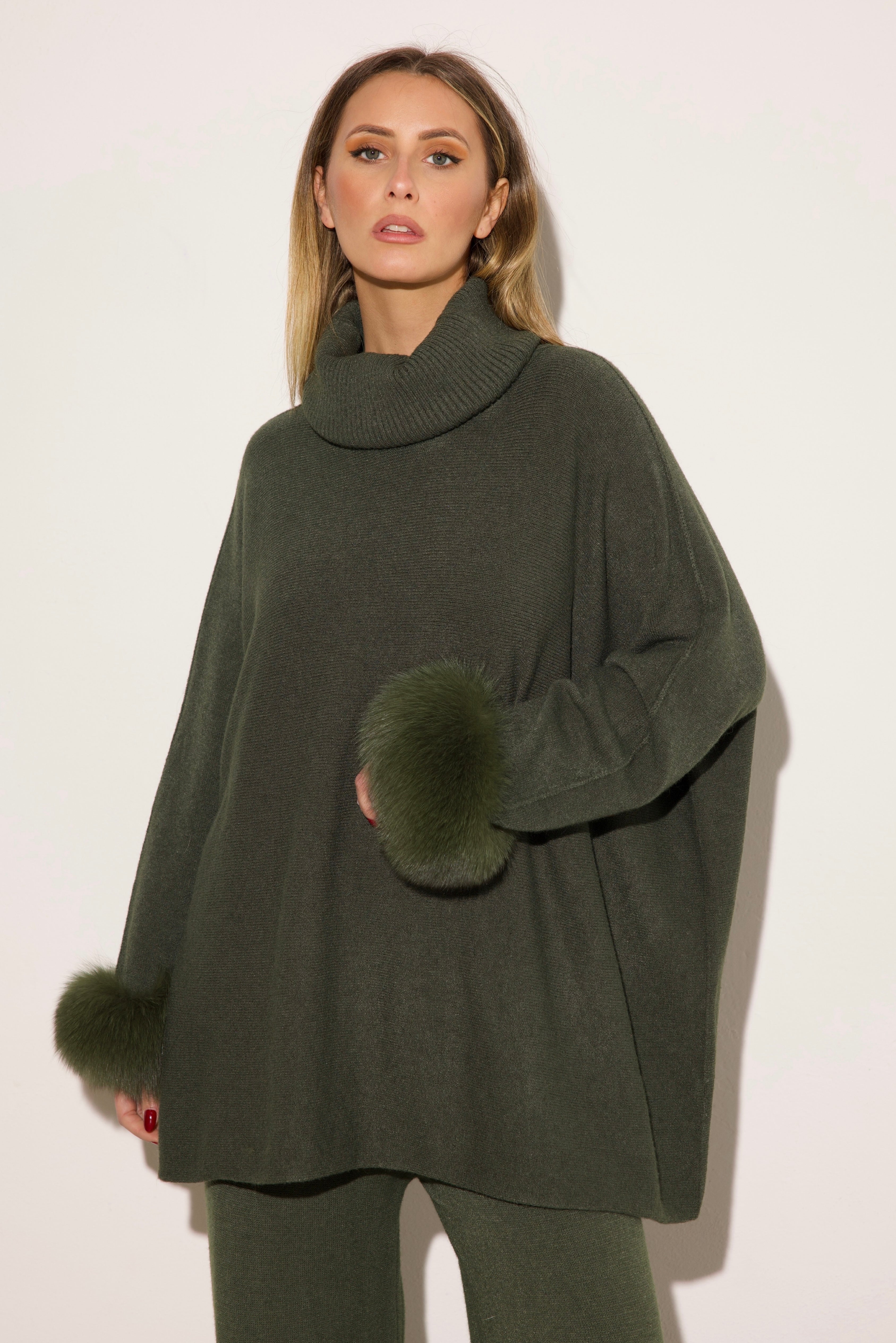 VENEZIA - Completo collo alto polsini in volpe (Verde)