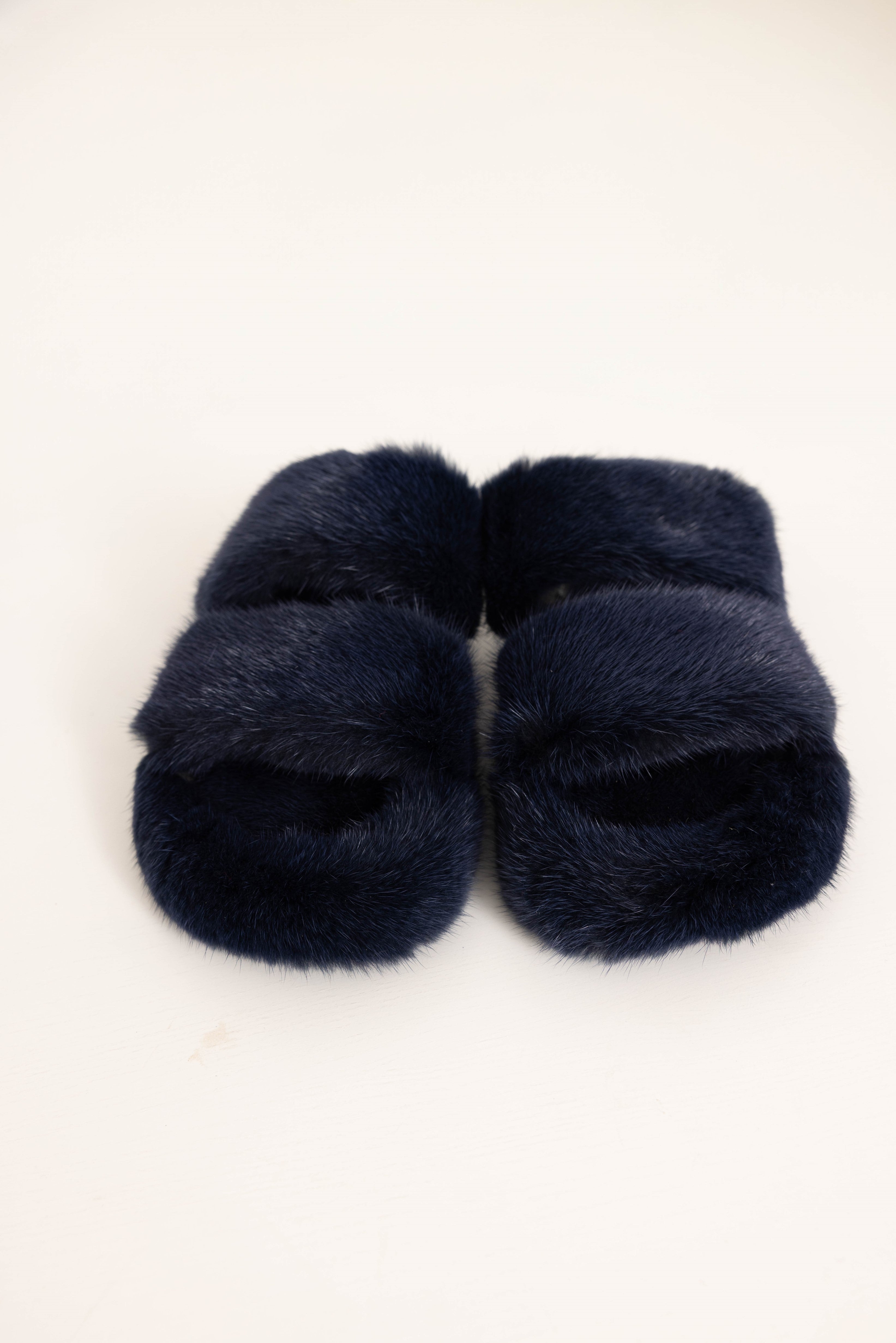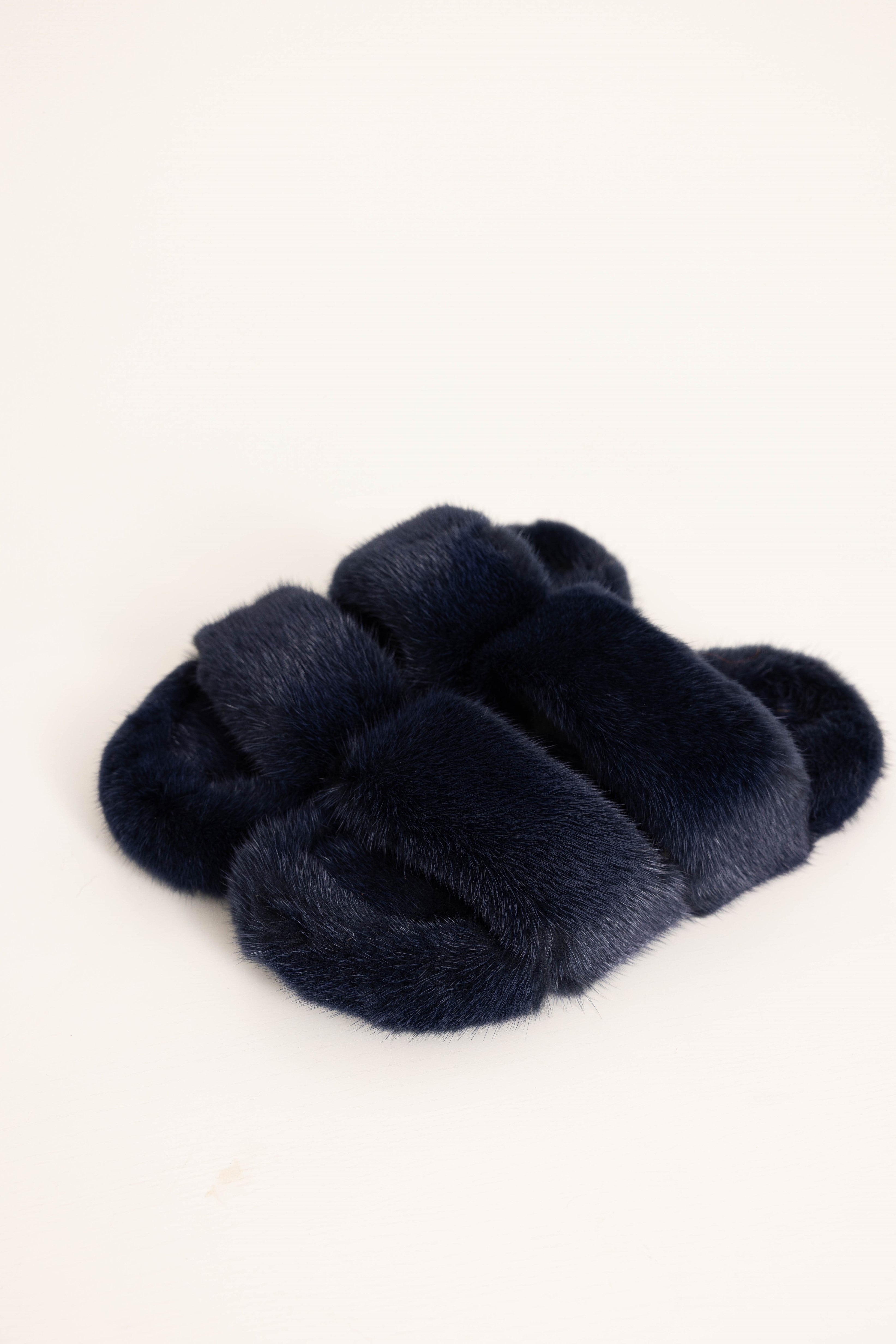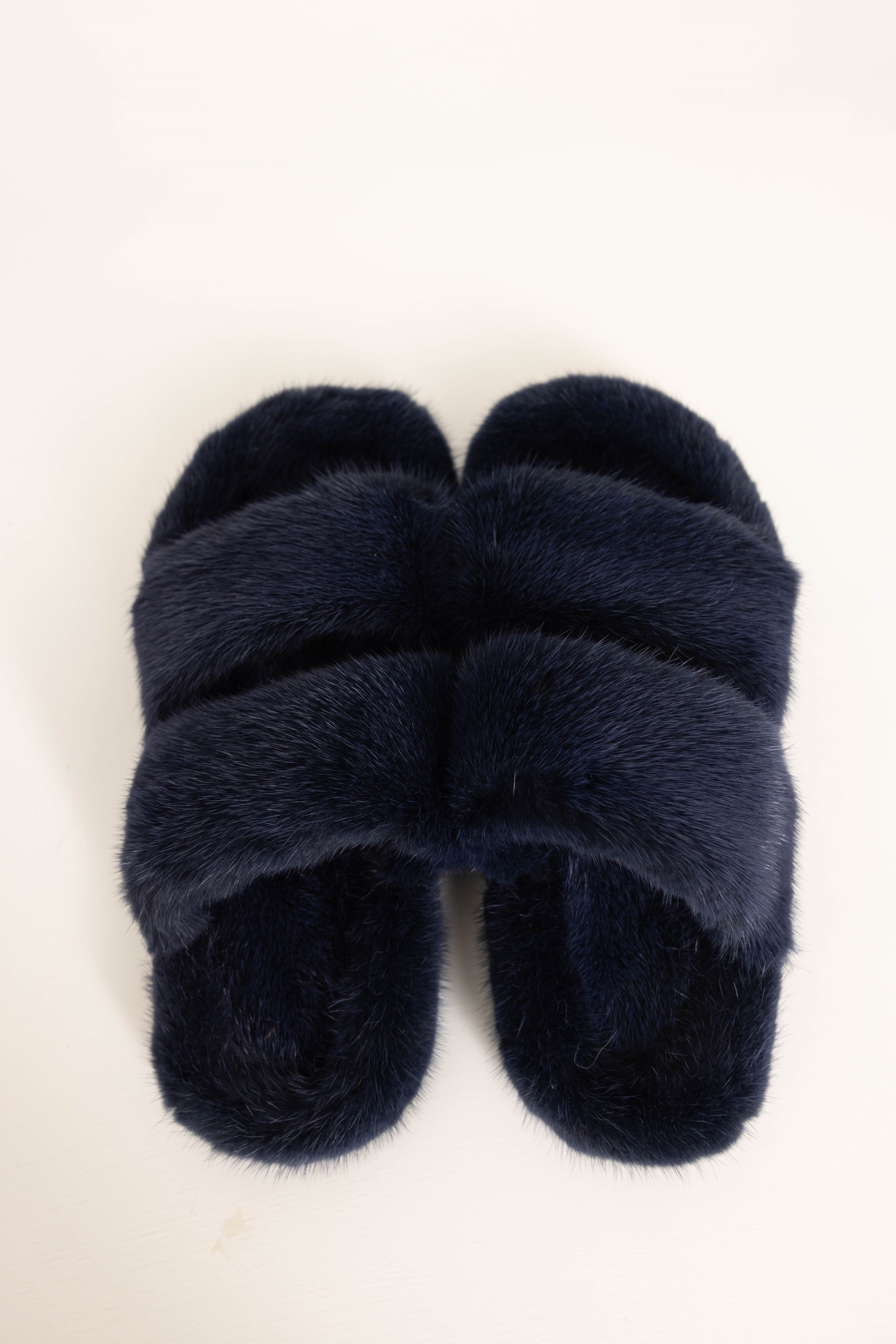 CORTINA - Slipper doppia fascia in visone (Blu Notte)
