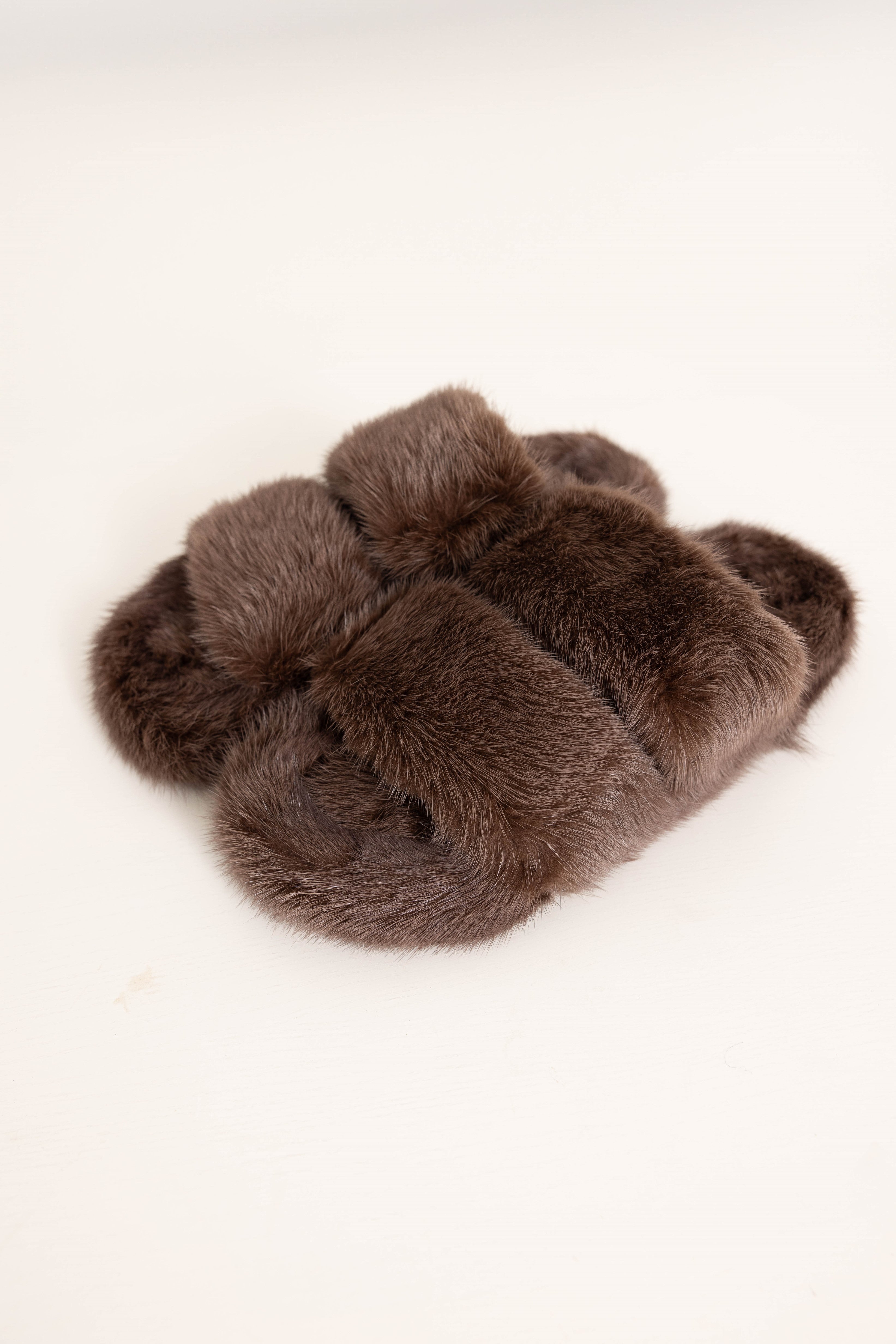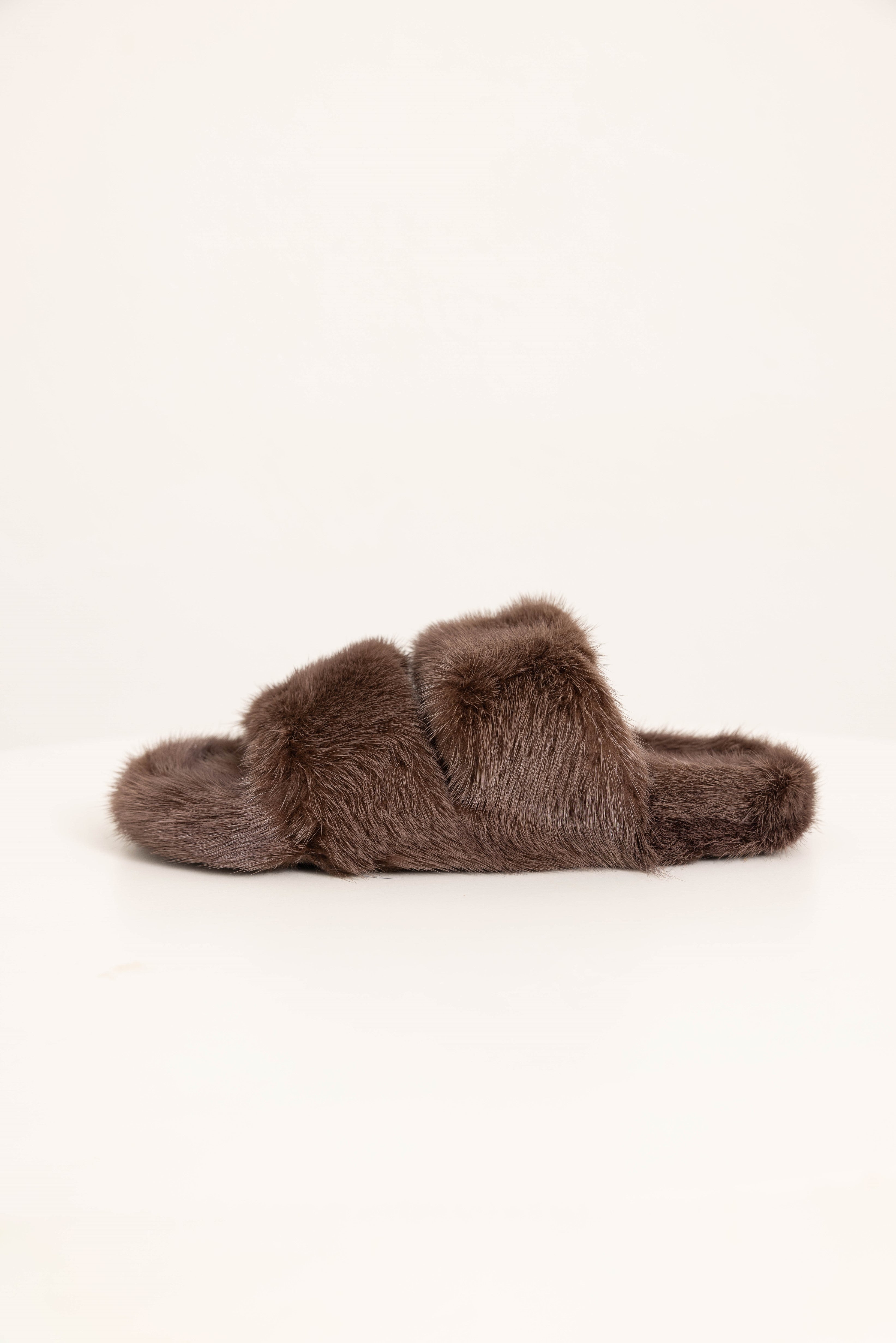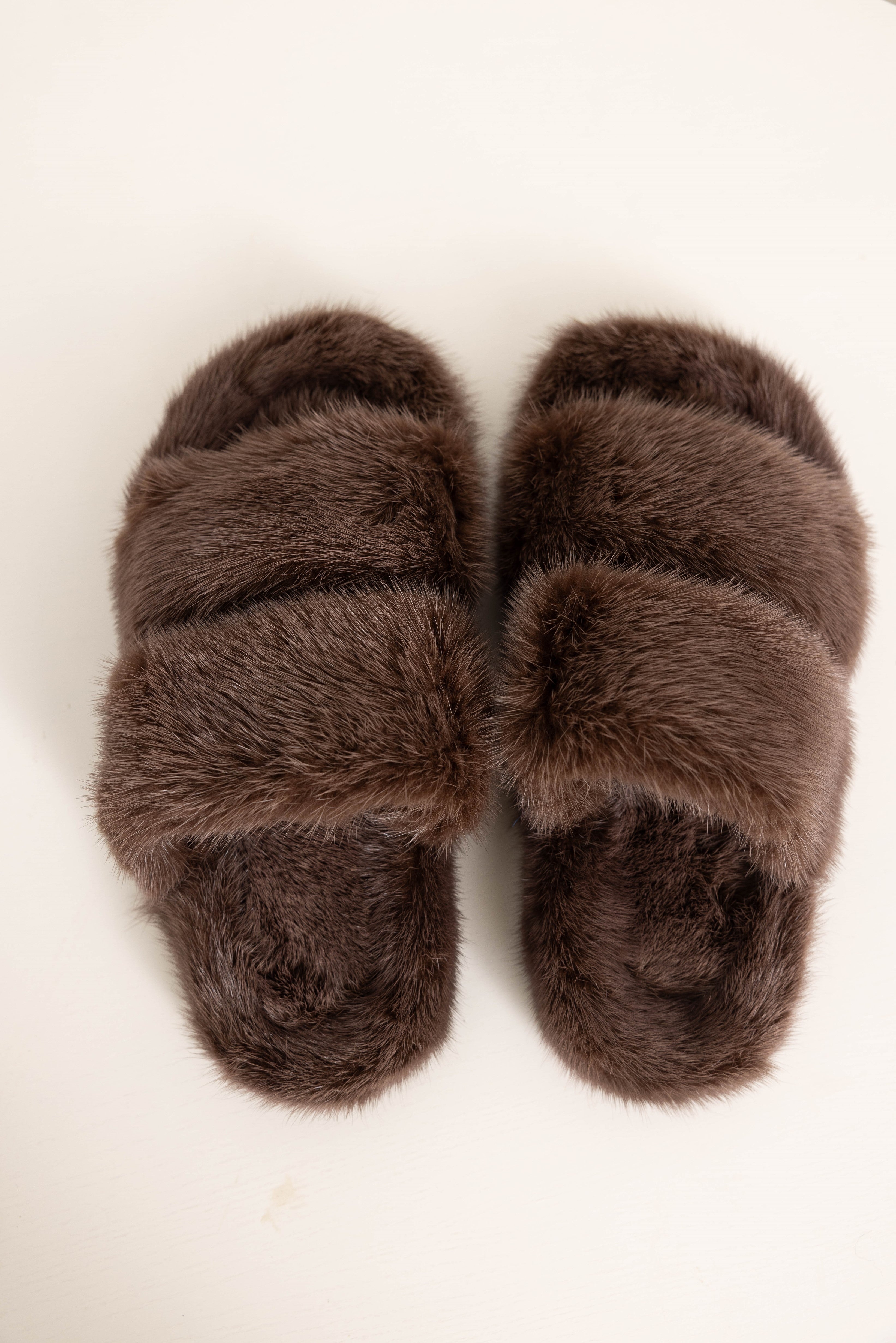 CORTINA - Slipper doppia fascia in visone (Marrone Cioccolato)