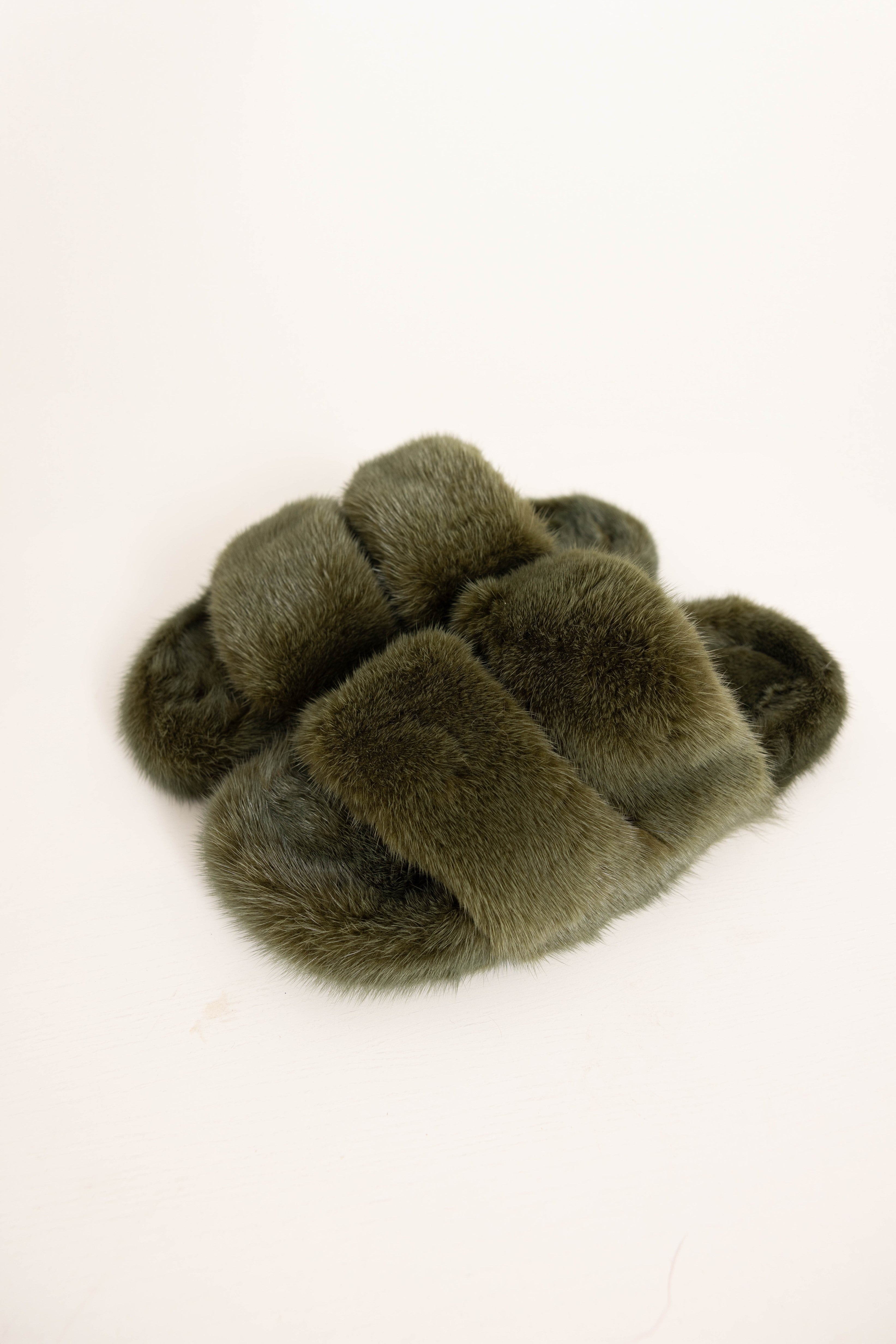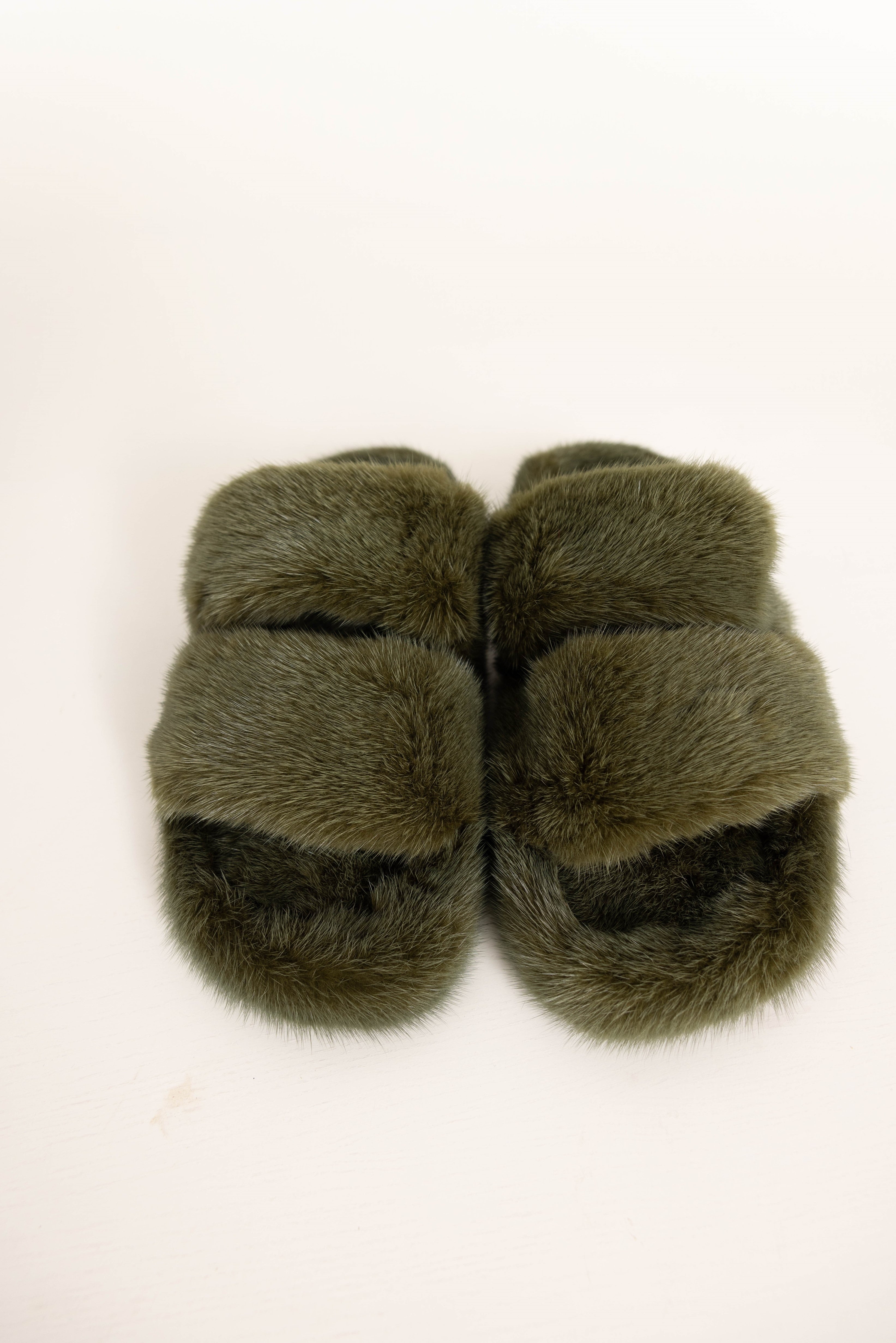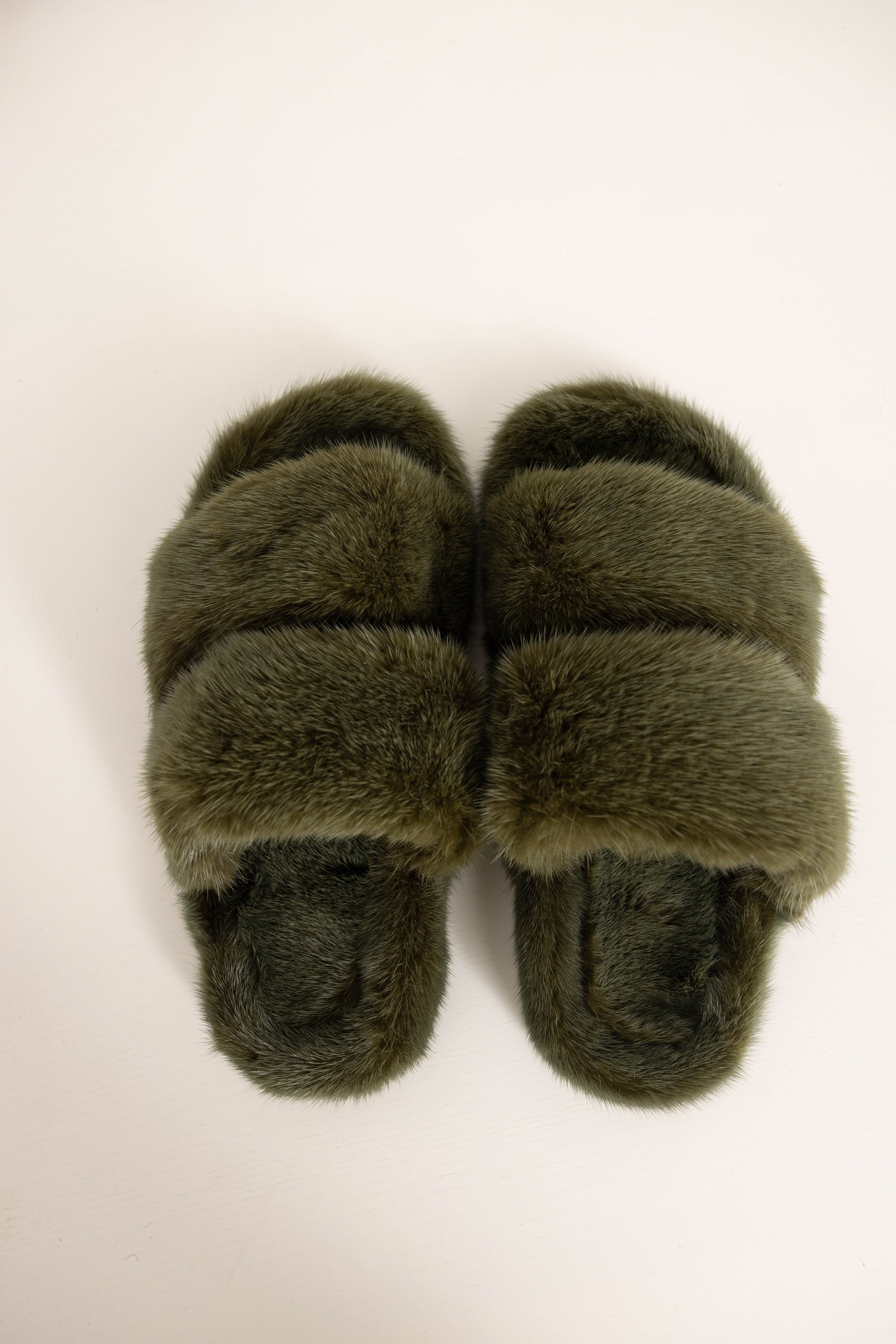 CORTINA - Slipper doppia fascia in visone (Verde Mimetico)