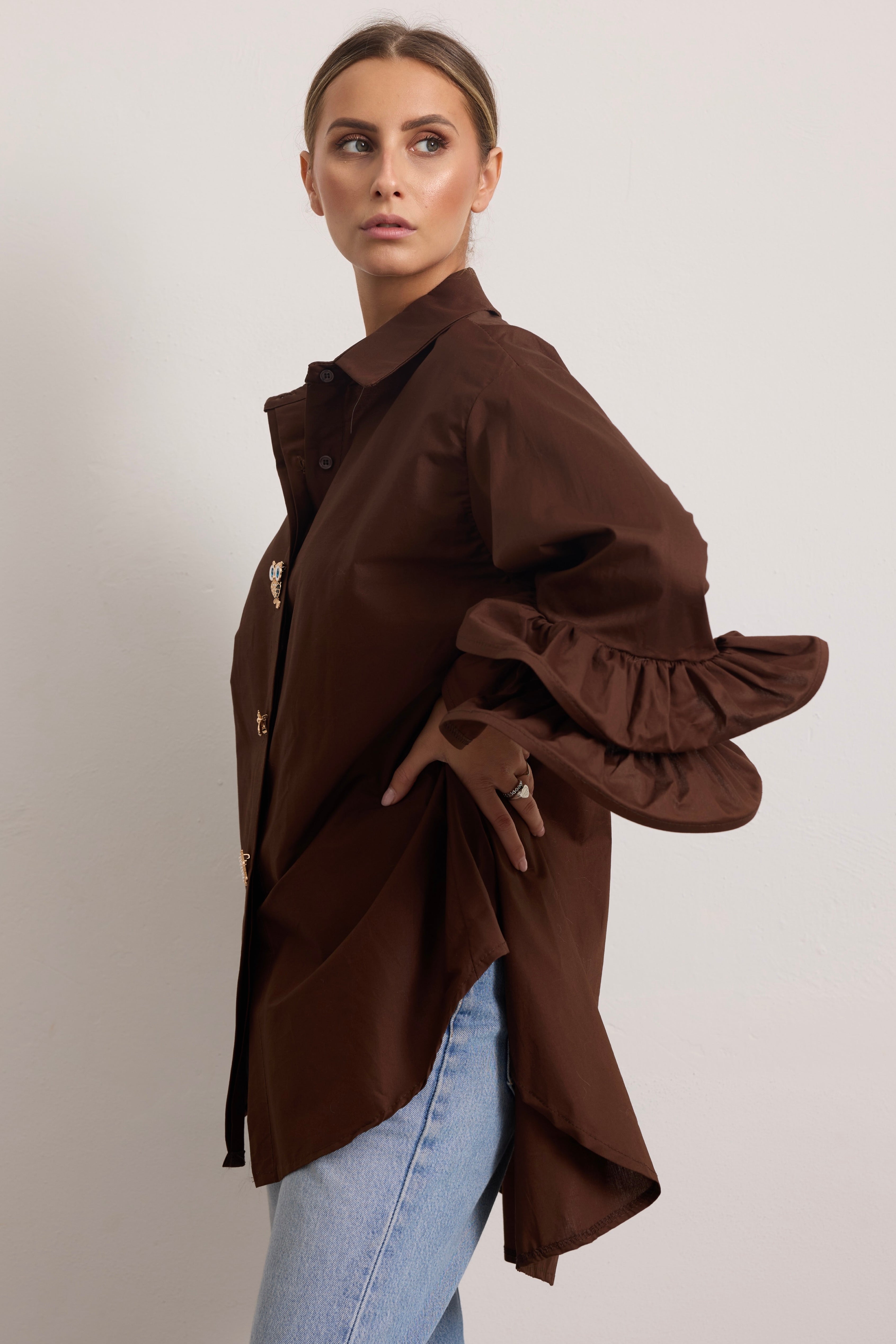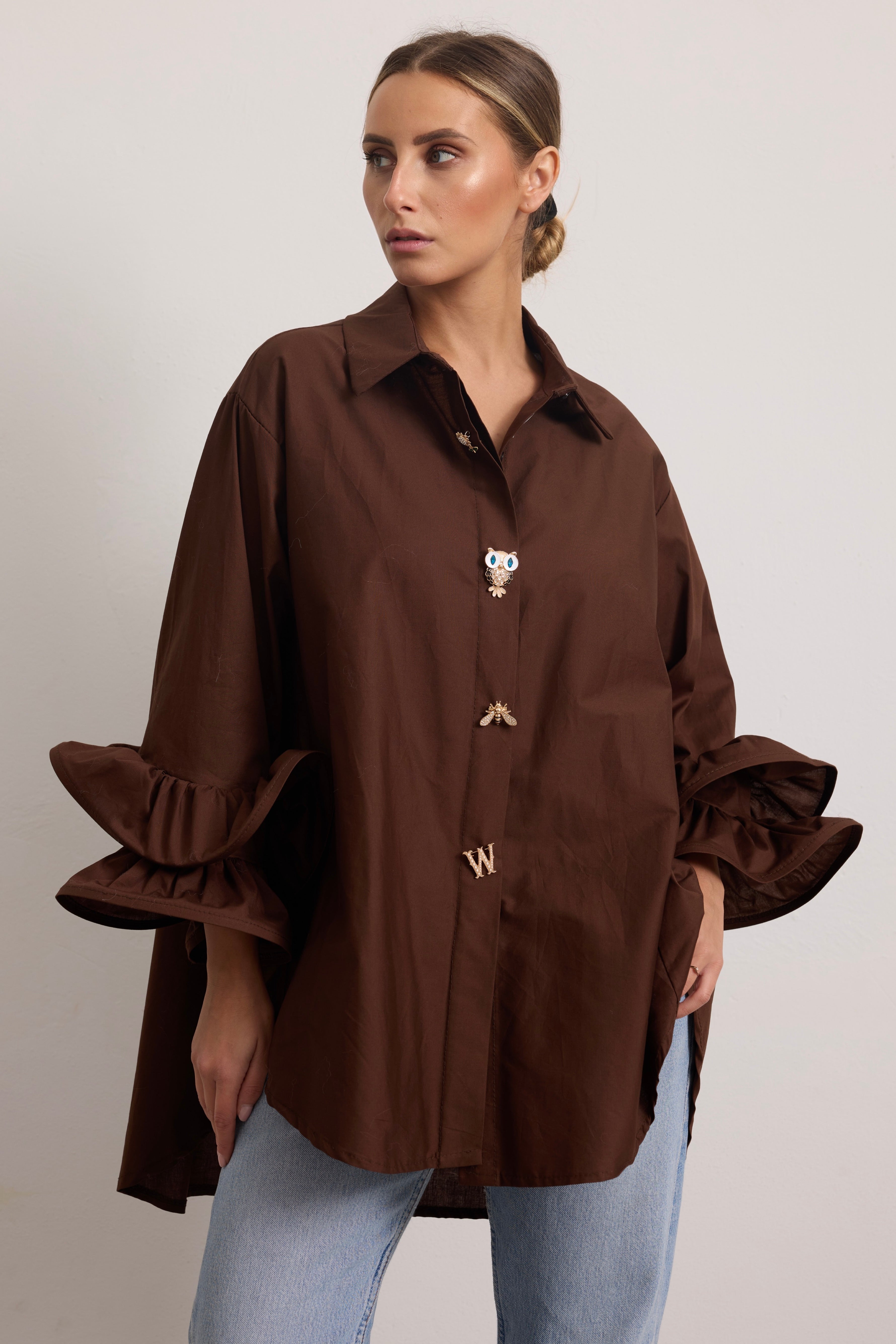 FLAMENCO - Camicia con rouches (Marrone Bottoni Gioiello)