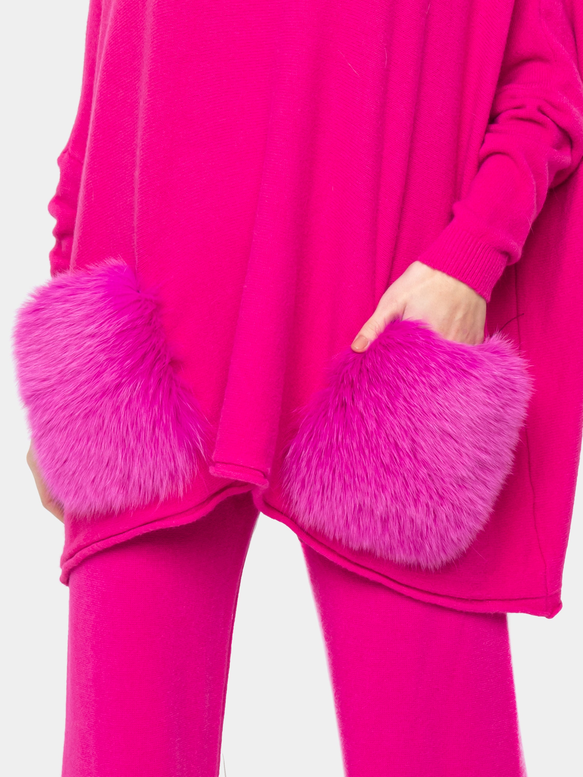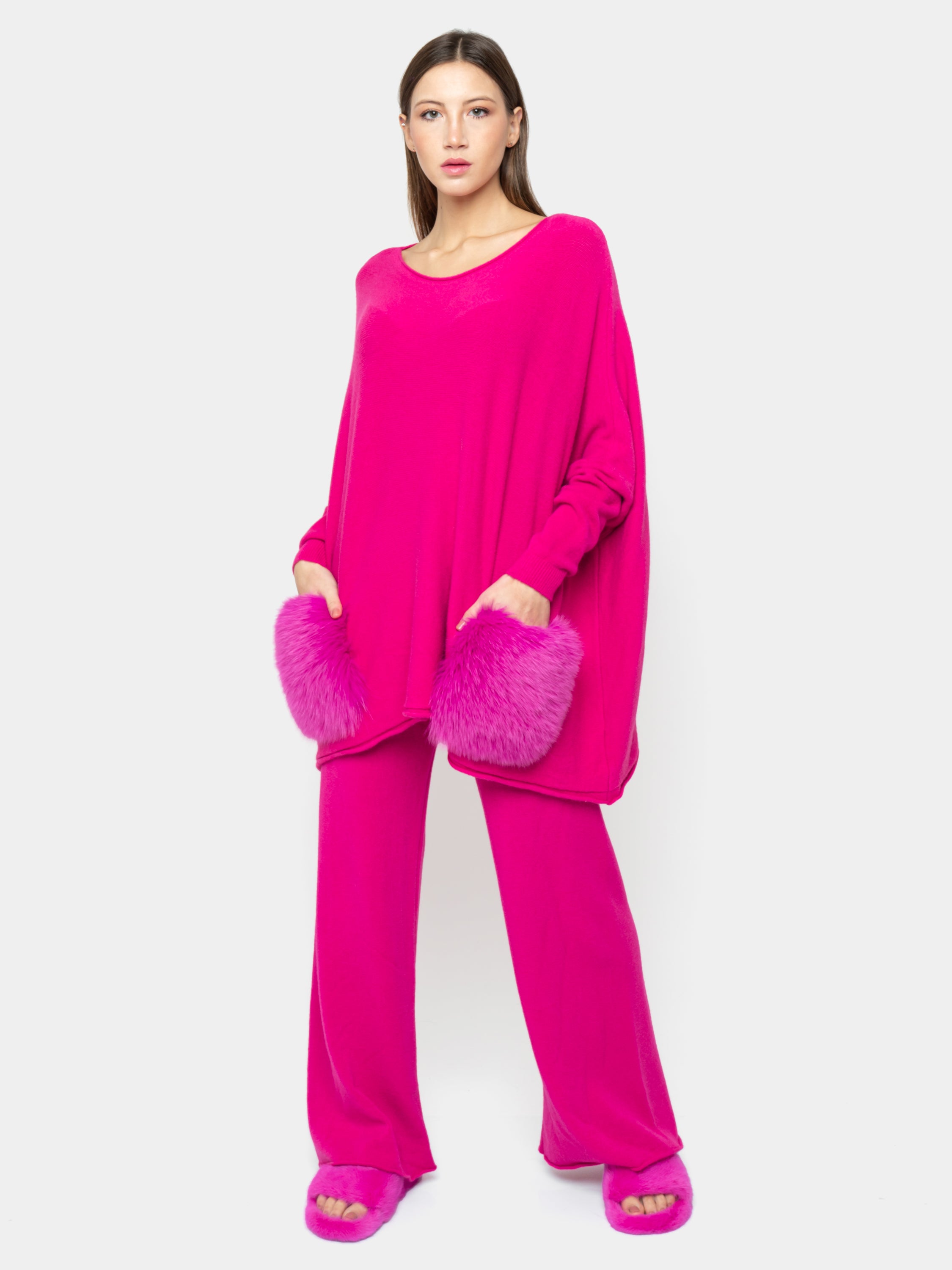 CAPRI - Completo con tasche in volpe (Fucsia)