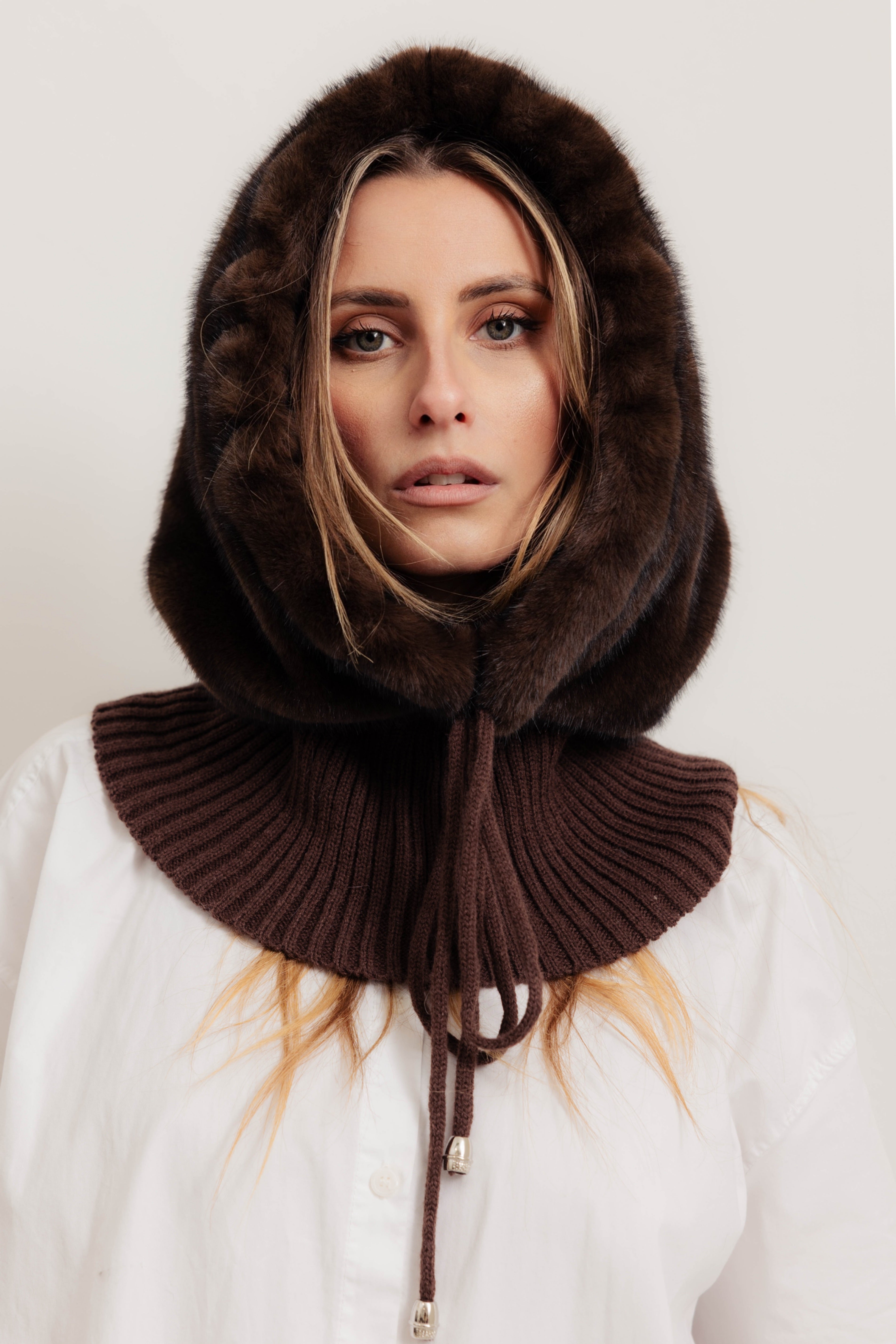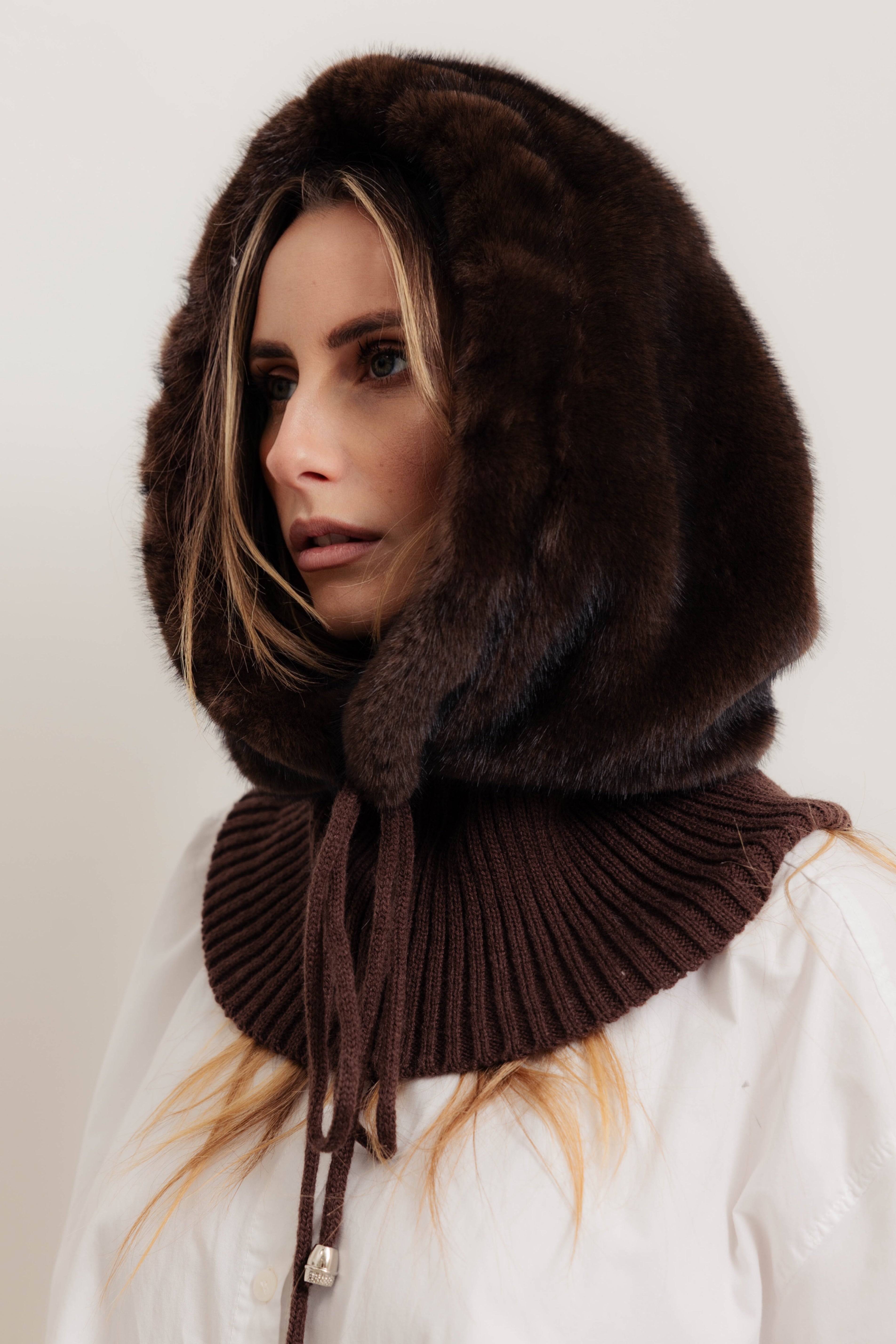 DOVER - Balaclava bordatura ecopelliccia (Marrone Cioccolato)