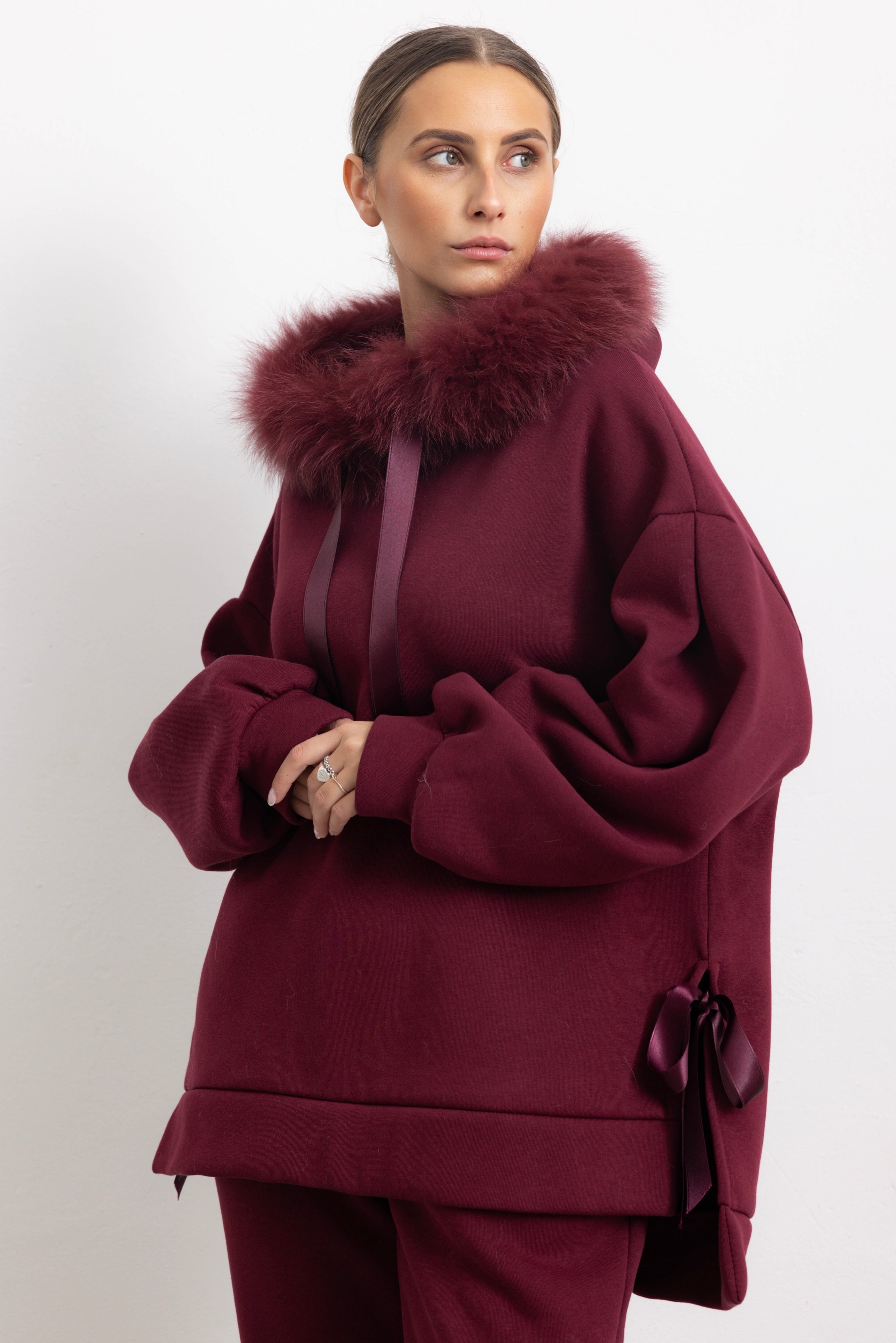 PORTO CERVO - Tuta con bordatura su cappuccio in volpe (Bordeaux)