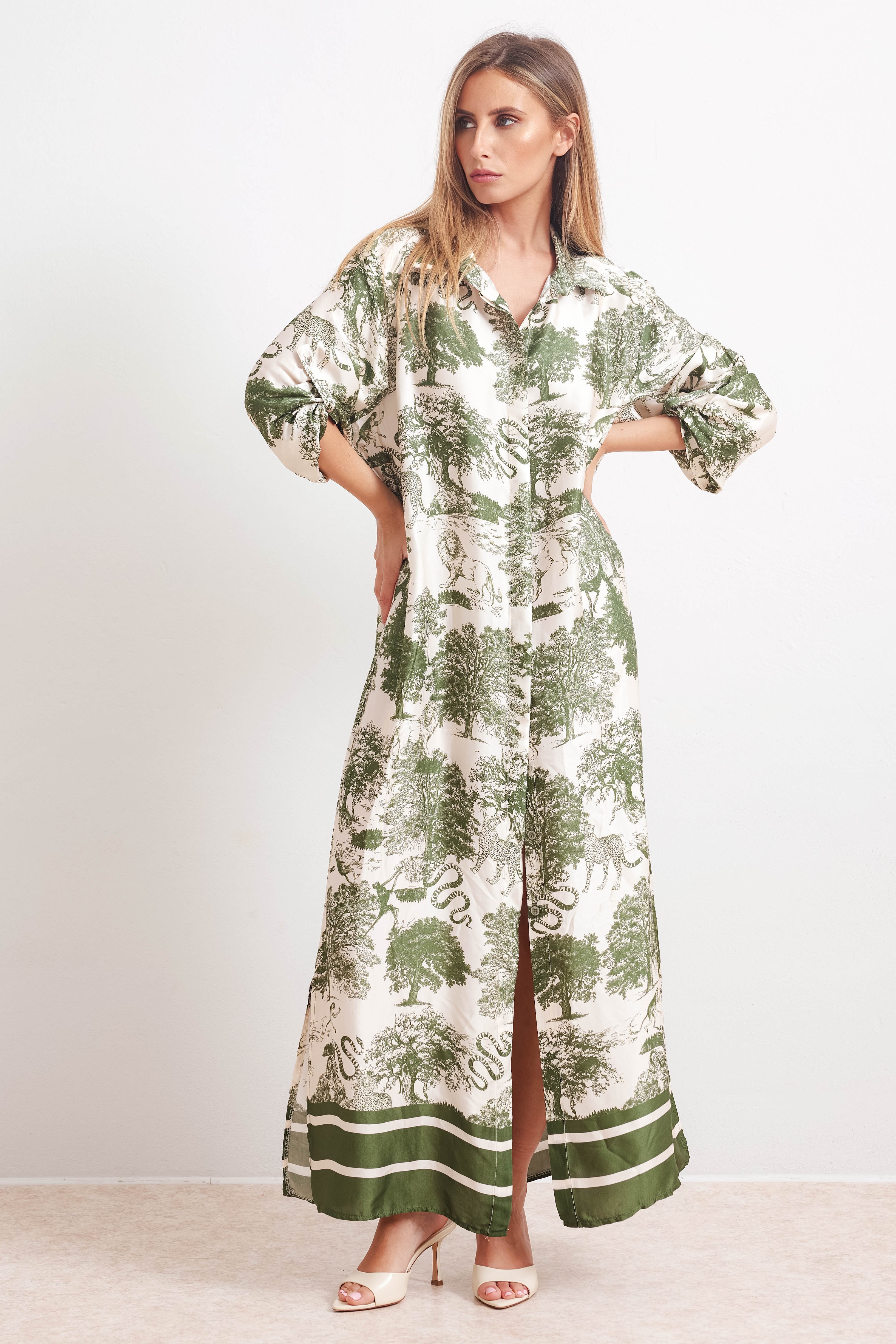 PANAMA - Vestito Camicia Fantasia (Verde)