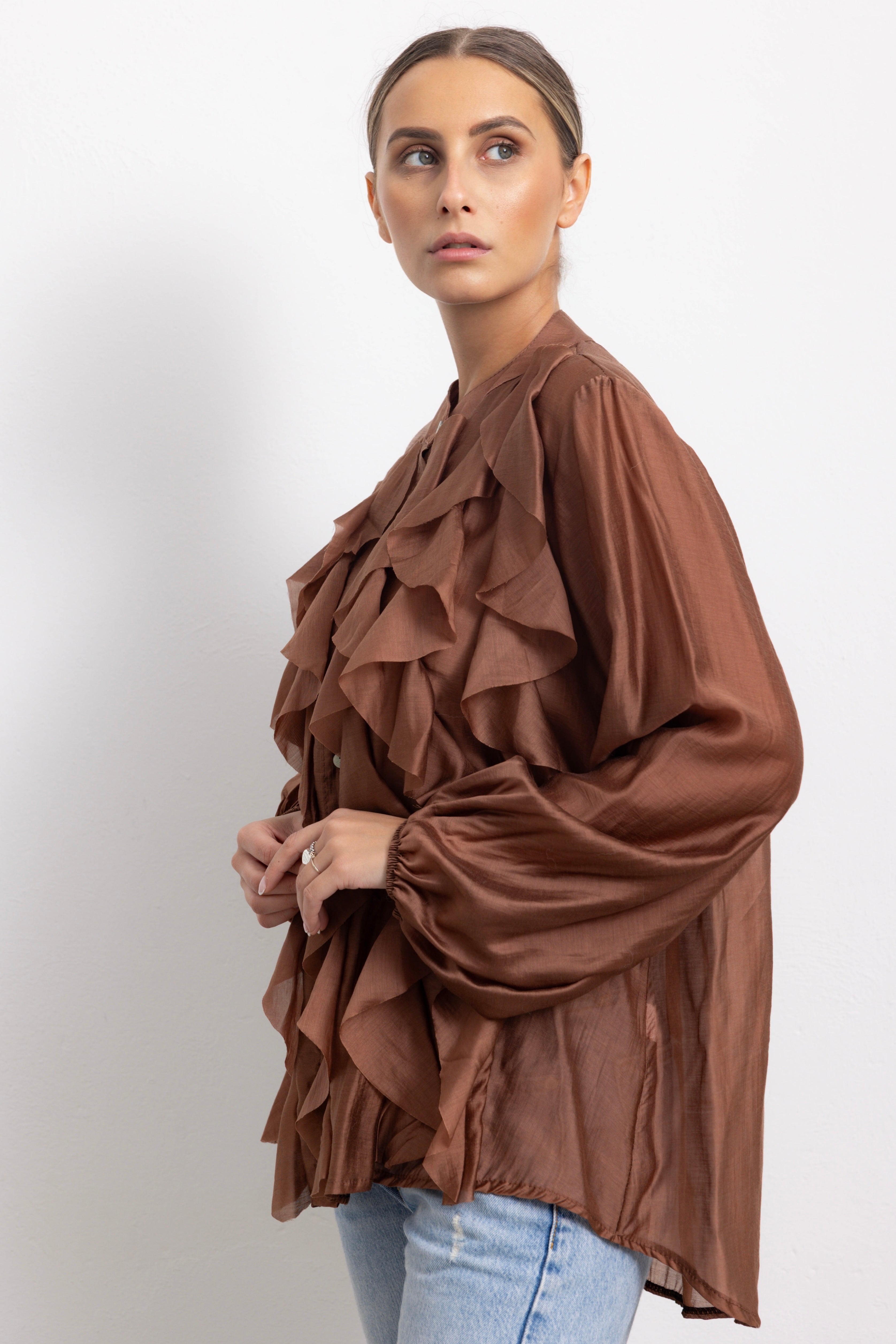 TANGO - Camicia con rouches frontali (Marrone)