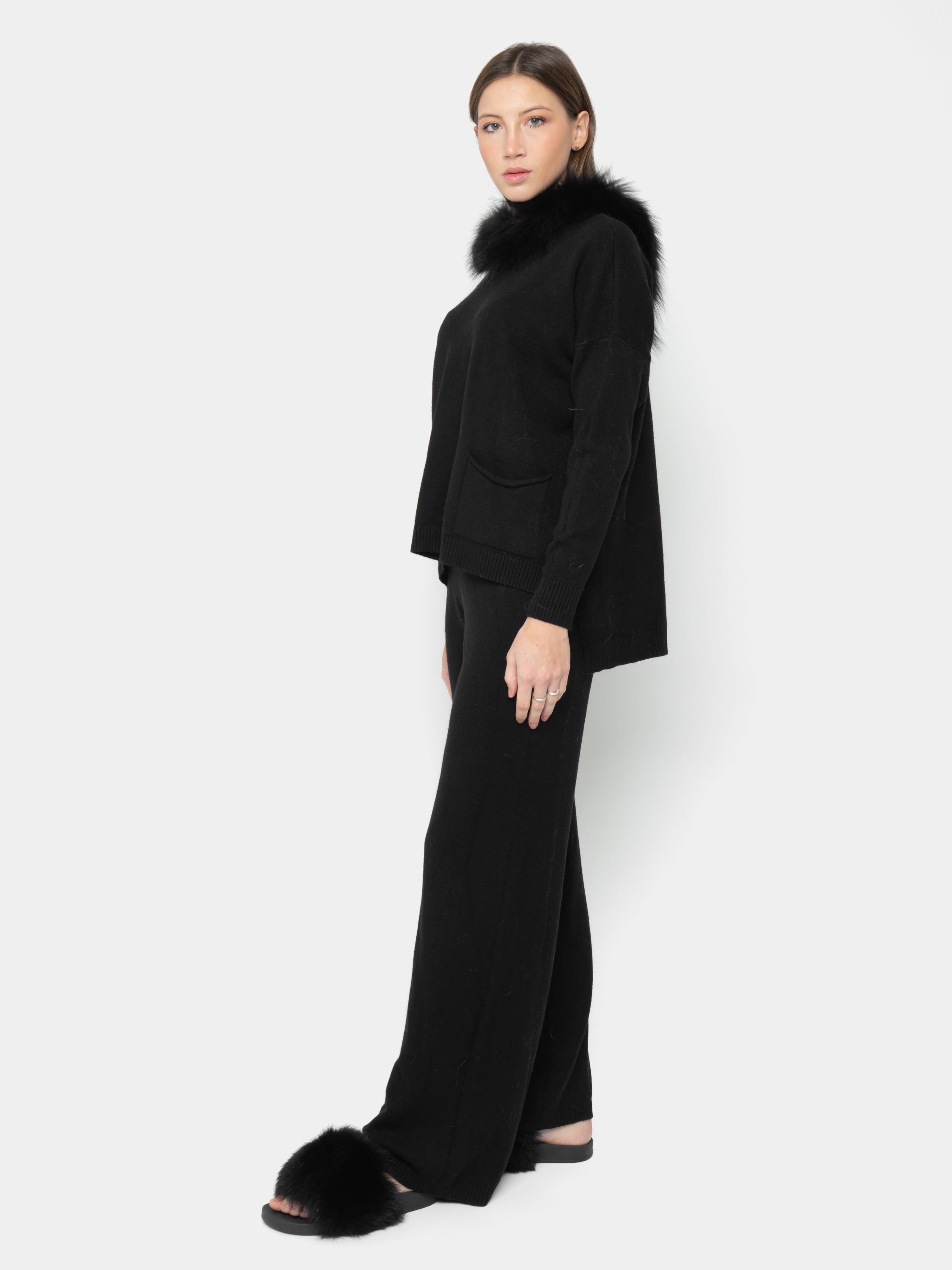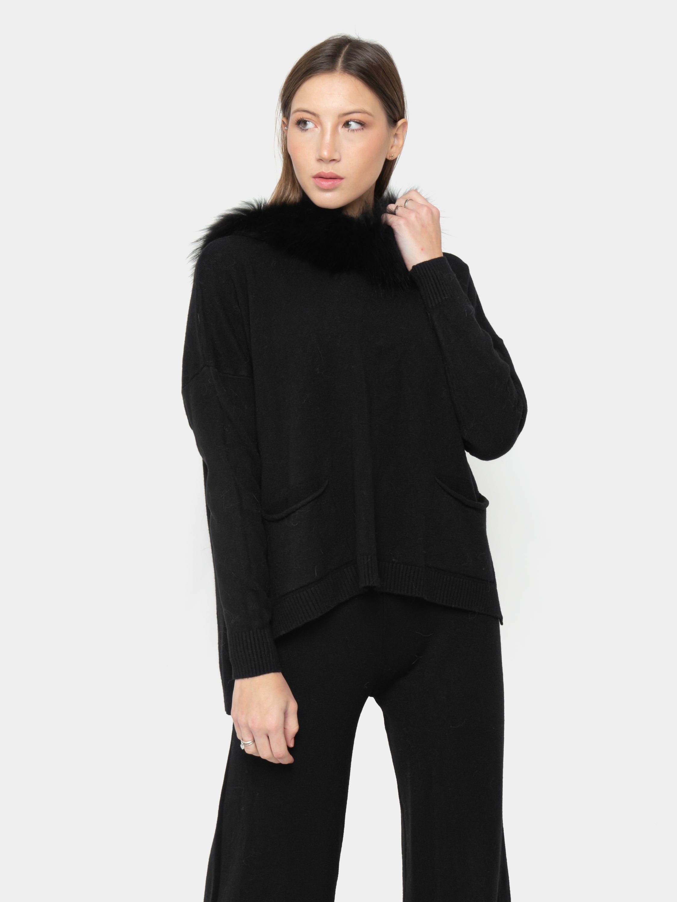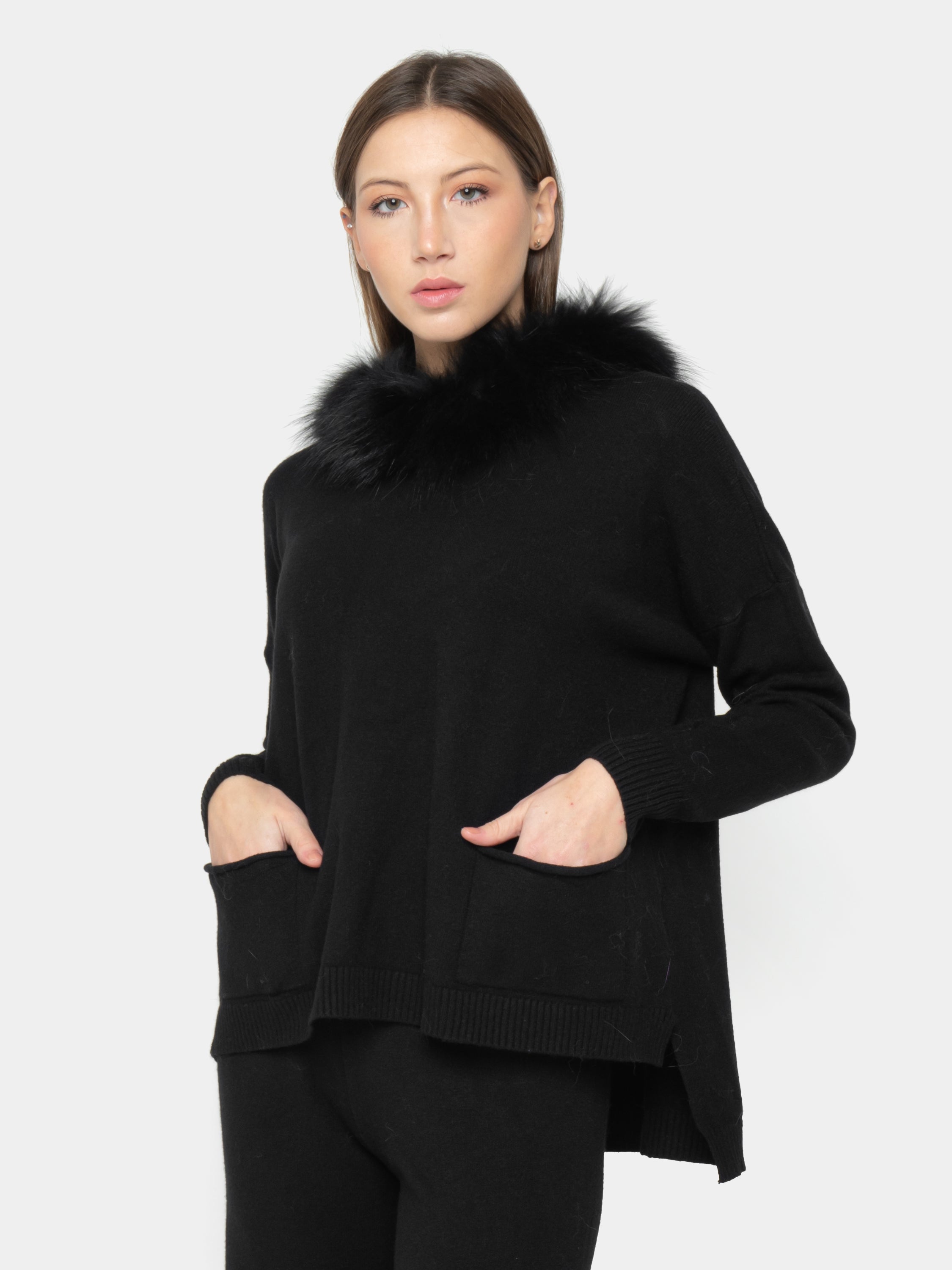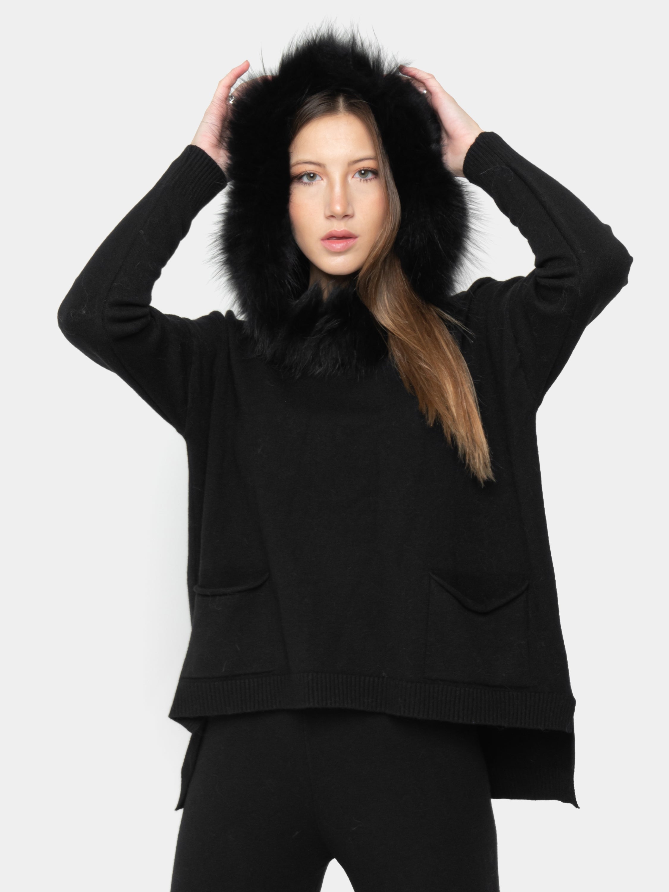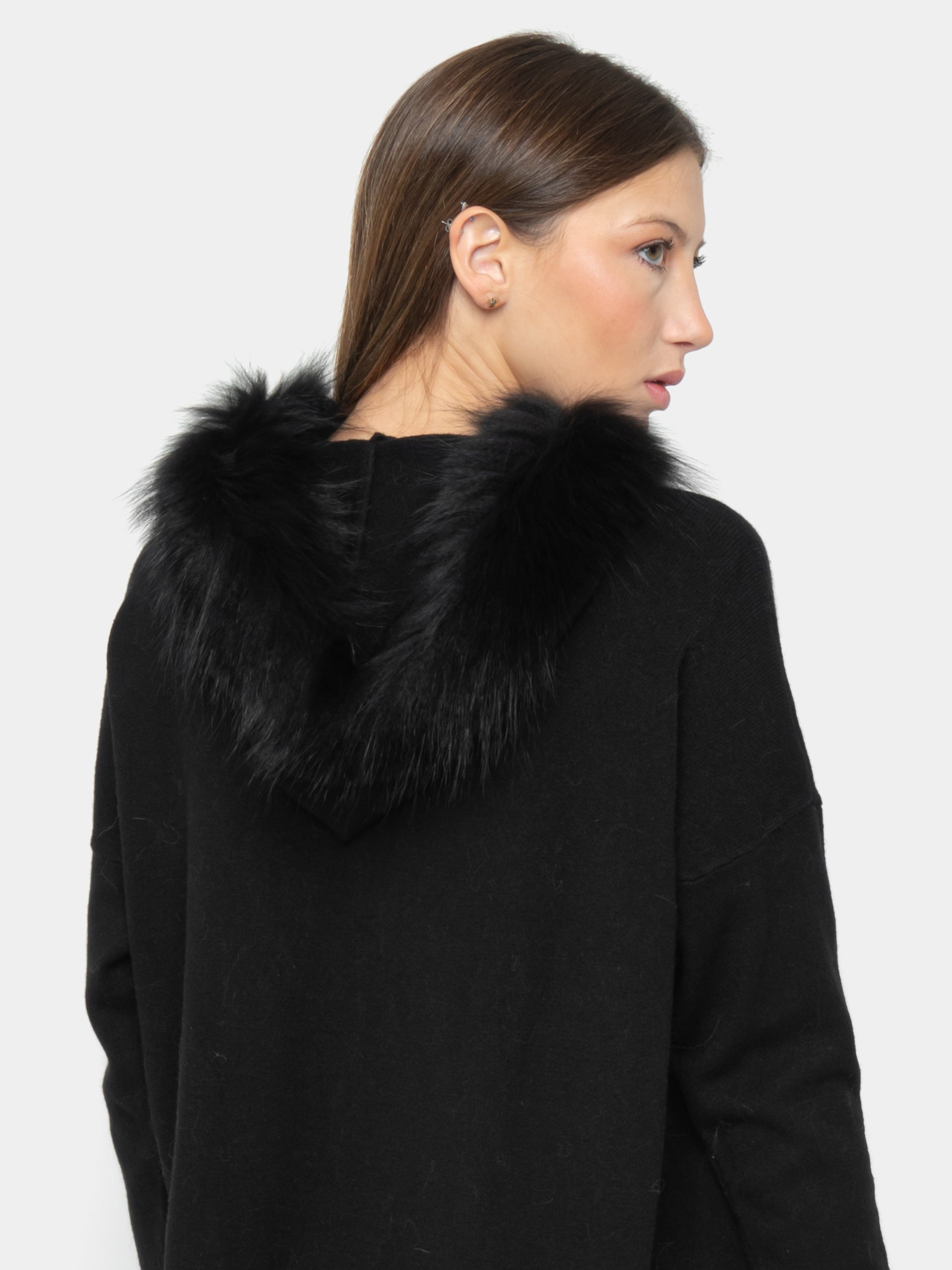 Ischia has a regular fit, suitable for s and M sizes, in very soft viscose and the bordering of the fox fur hood.