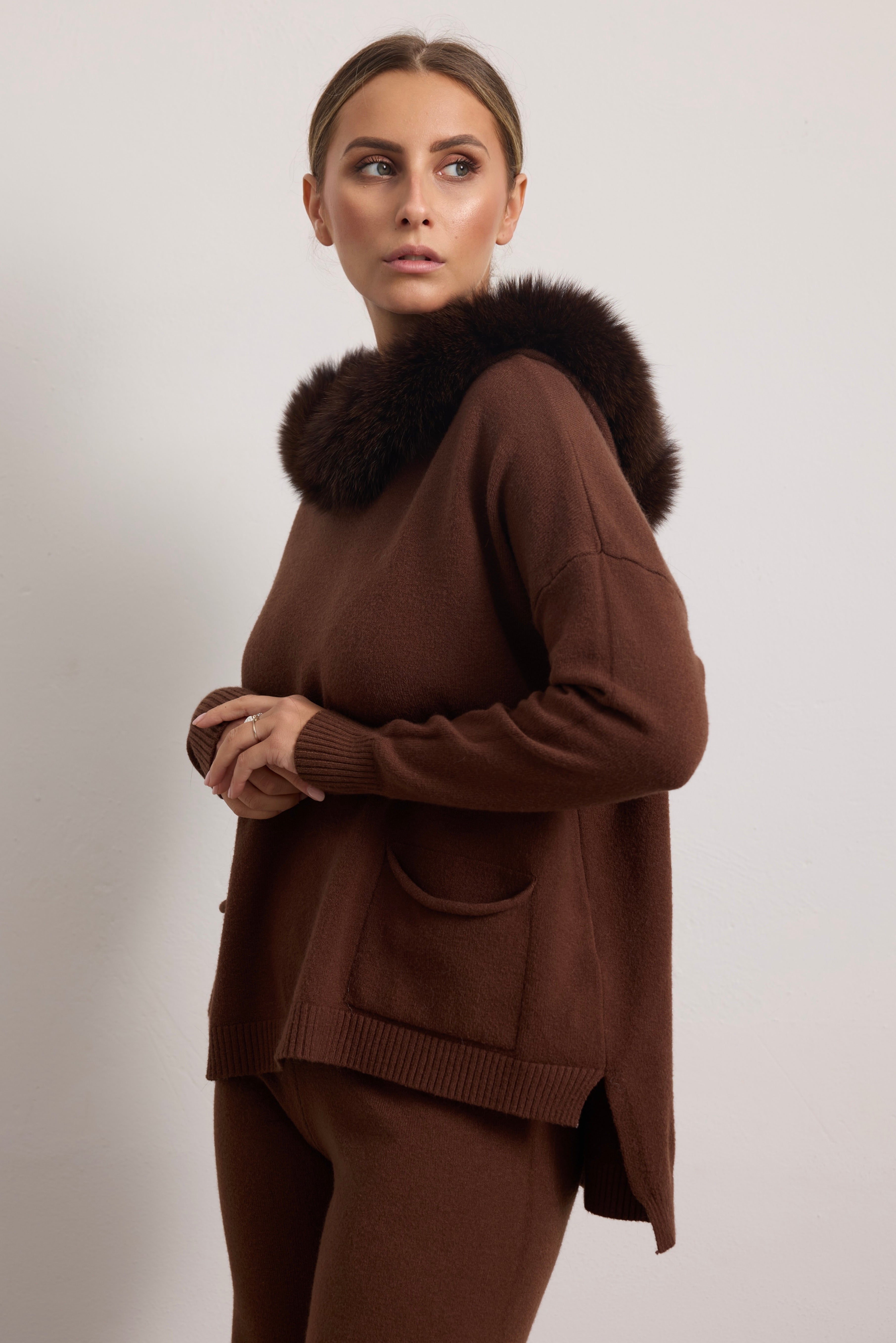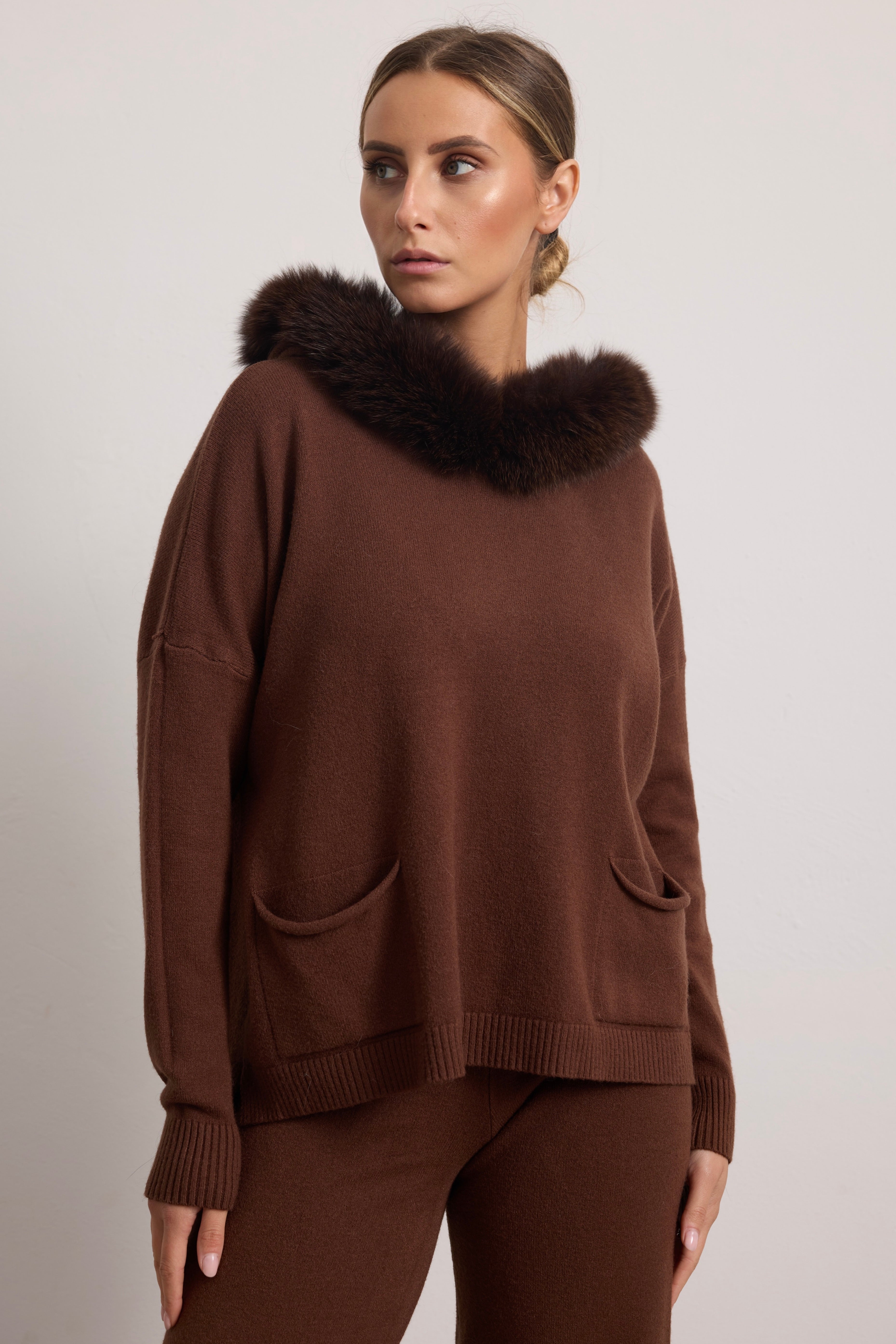 ISCHIA - Completo con bordatura su cappuccio in volpe (Marrone)