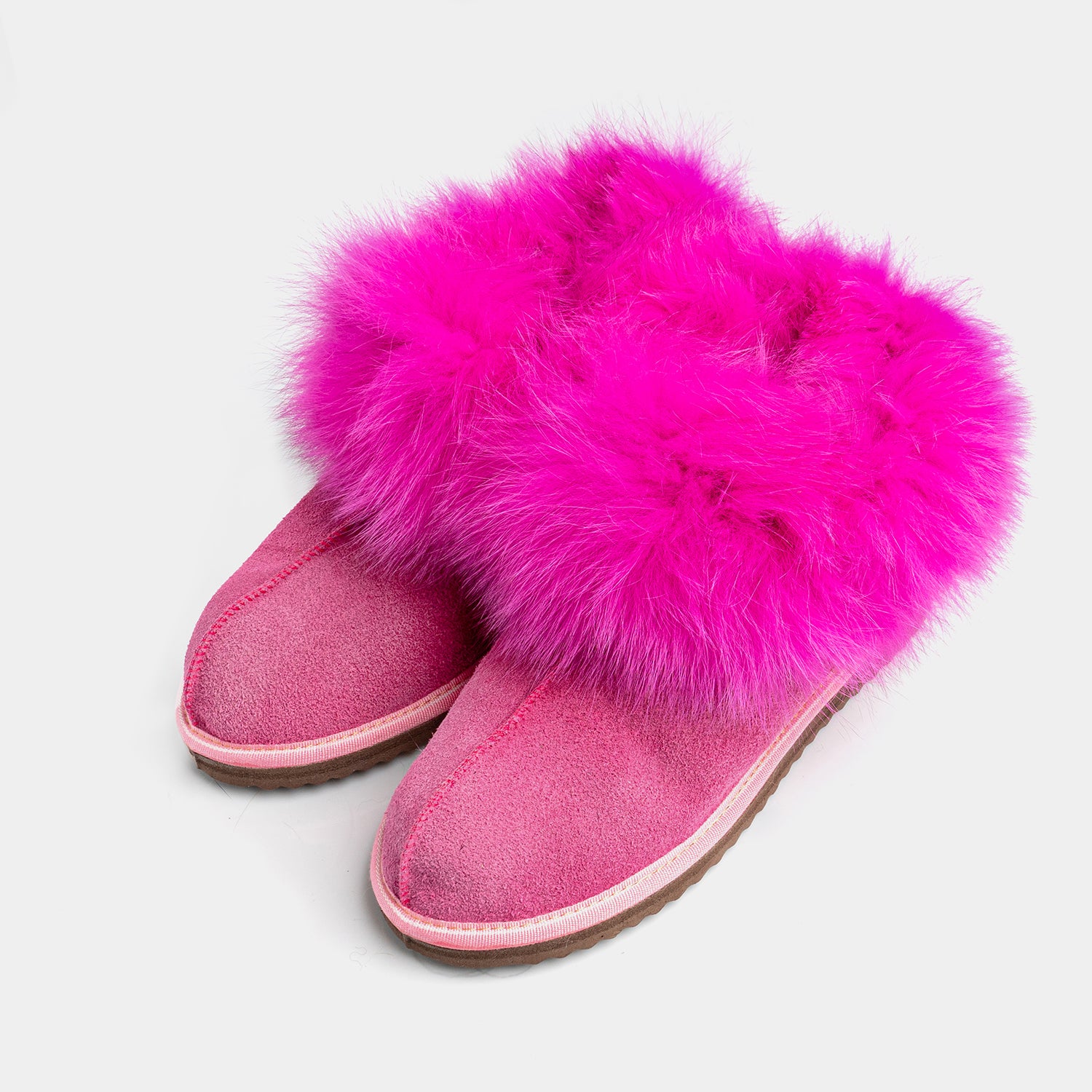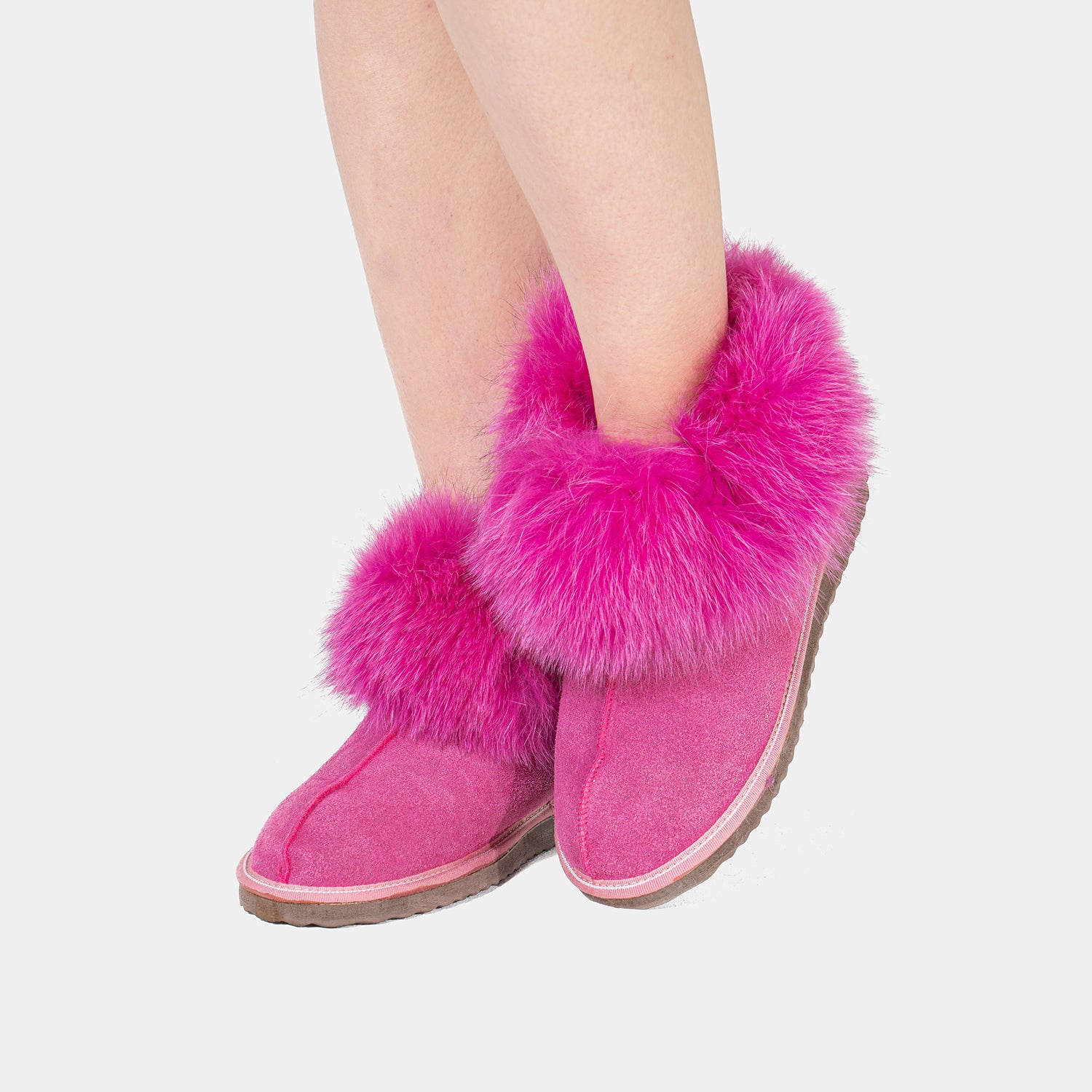Monterosa - Suede ankle boot with fox bordering (fuchsia)
