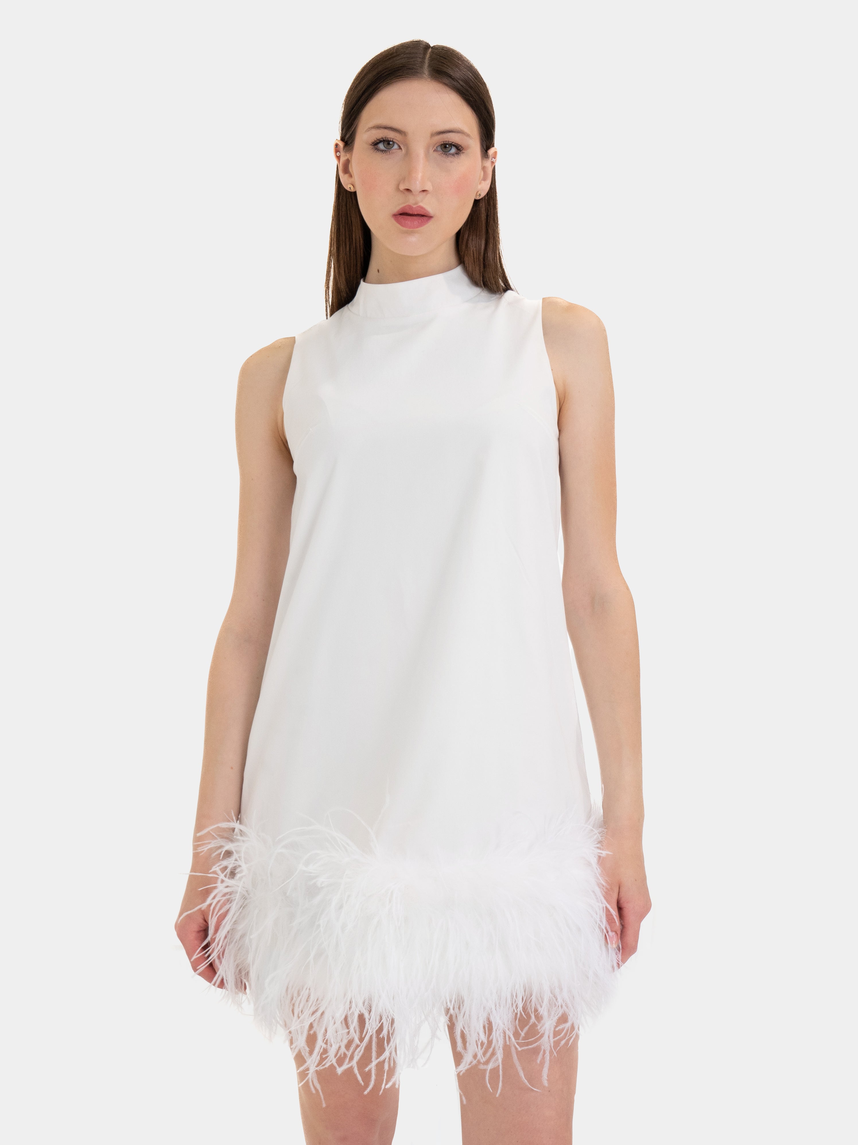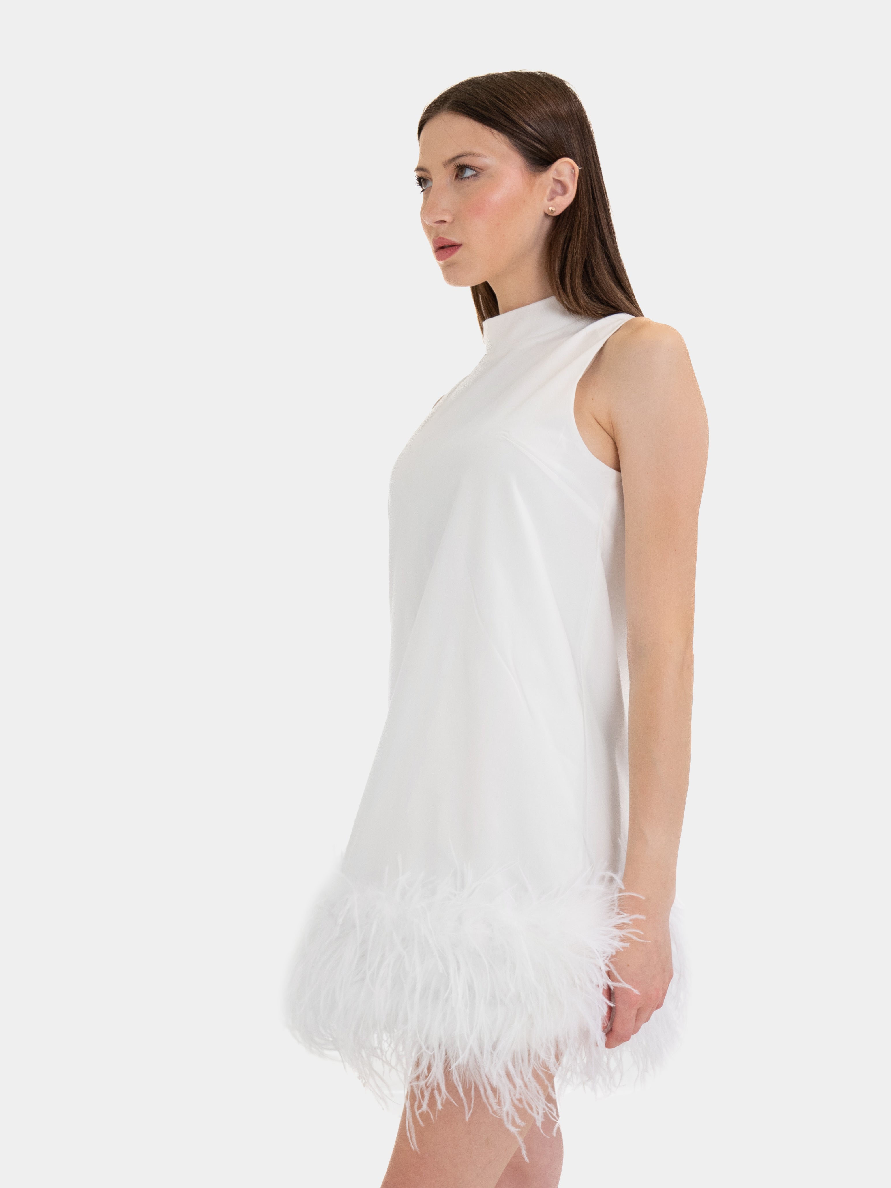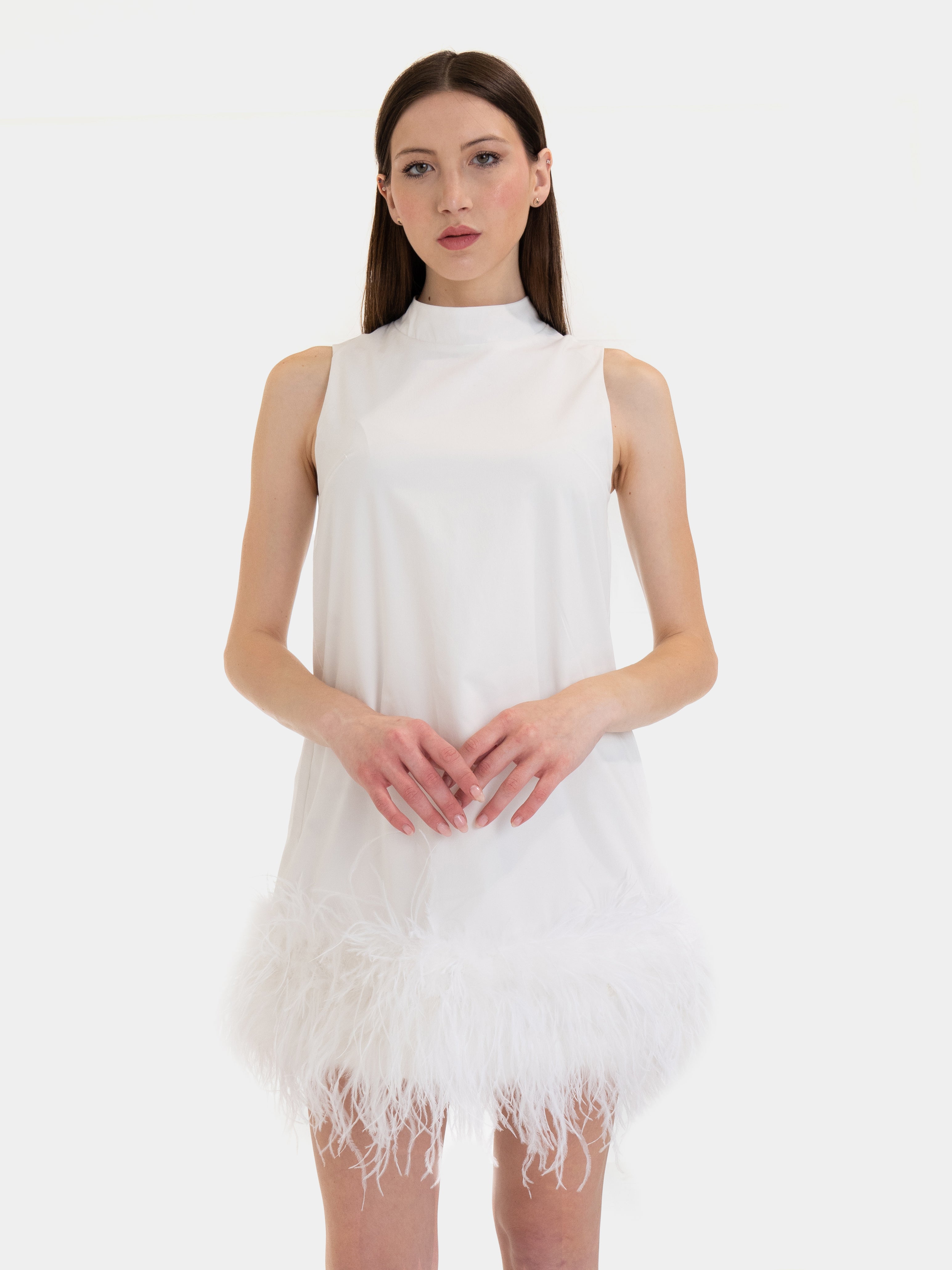 Manhattan - Dress with Bordatura in Marabù (white)
