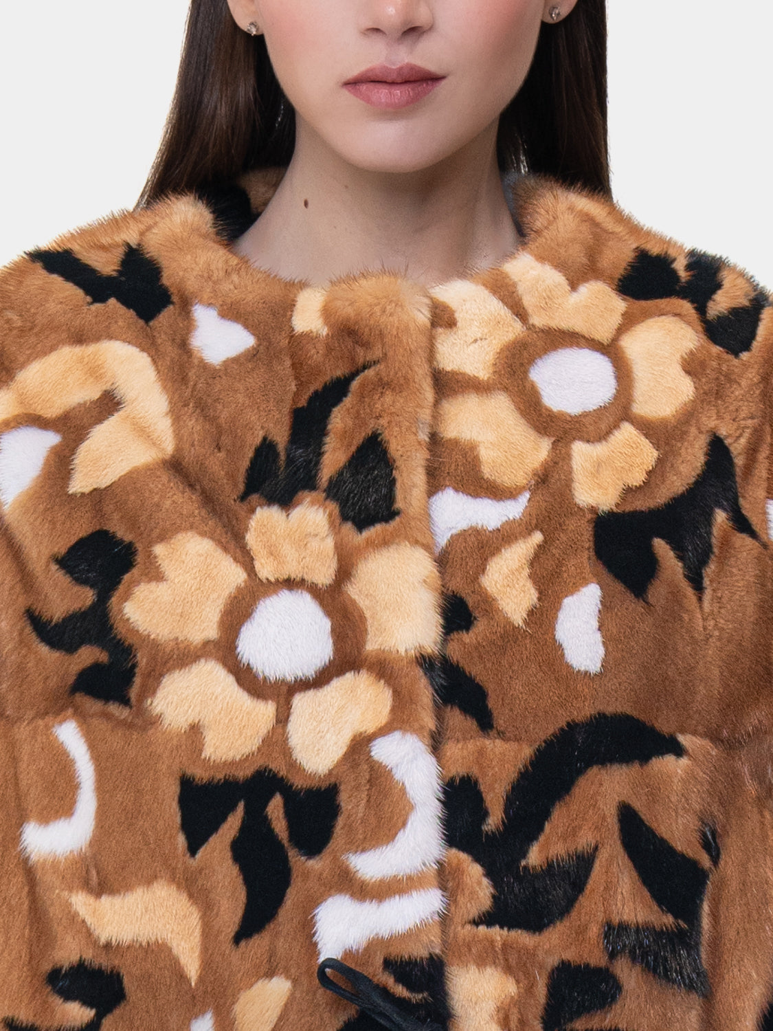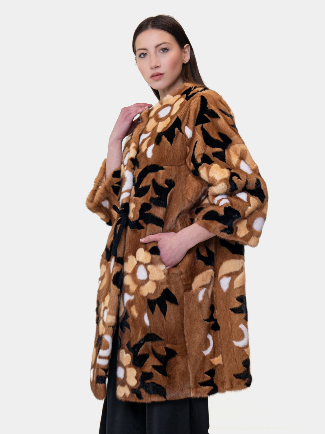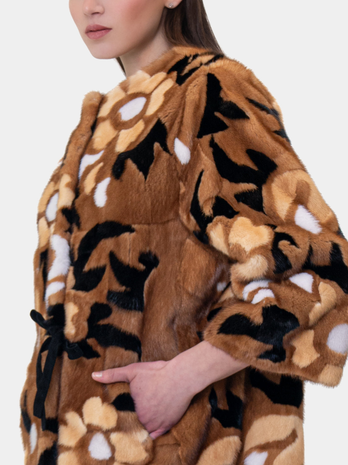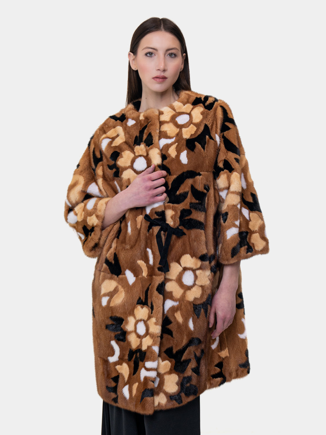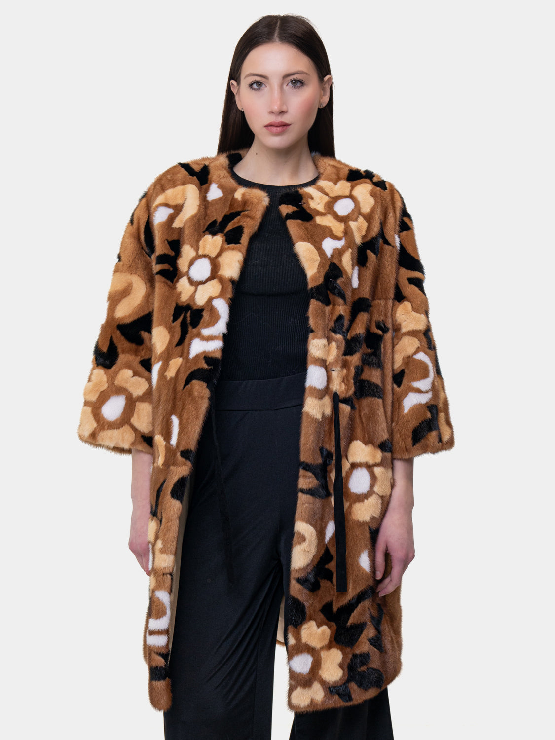 Maryland - Visone coat with inlays - Mod. Kimono (brown/yellow/black/black)
