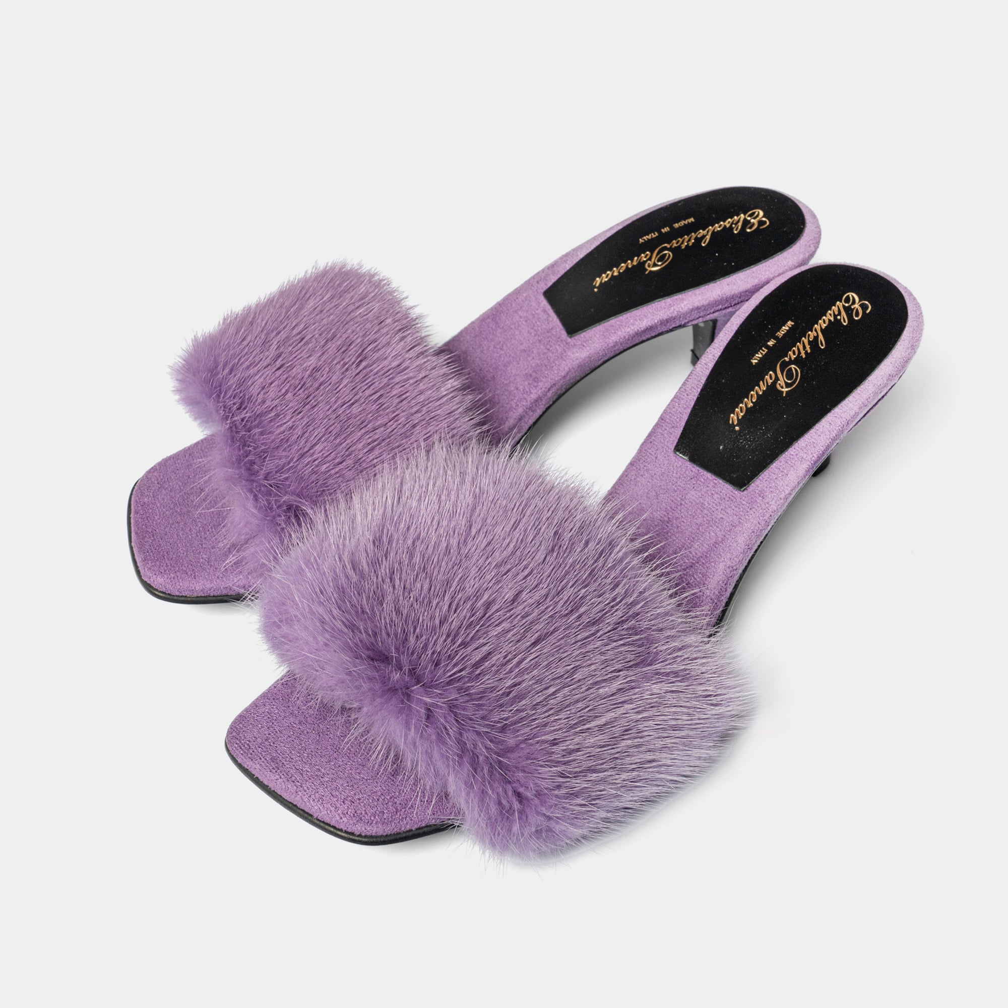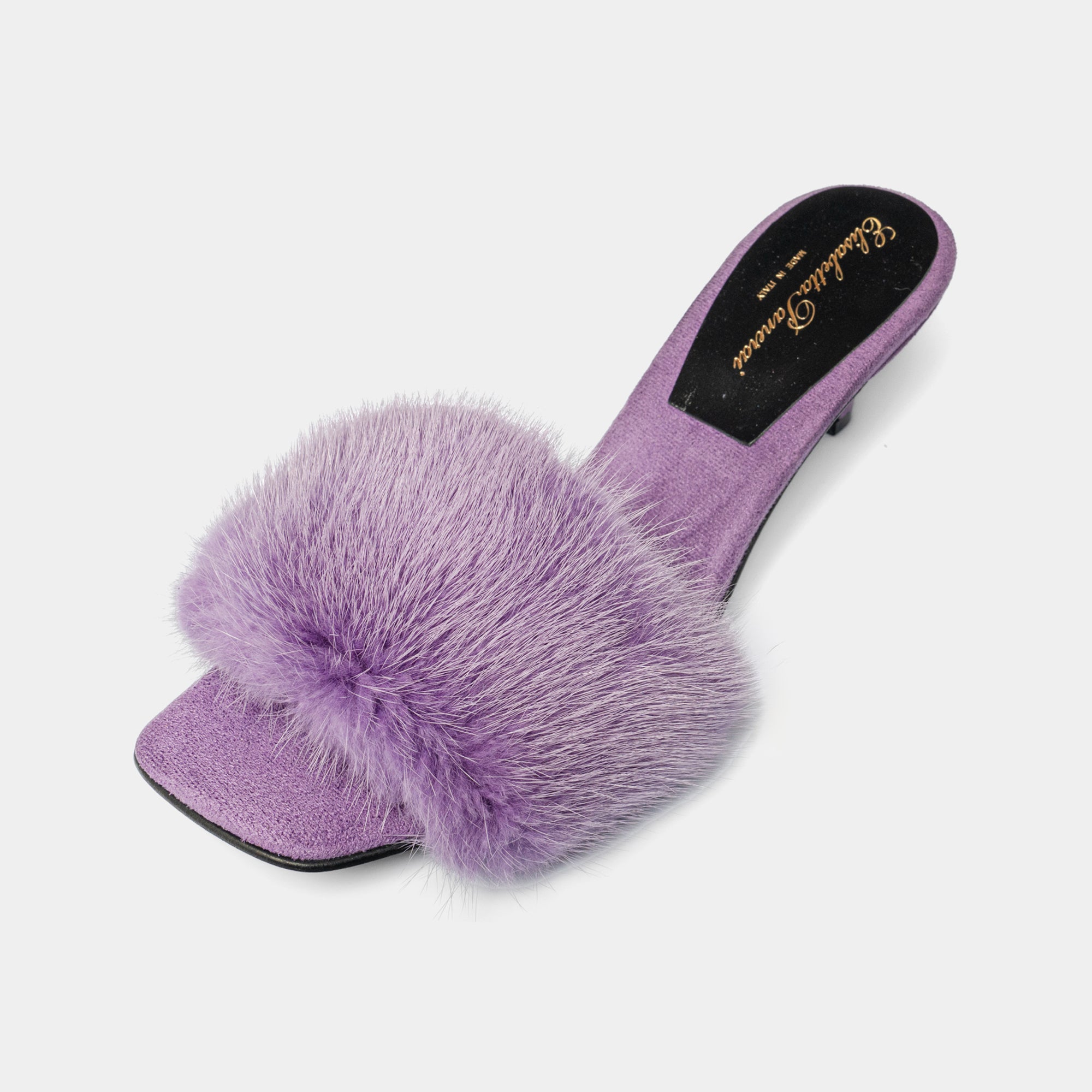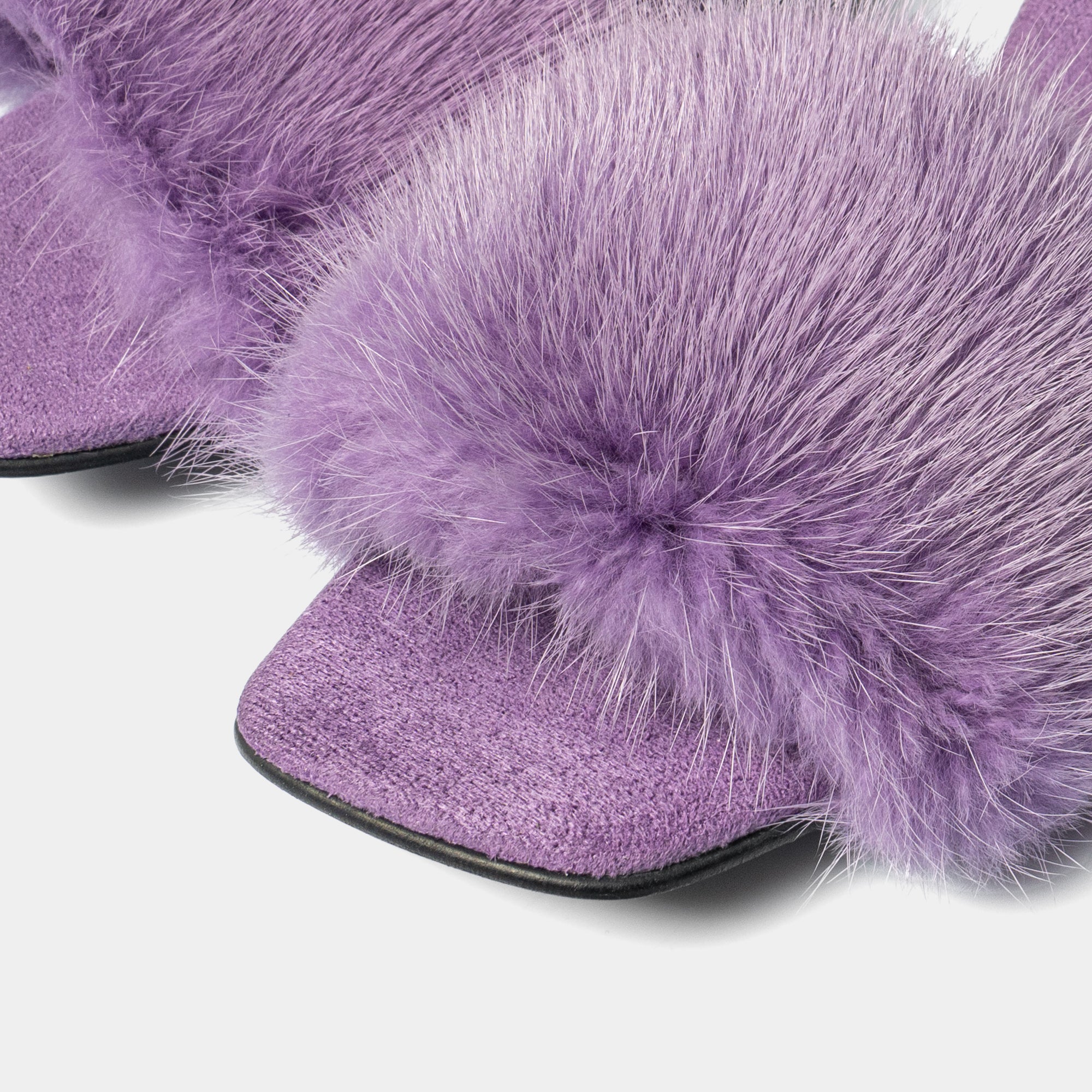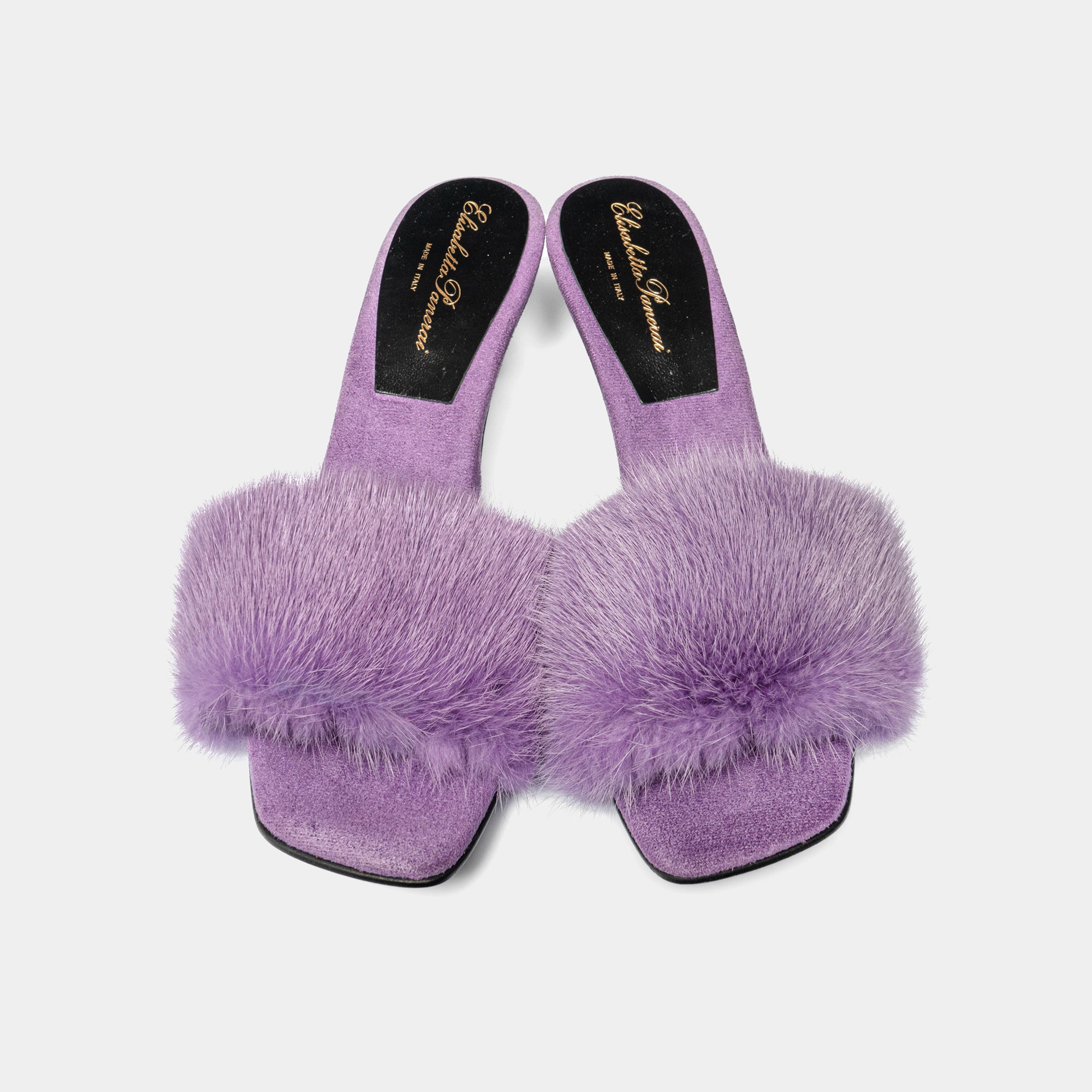 Made entirely by hand by our master craftsmen in the heart of Florence, these sandals are covered in fine suede and enriched with mink fur details, a distinctive sign of the Elisabetta Panerai maison.