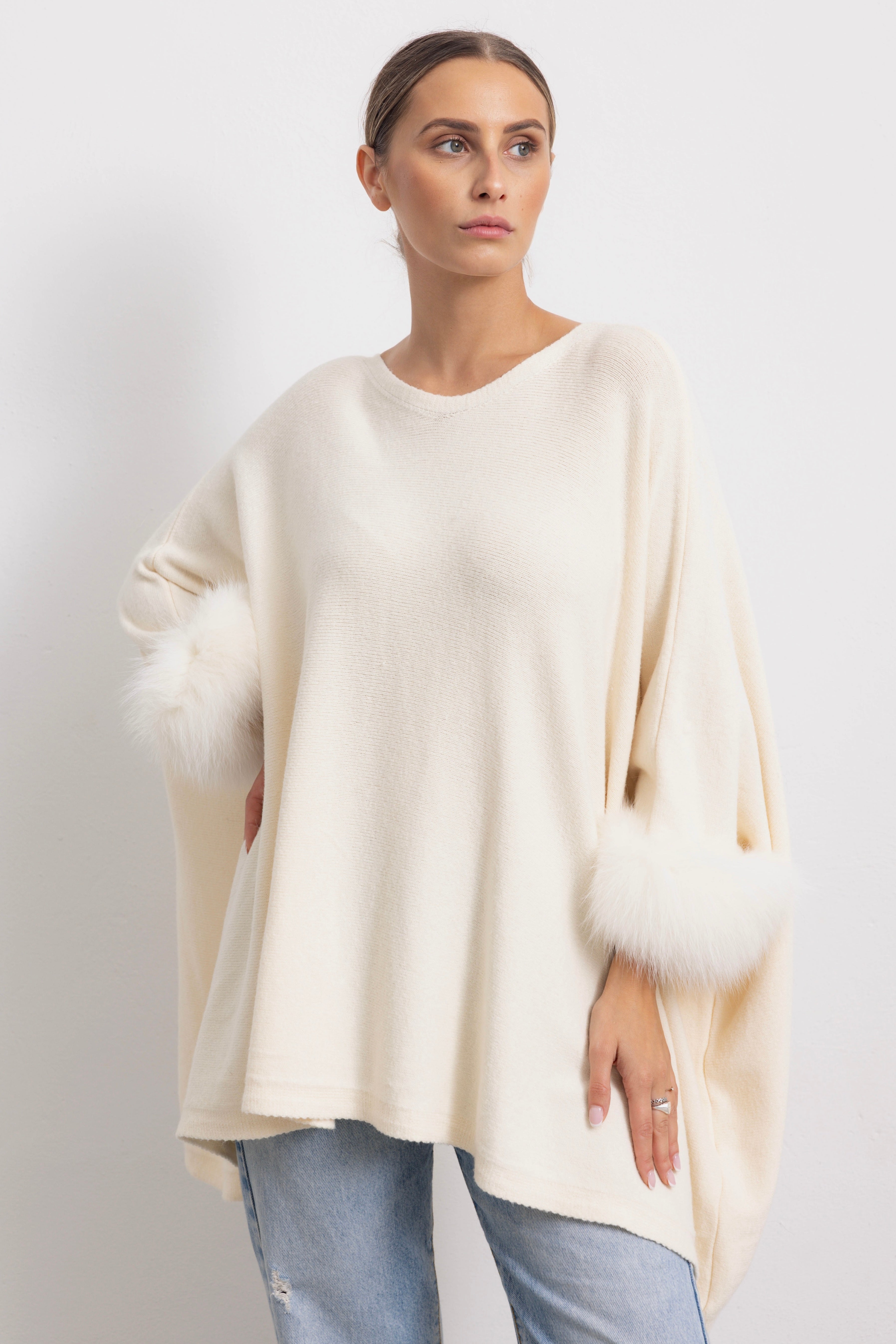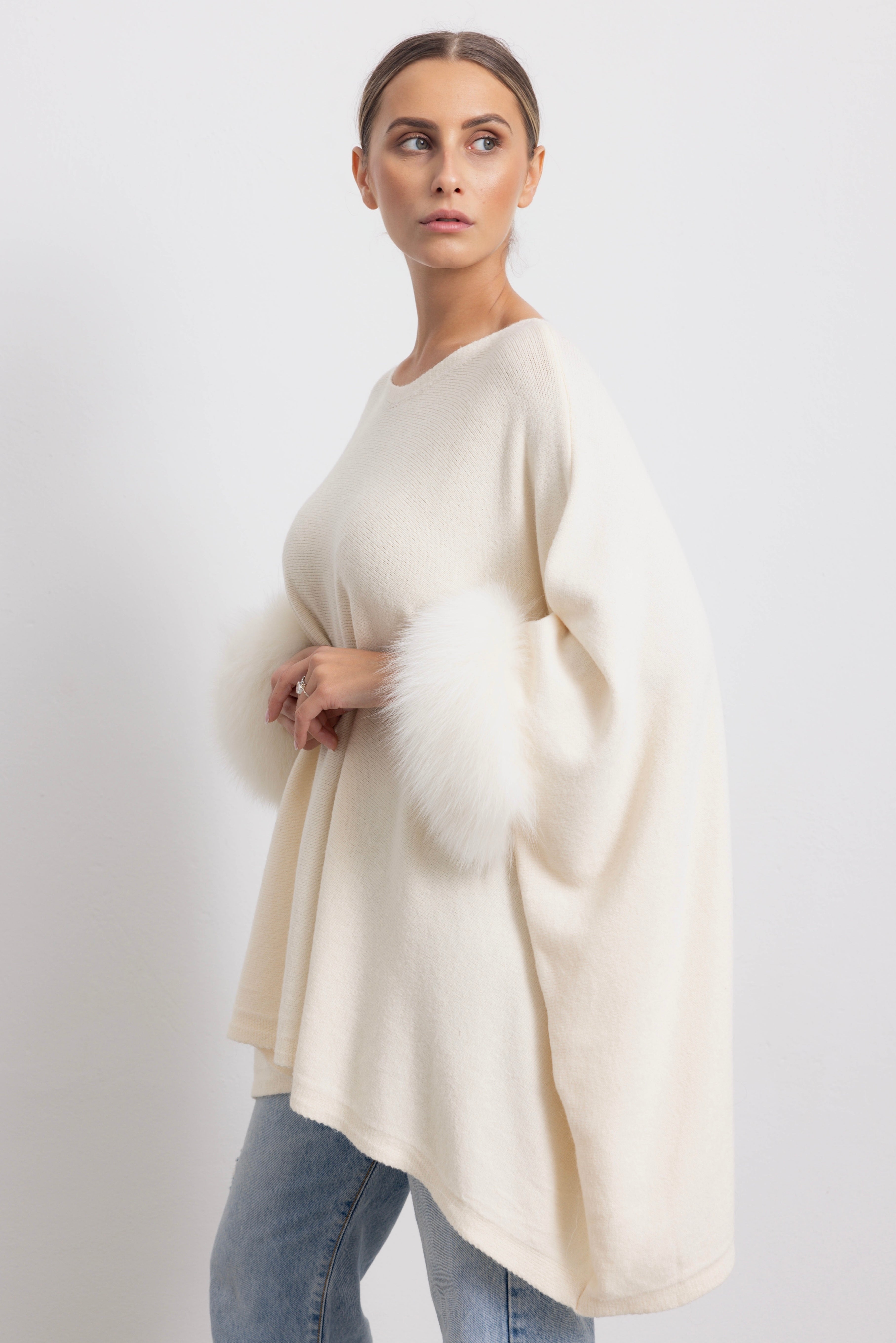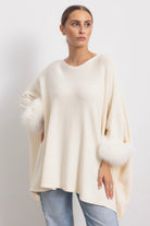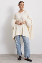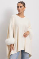 LONDRA - Poncho con polsini in volpe (Burro)