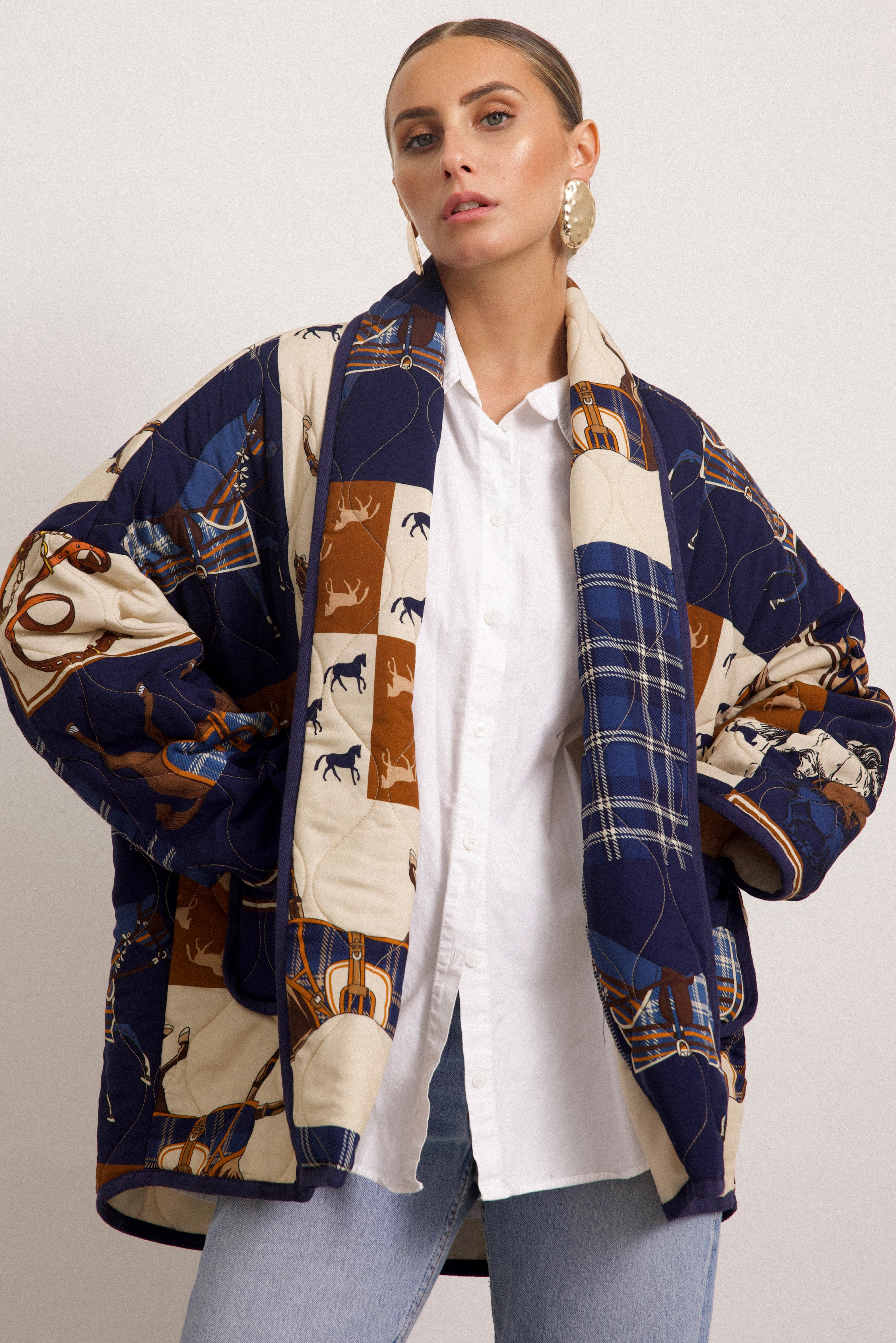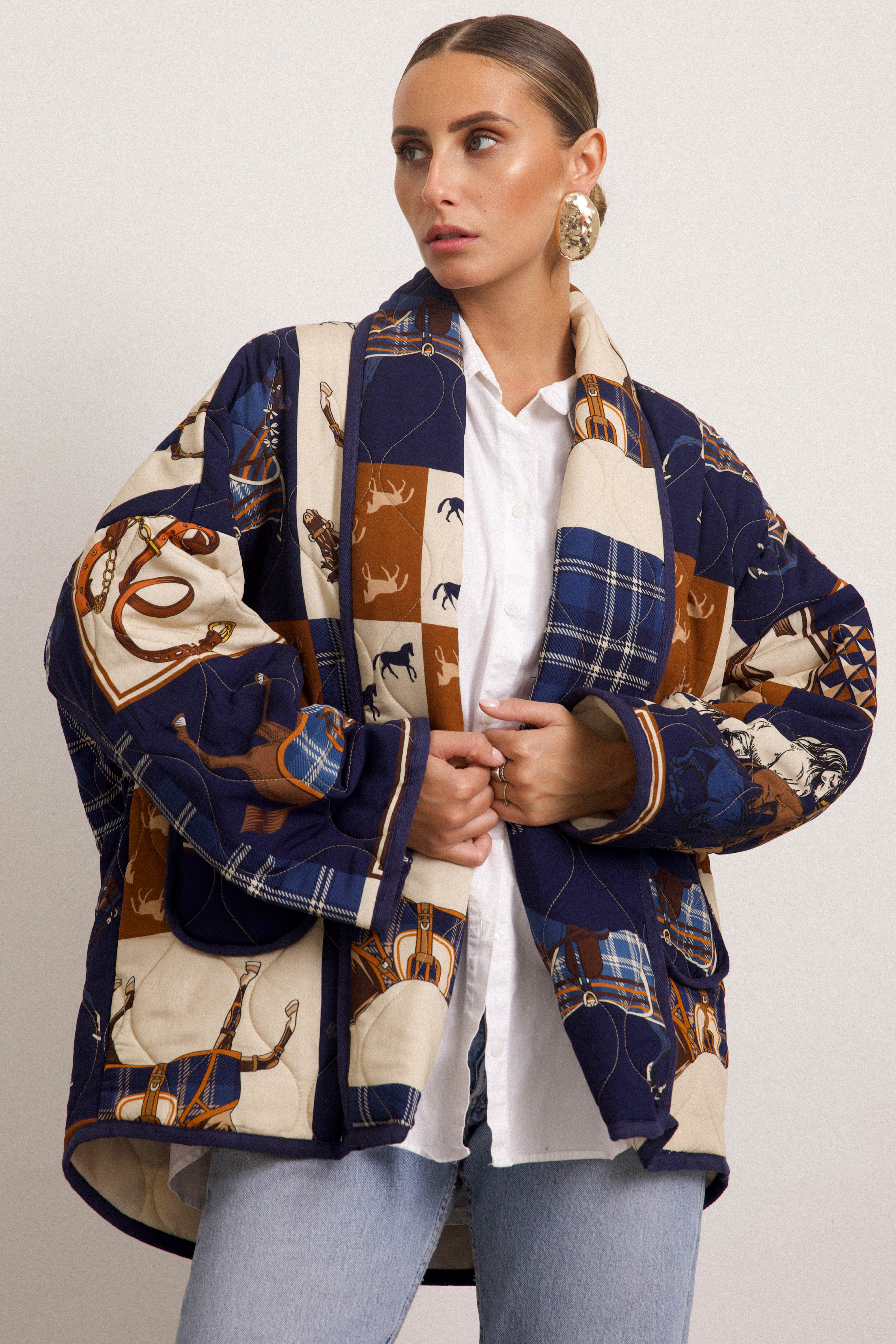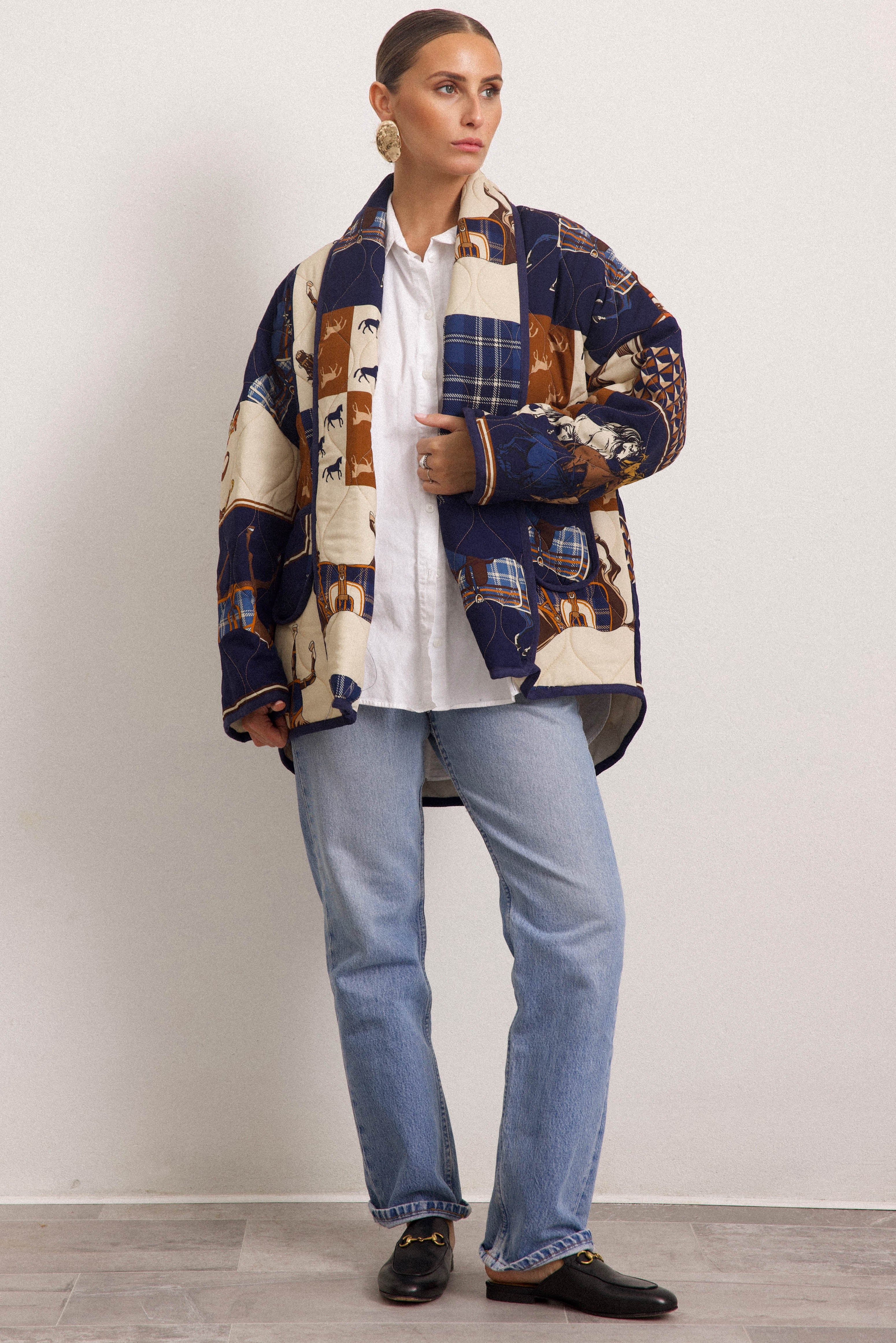 FRANCOFORTE - Trapuntino fantasia equestre (Blu)