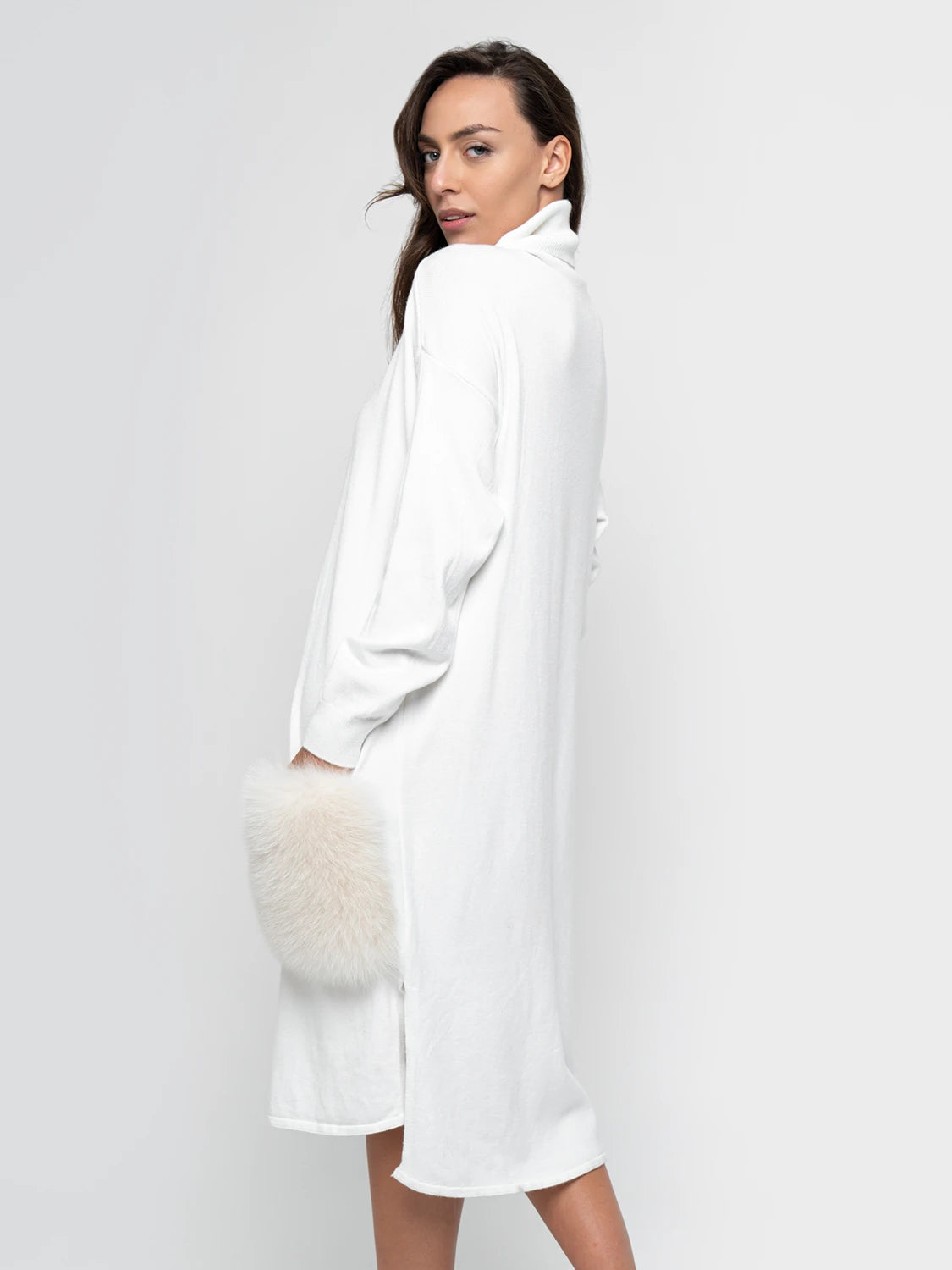 The sweeteen neck adds an enveloping and refined note, making this dress the ideal companion for the colder seasons, without ever sacrificing charm or comfort. Designed for the modern woman, confident, who requires the best from her wardrobe, this dress embodies the essence of authentic and artisan luxury that only a brand like Elisabetta Panerai can offer.