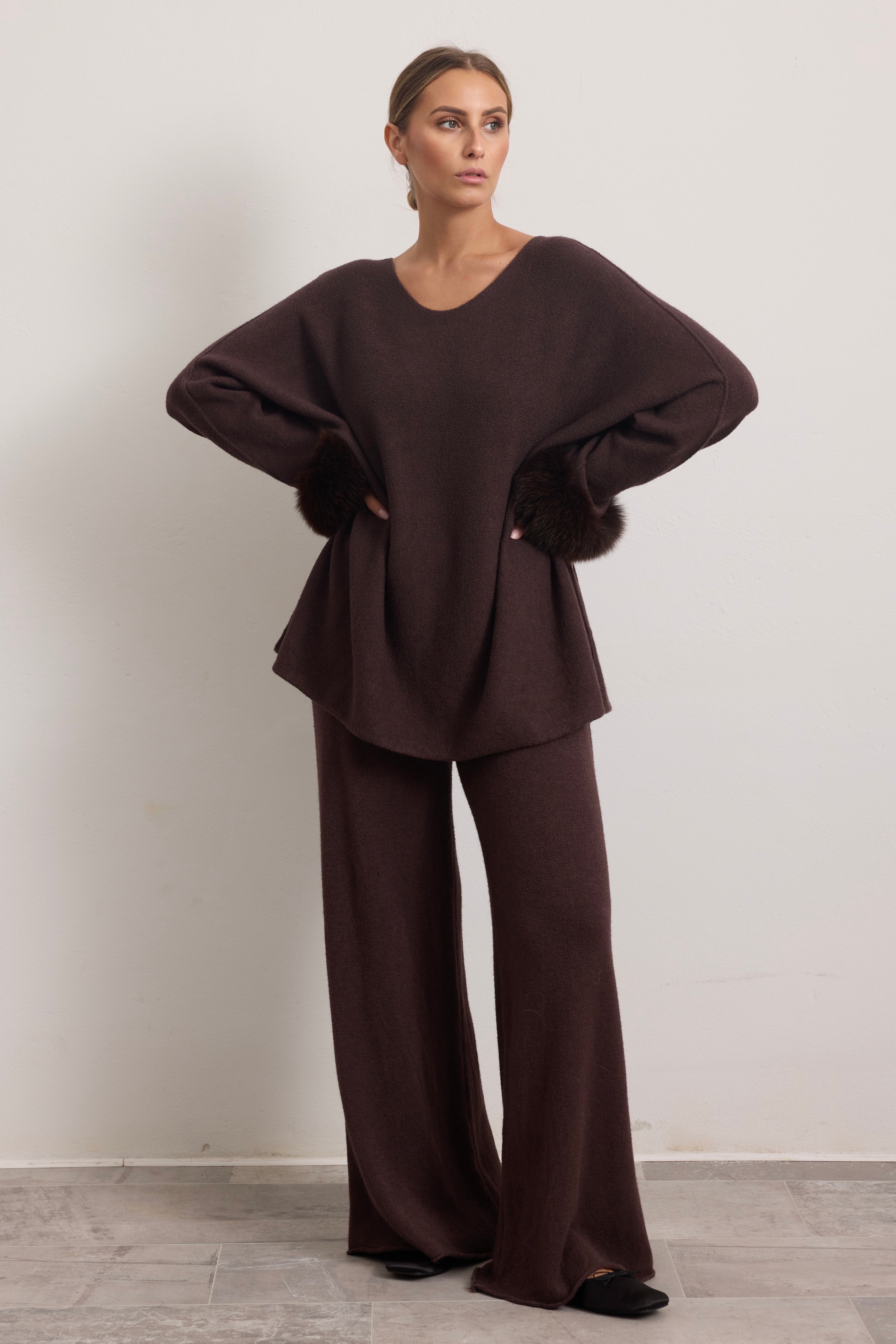 AMALFI - Completo con polsini in volpe (Marrone)