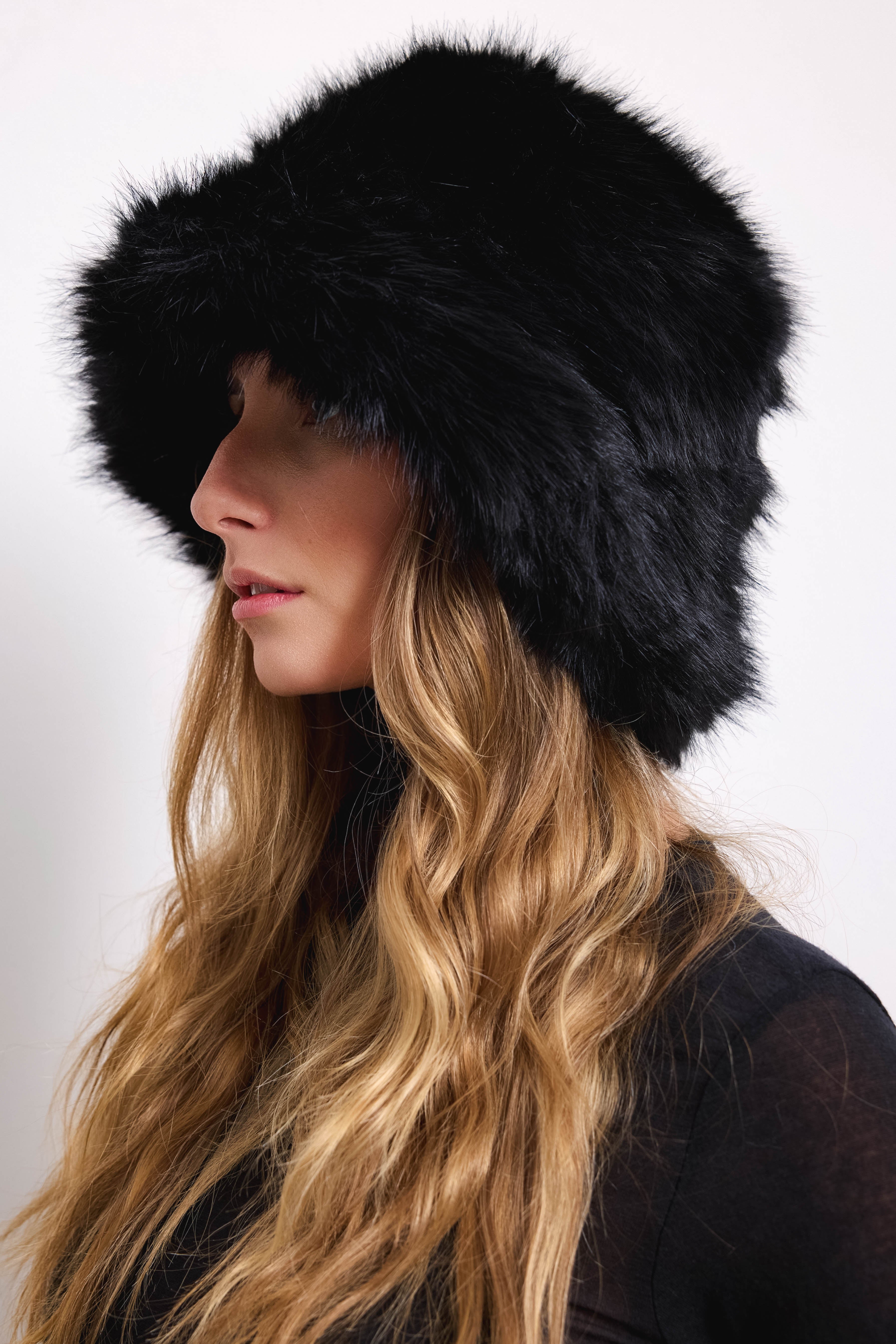 CALCUTTA - Cappello bucket ecopelliccia (Nero)