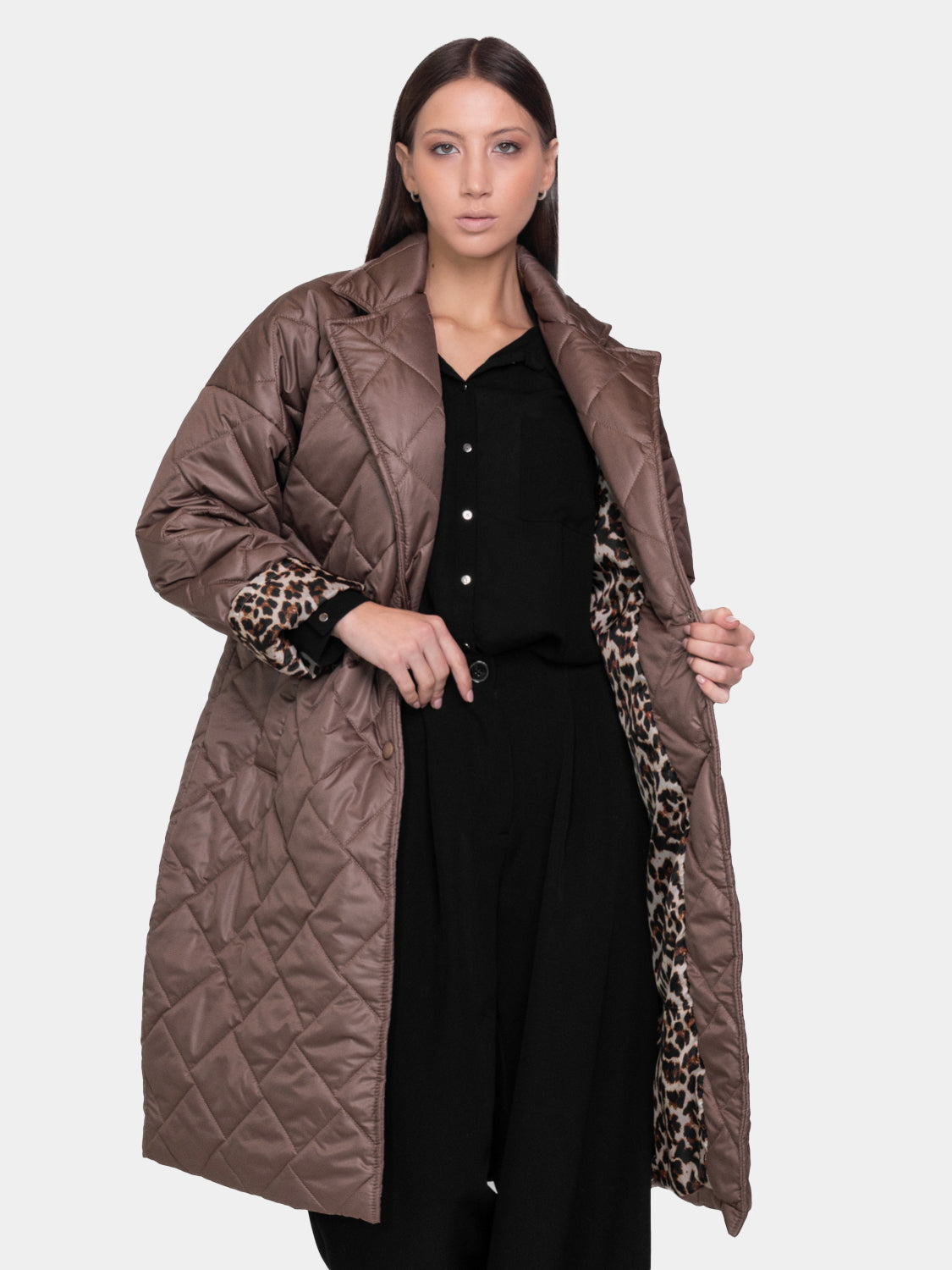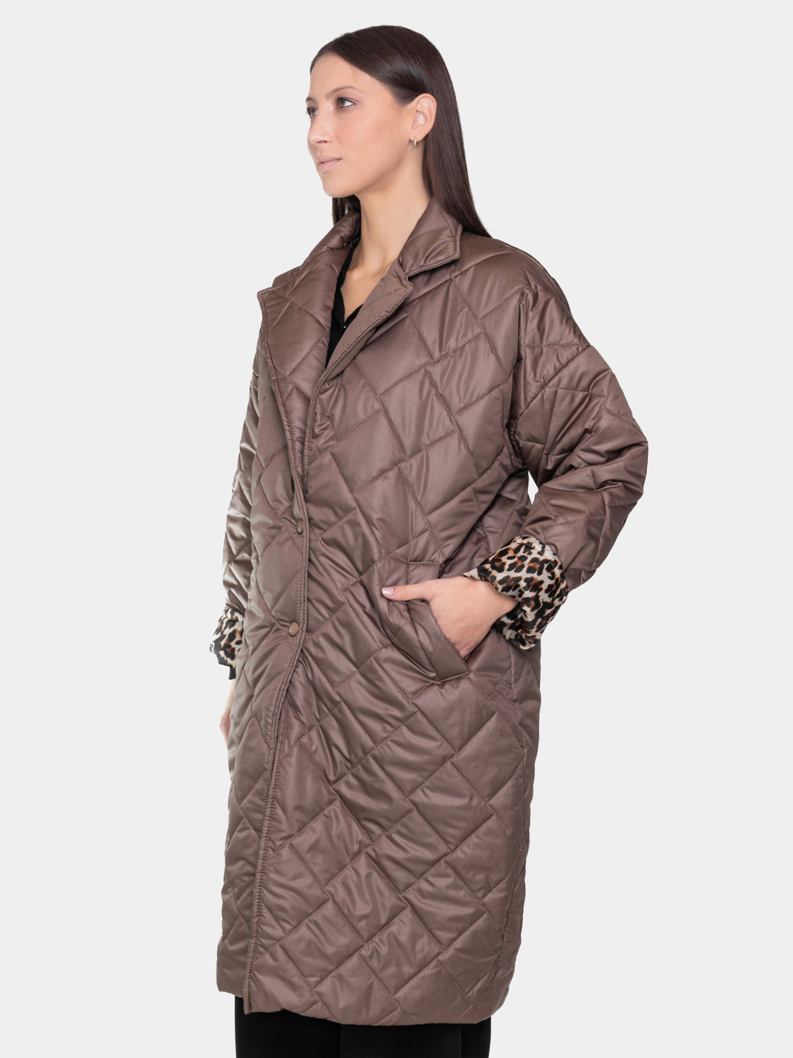 Here is the long quilted duvet with classic collar, disappeared side pockets and two central buttons. The interior is in animal fantasy in the monocolor versions, while in the animal version it is in black color, the game of colors and fantasy is found in the implication of the sleeve