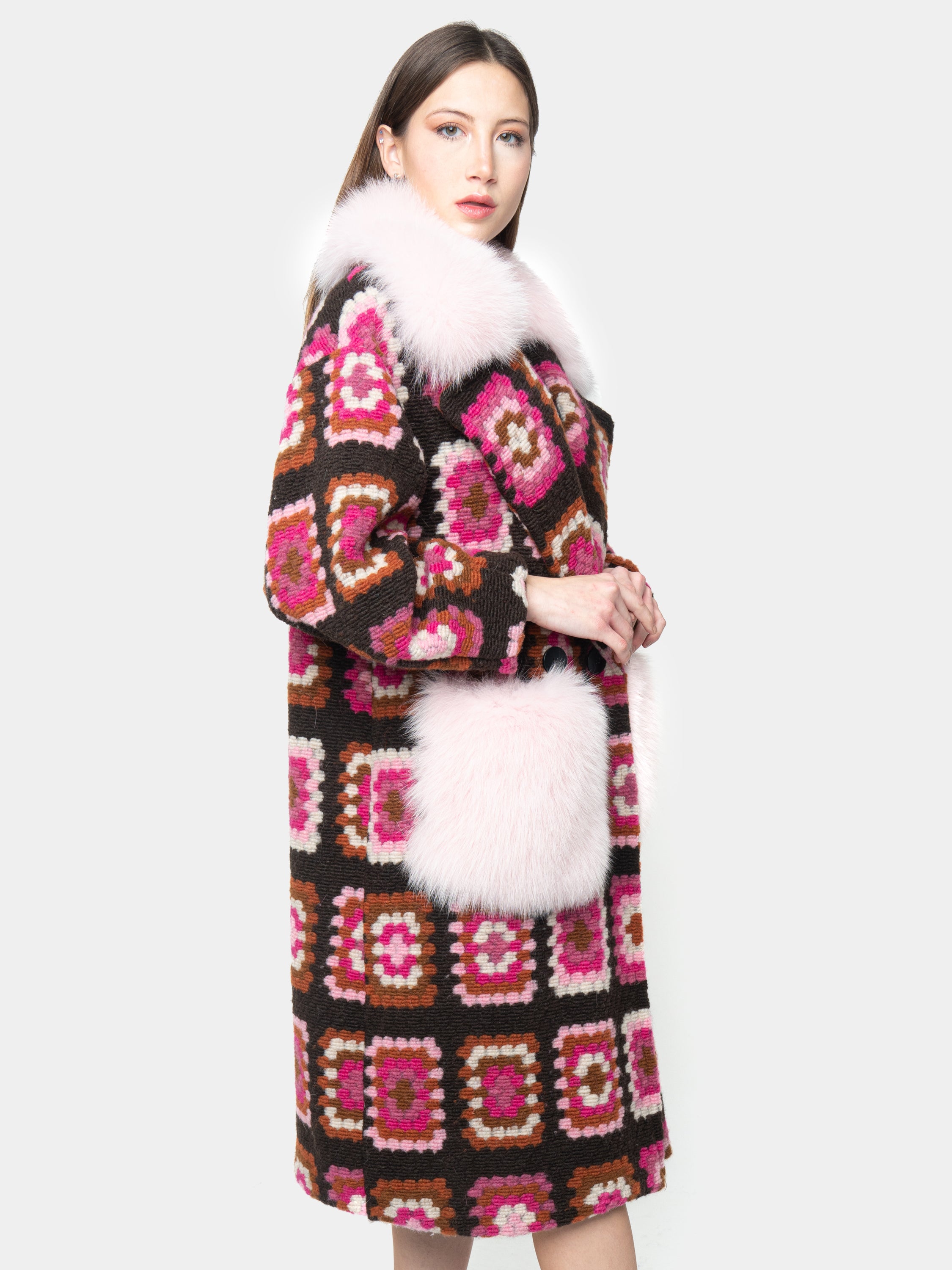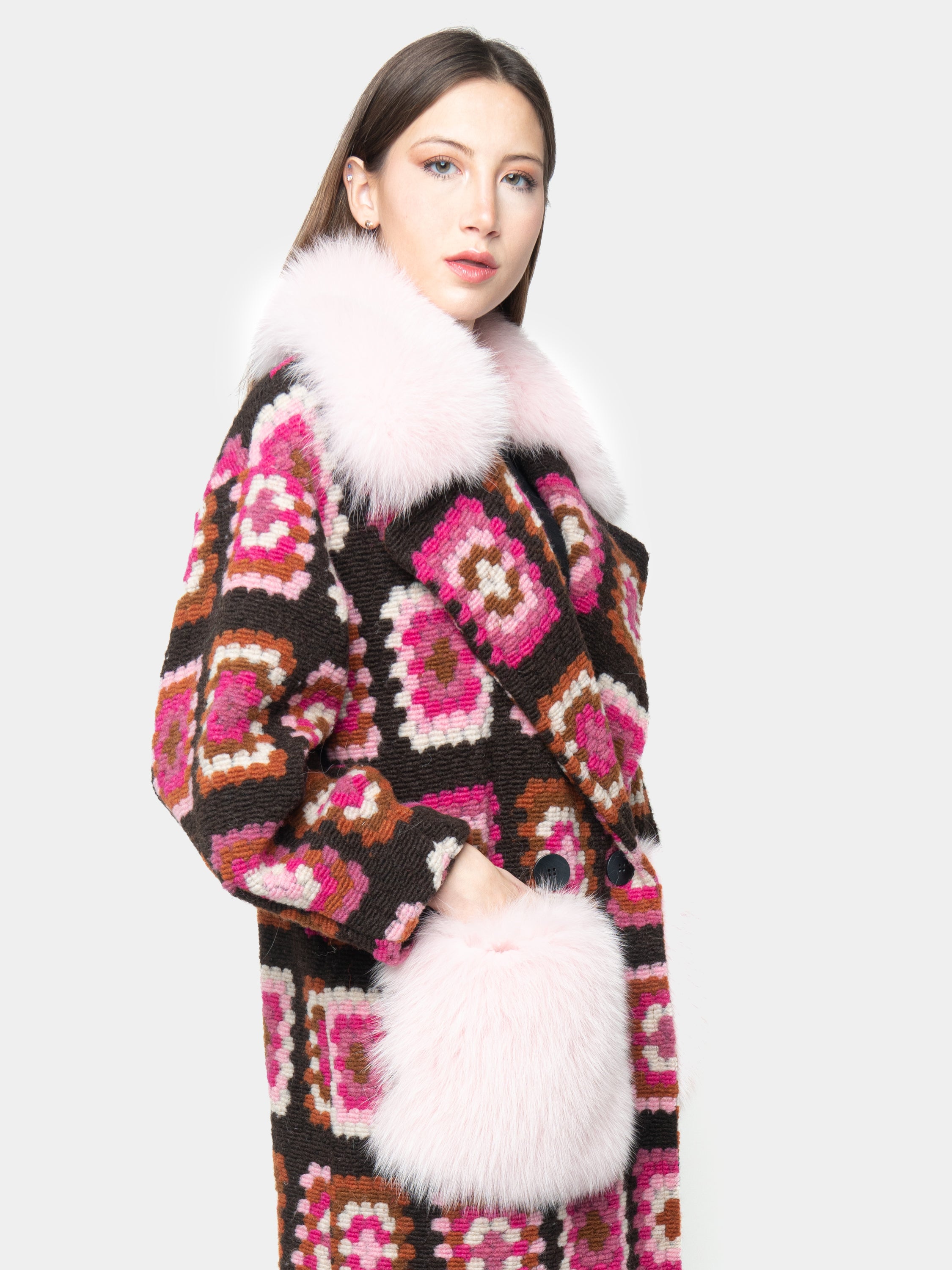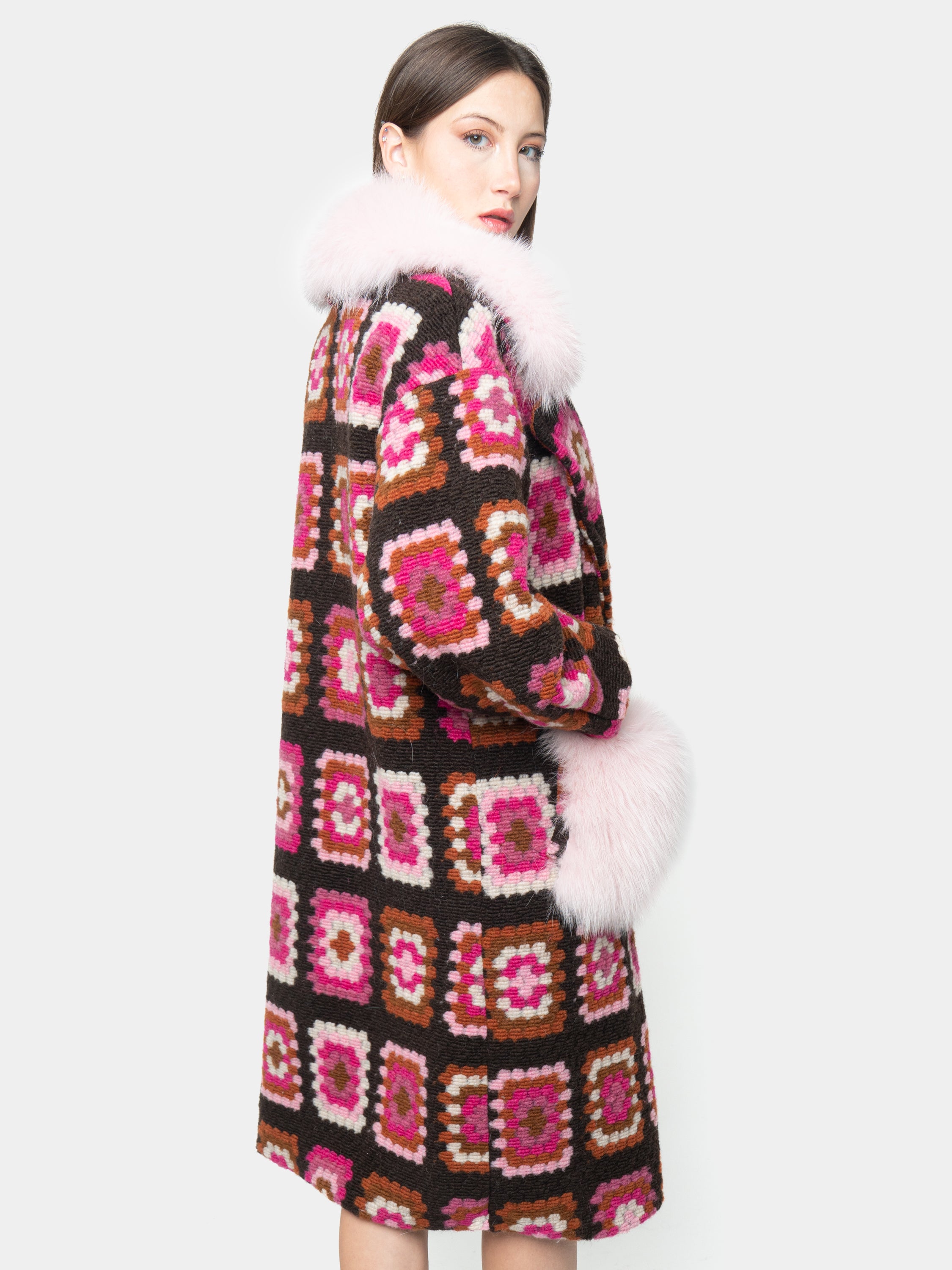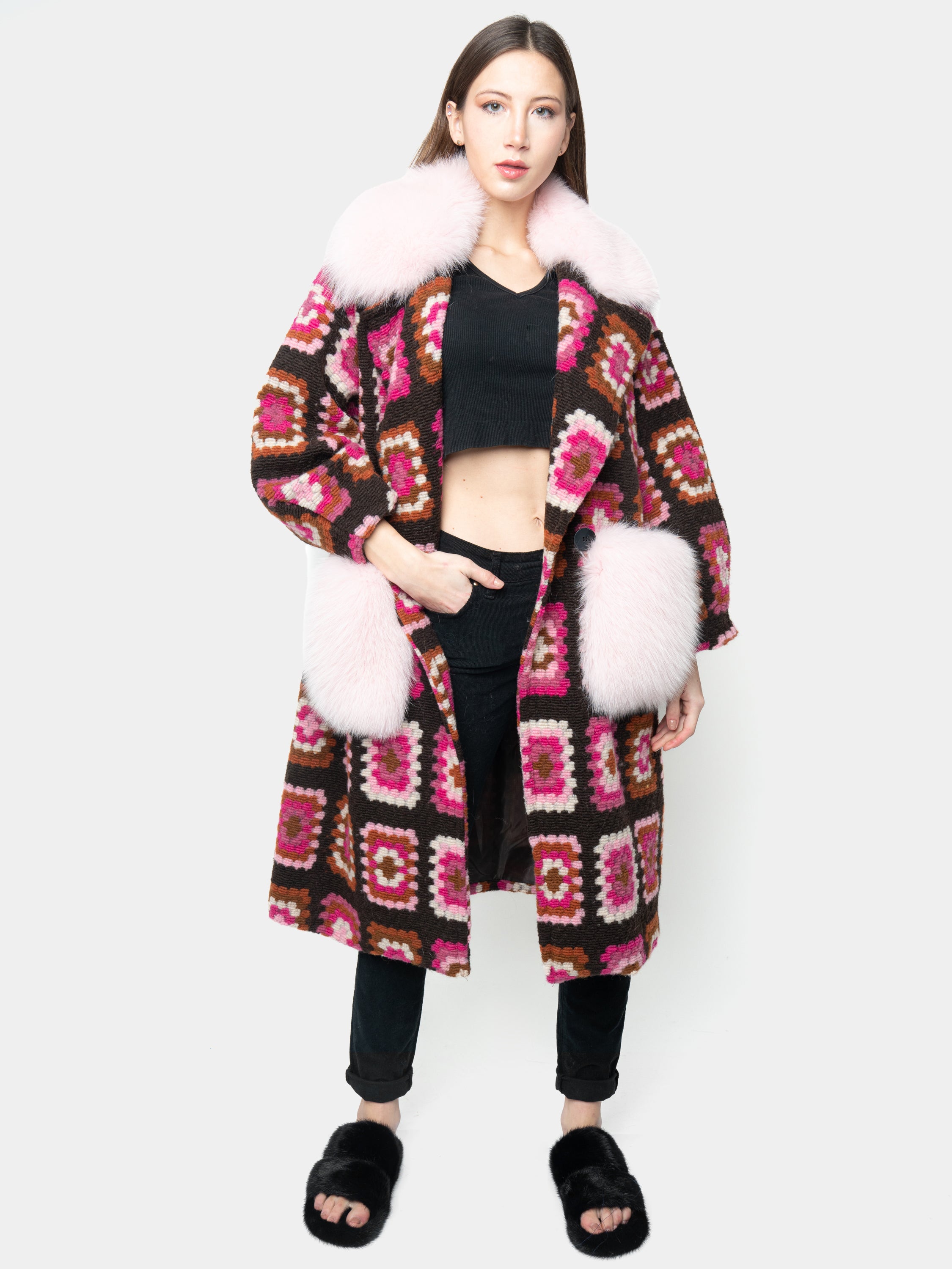 Stockholm Crochet - Coat with pockets and fox neck bordering (fuchsia/brown)
