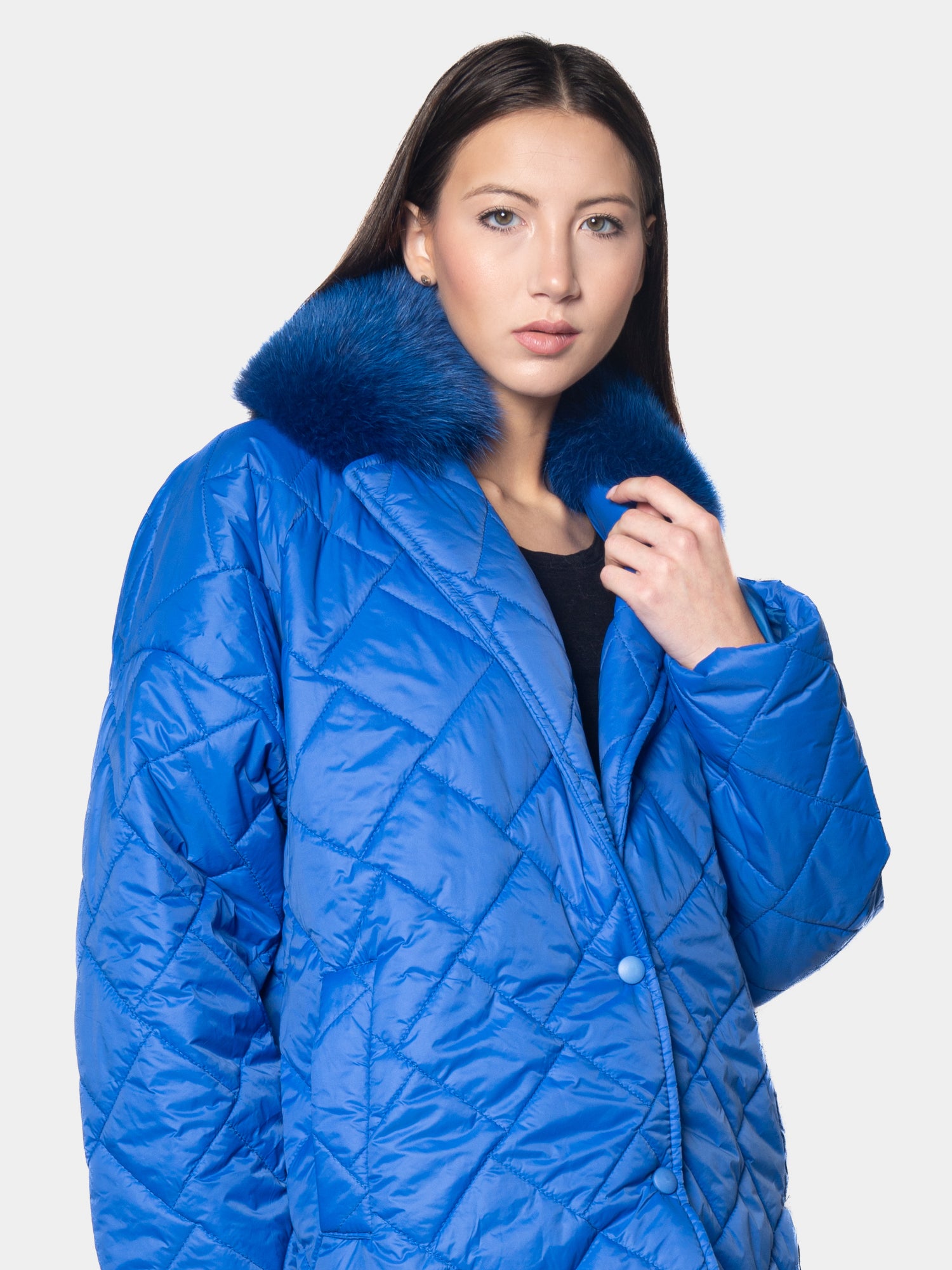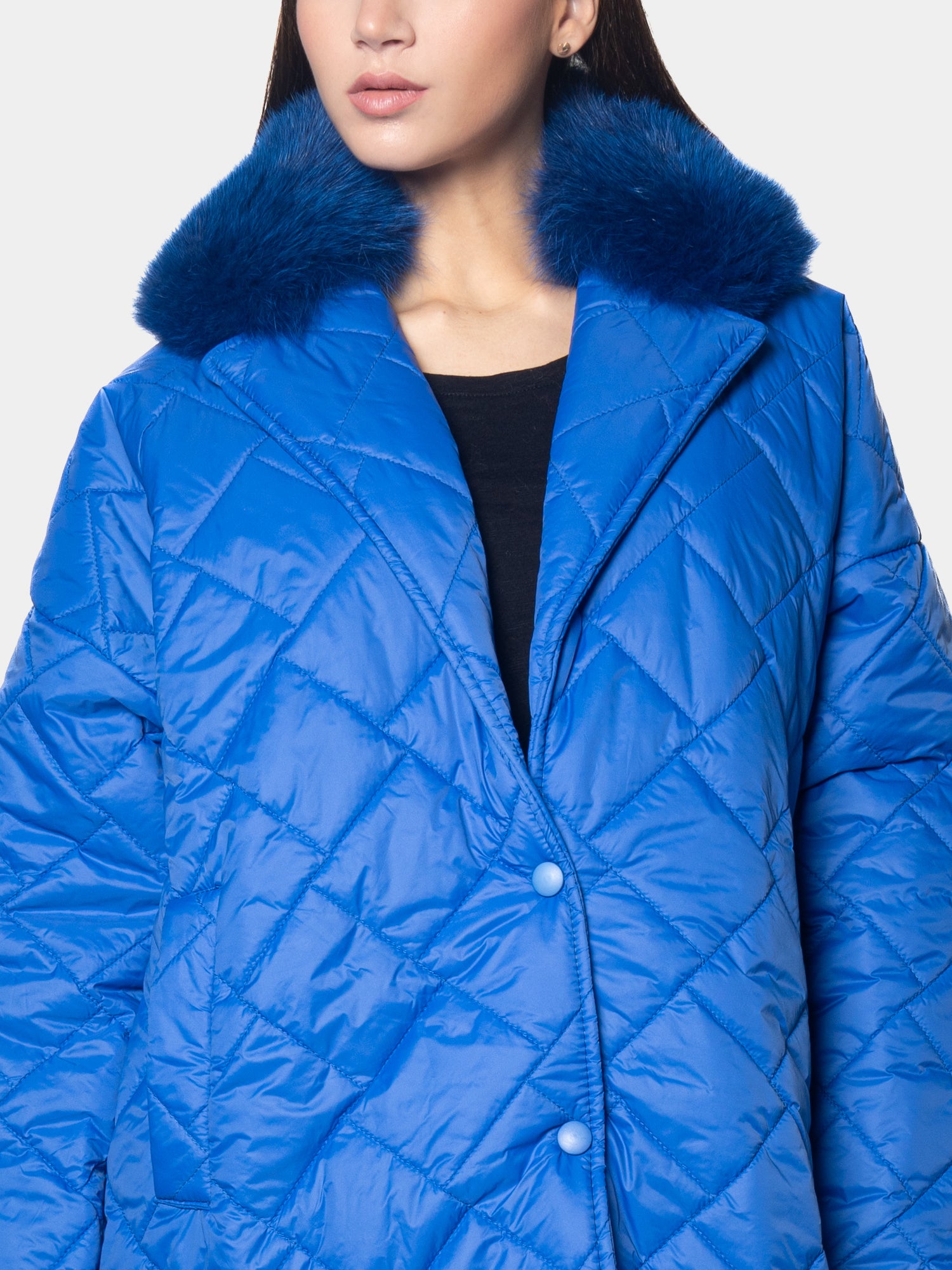 Izzz Innsbruck - Hundred grams coat with fox neck edge (blue)