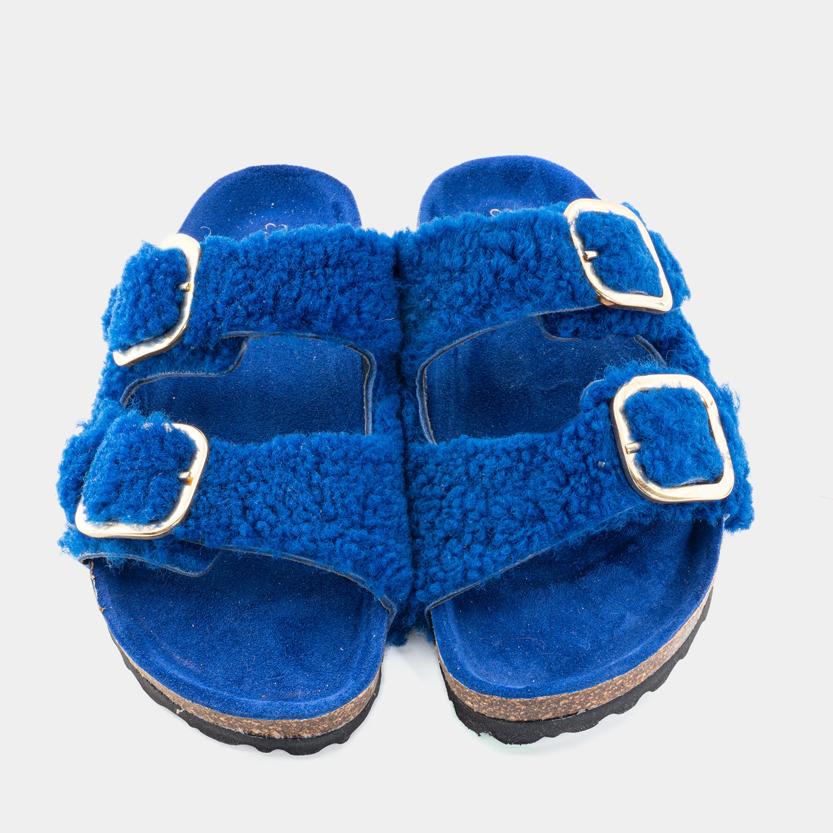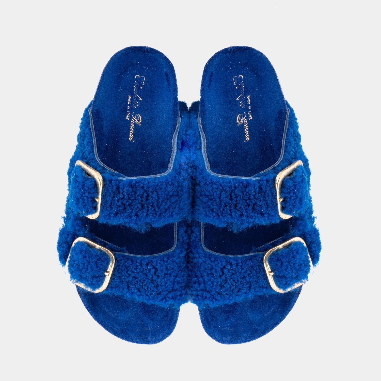 Florence - Double -band slippers and adjustable buckles in mutton (blue)