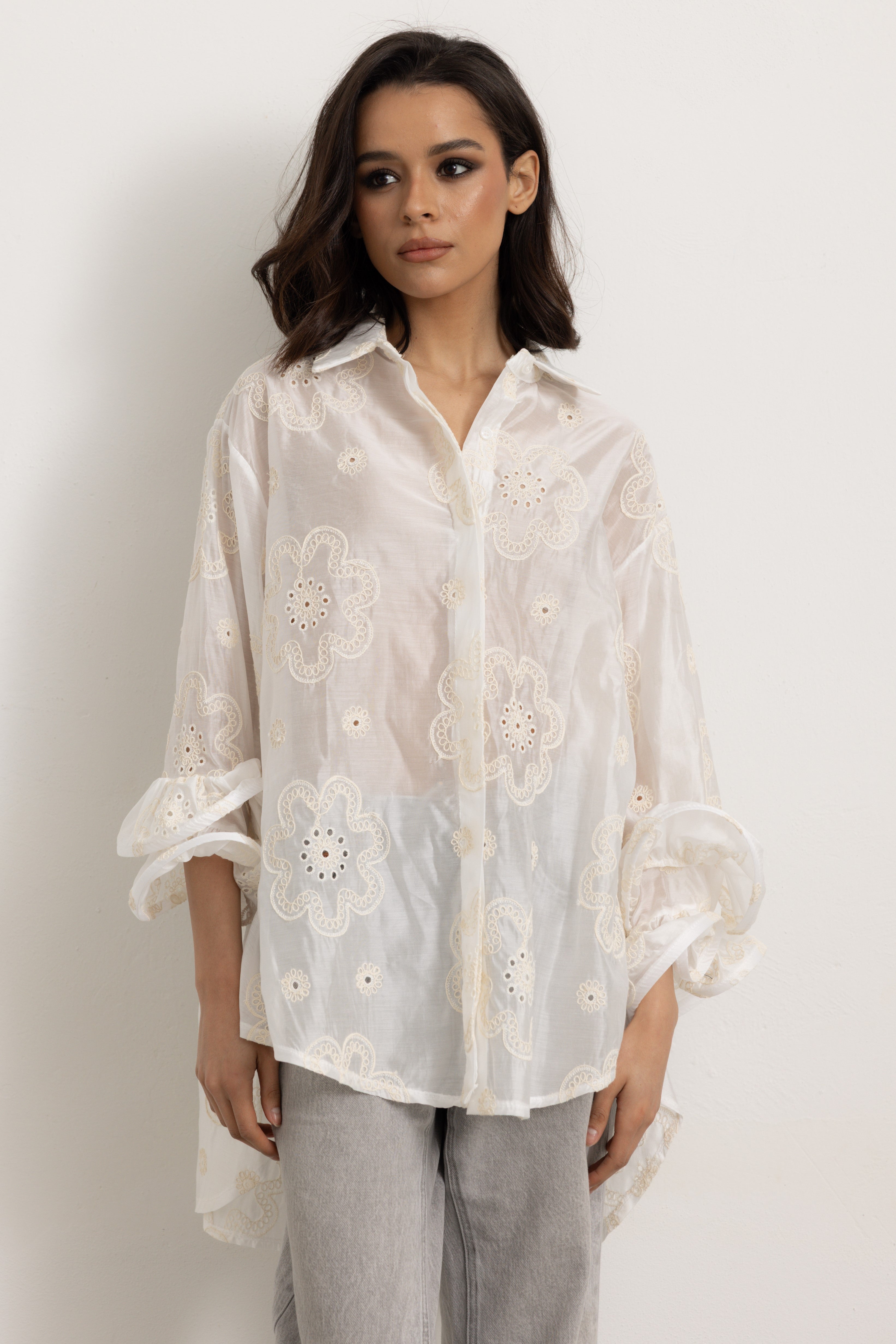 FLAMENCO - Camicia ricamo a fiori (Bianco)