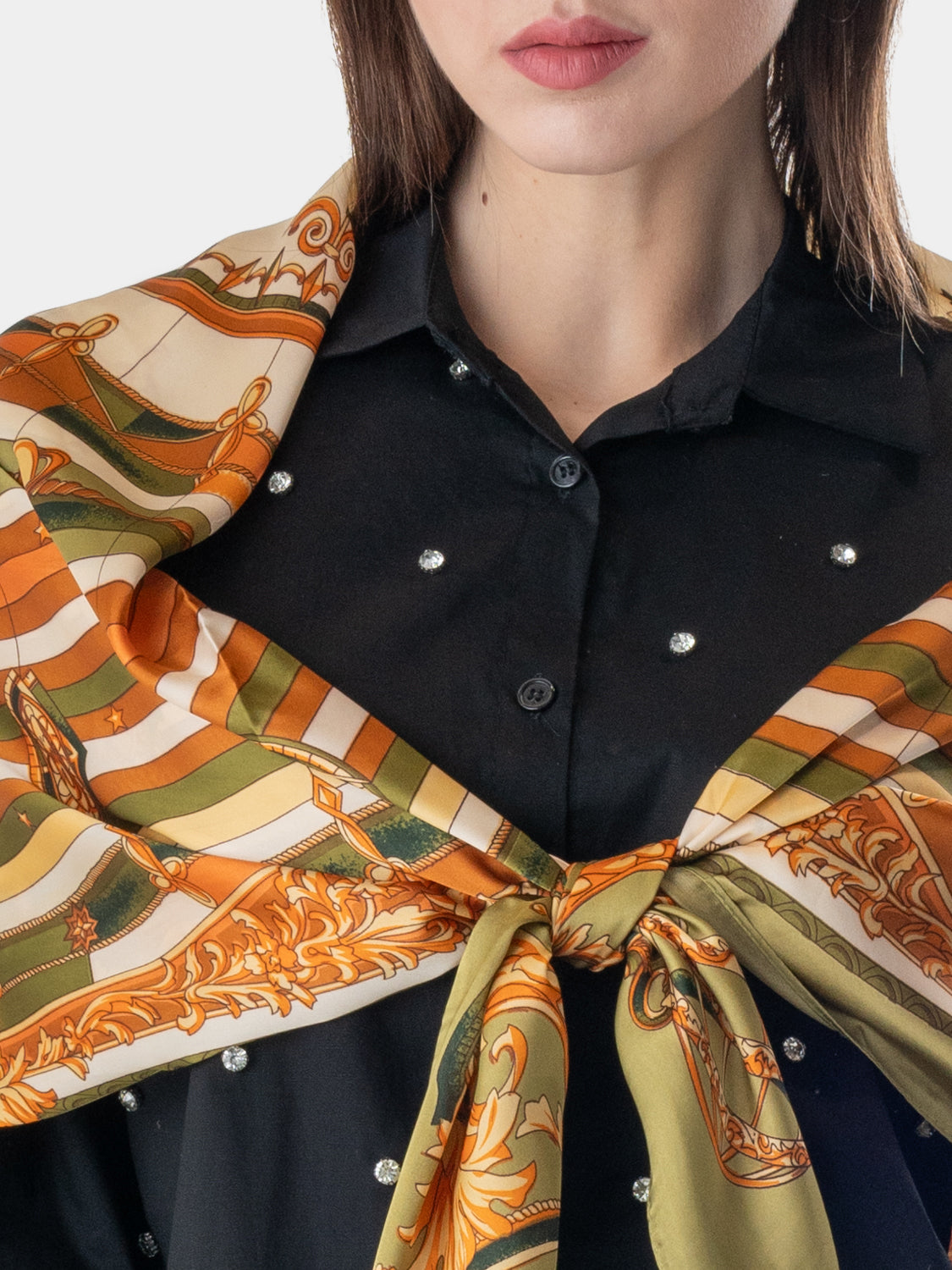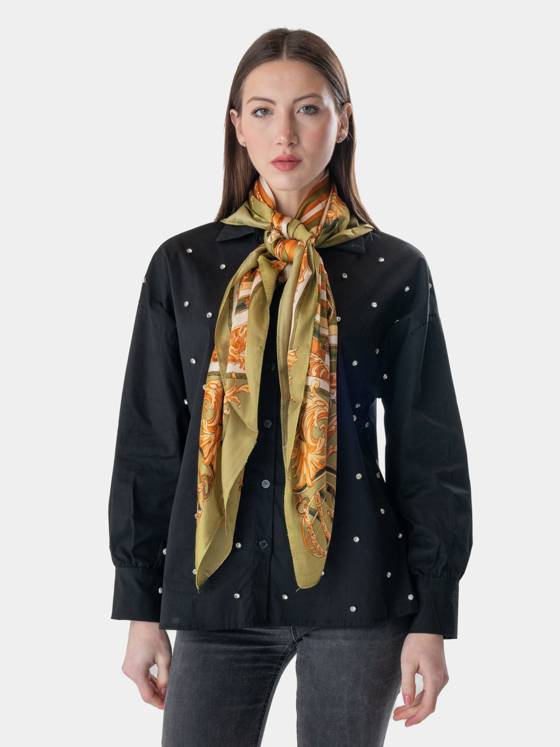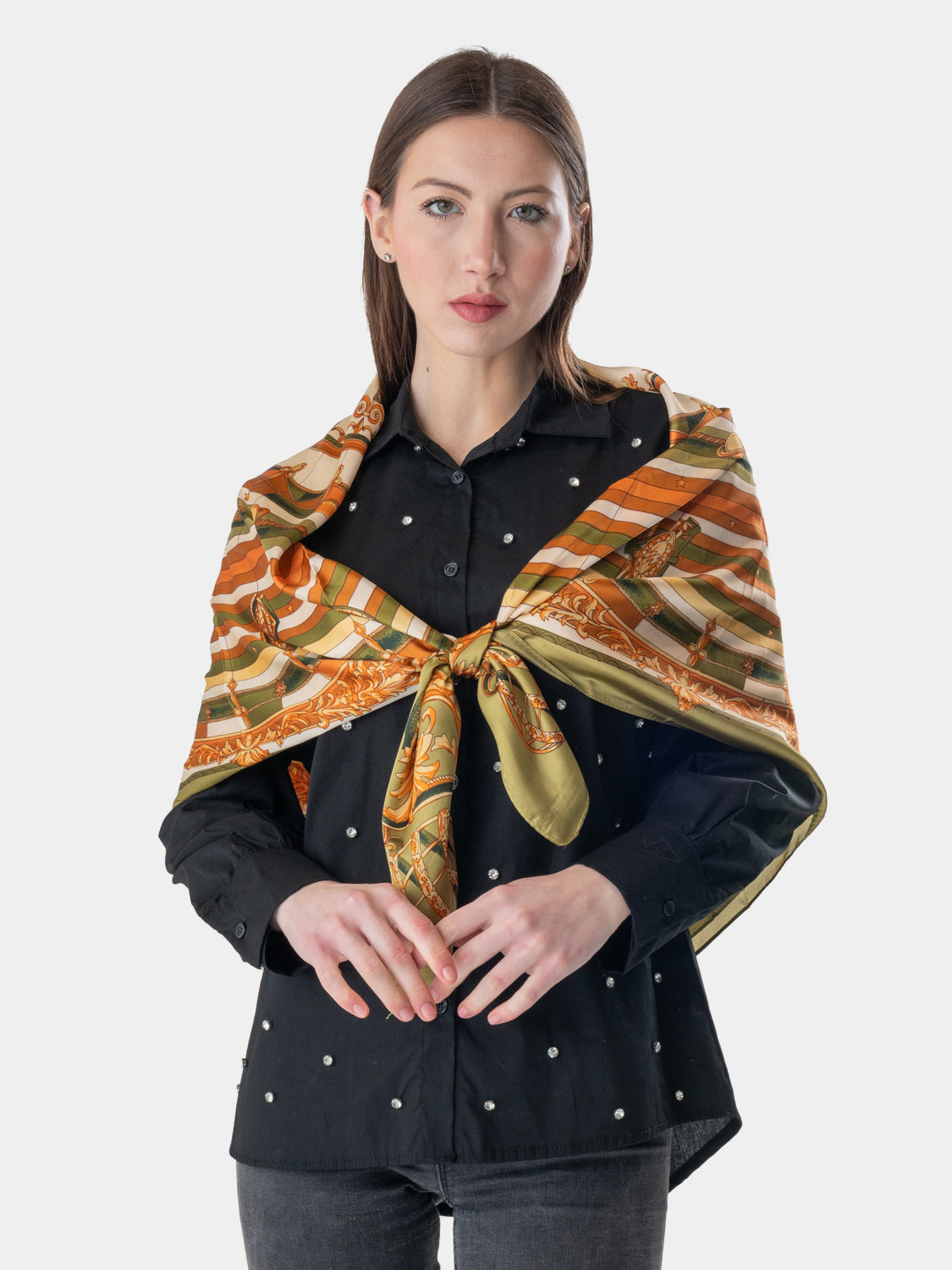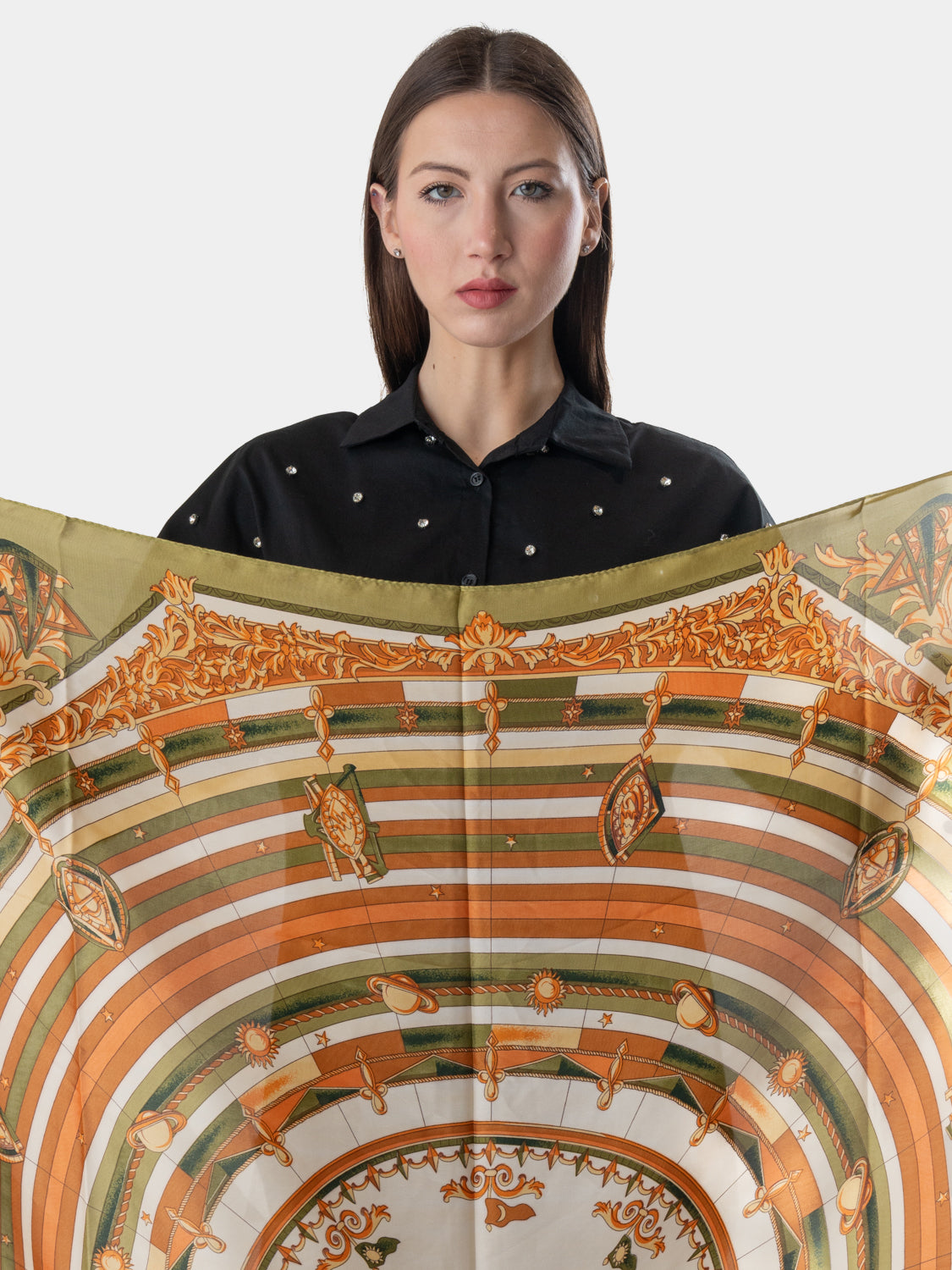 Timeless elegance and romanticism merge into this silk mixed scarf.