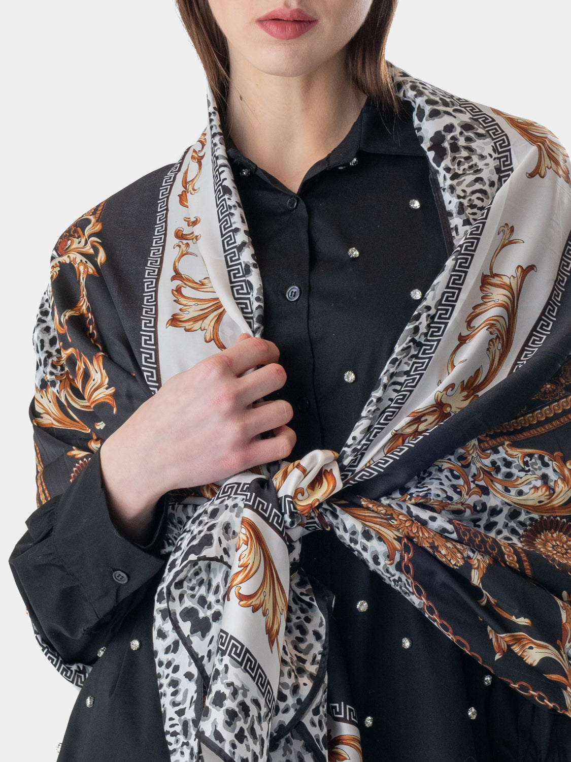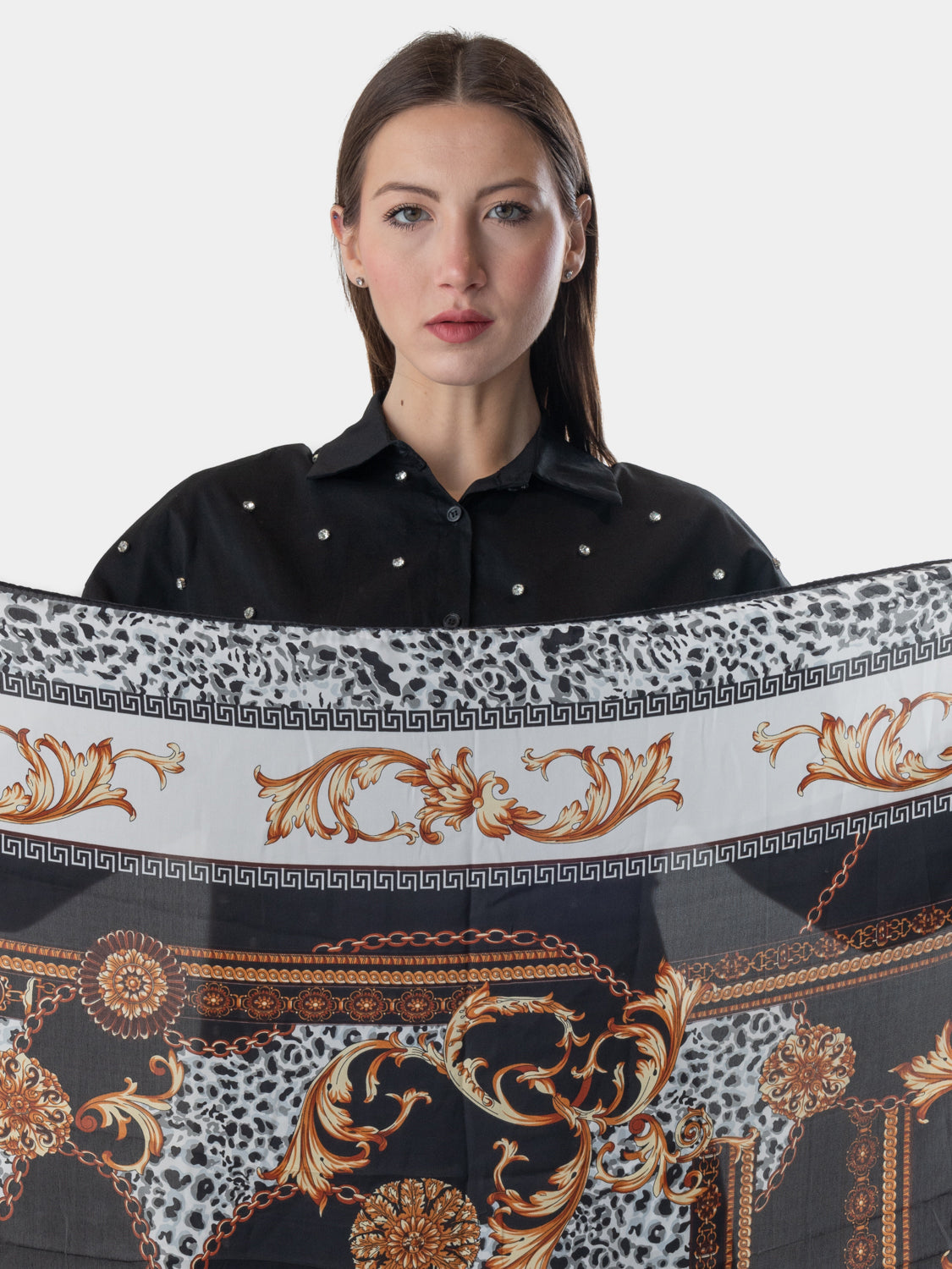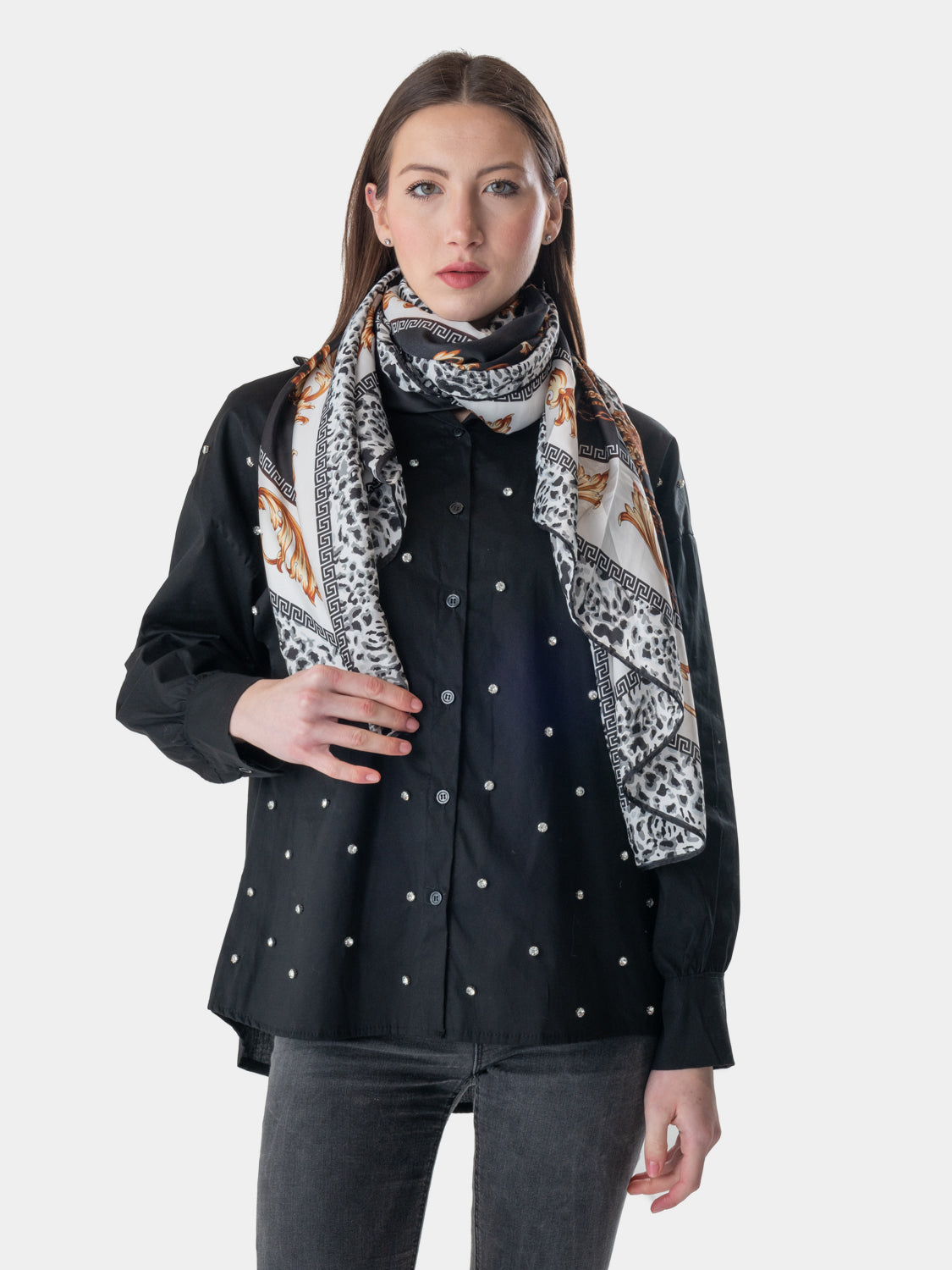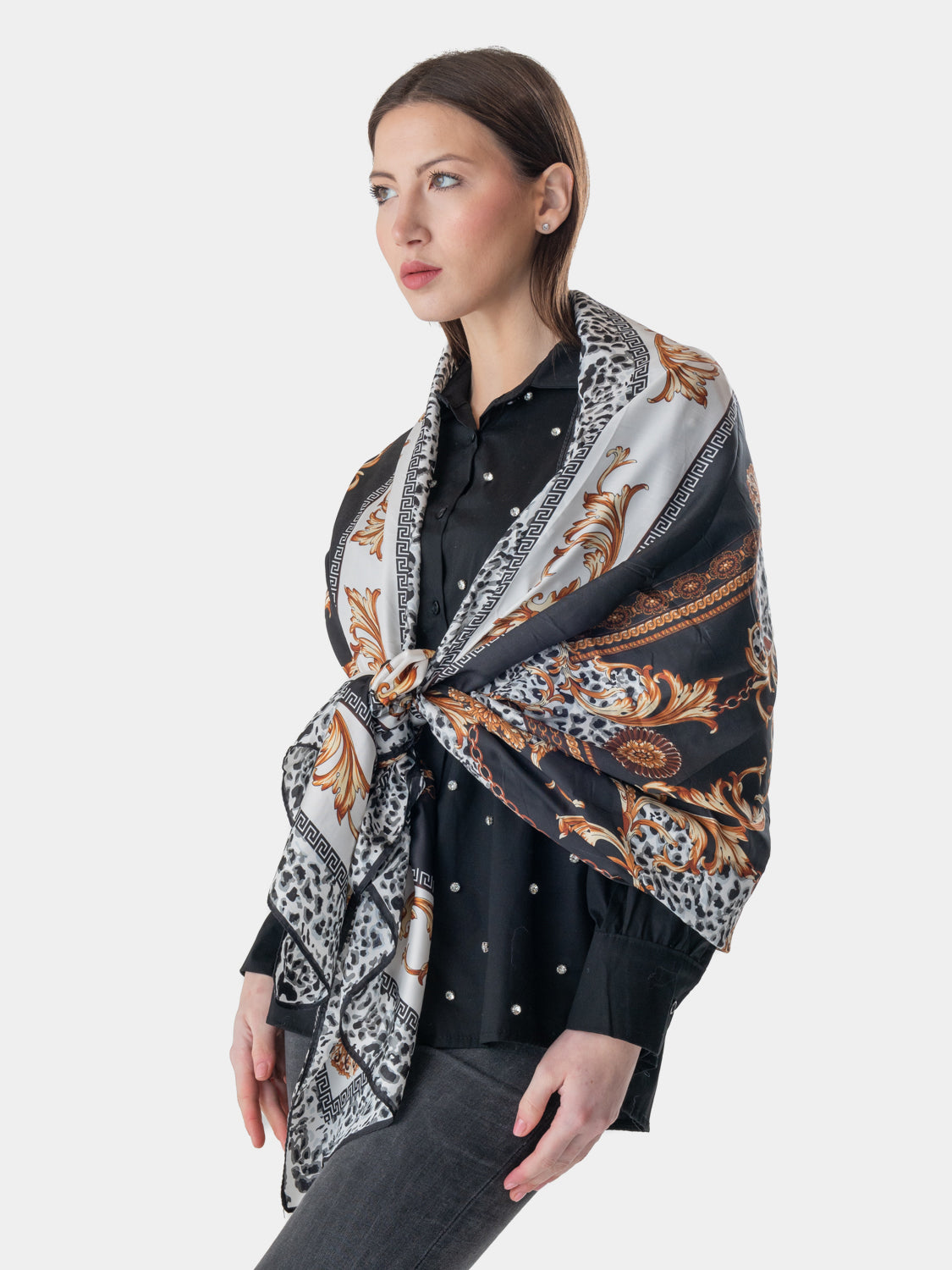 Timeless elegance and romanticism merge into this silk mixed scarf.