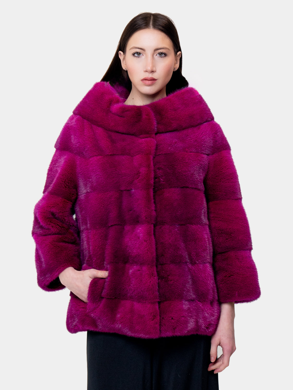 Discover the timeless charm of the Tiffany model jacket by Elisabetta Panerai. This garment combines the preciousness of the mink with an iconic design, characterized by clean lines and a modern fit. The "Tiffany" model enhances the neck with a rounded silhouette that recalls classical beauty, perfect for refined and elegant women. The jacket, finished with impeccable tailoring details, represents the excellence of Made in Italy, a must-have for those who want a sophisticated and without compromised look.