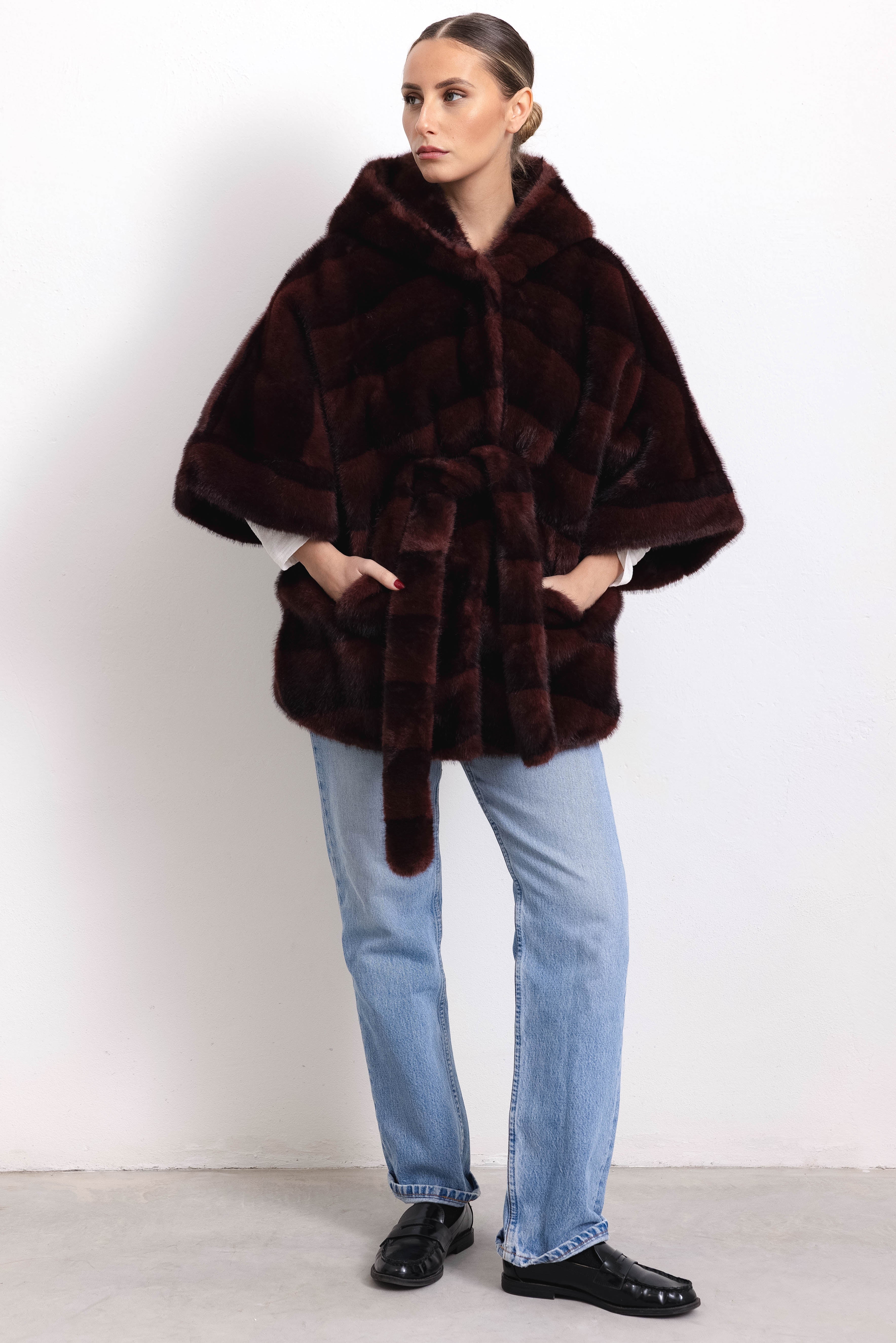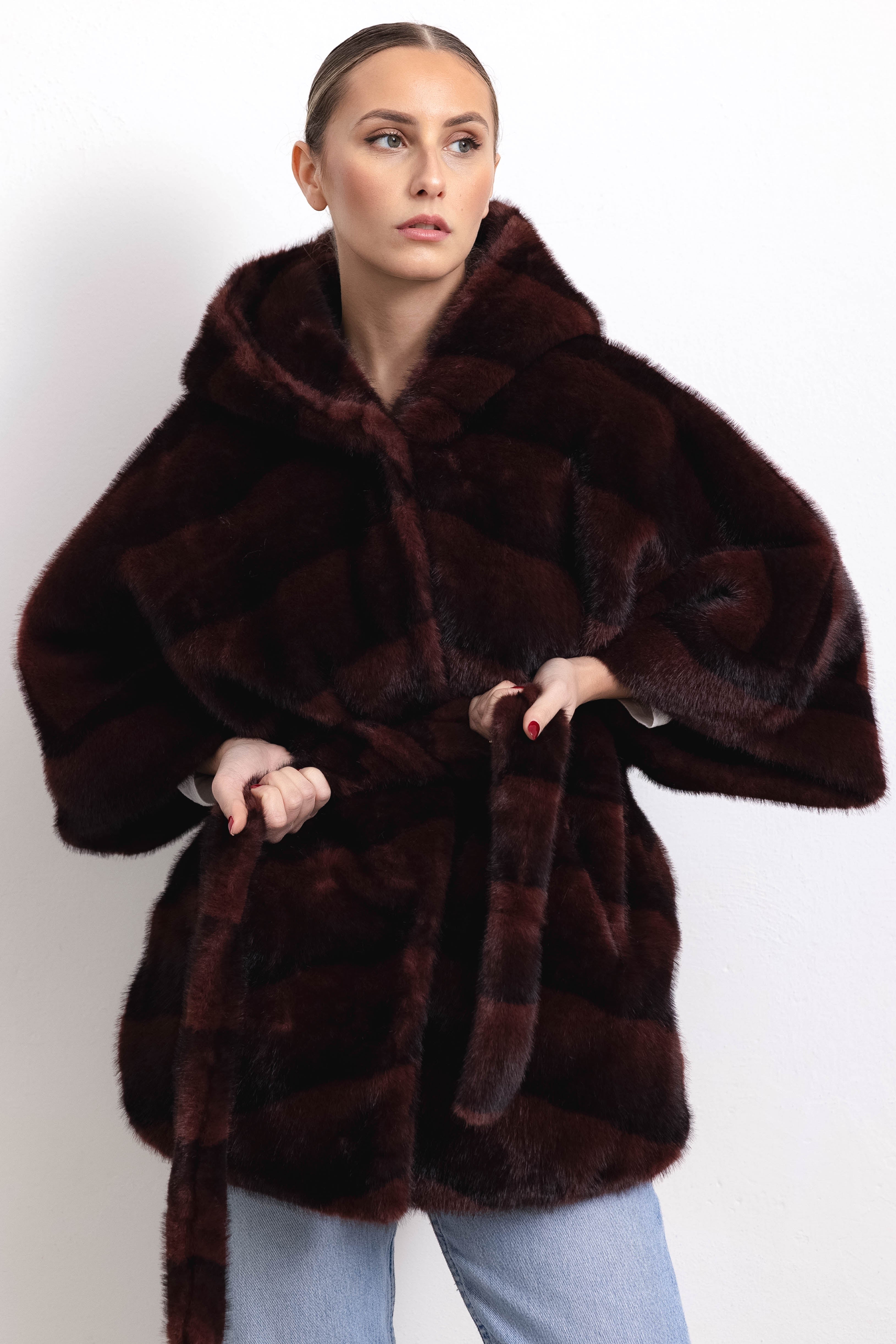 KYOTO - Kimono cintura e cappuccio (Bordeaux)