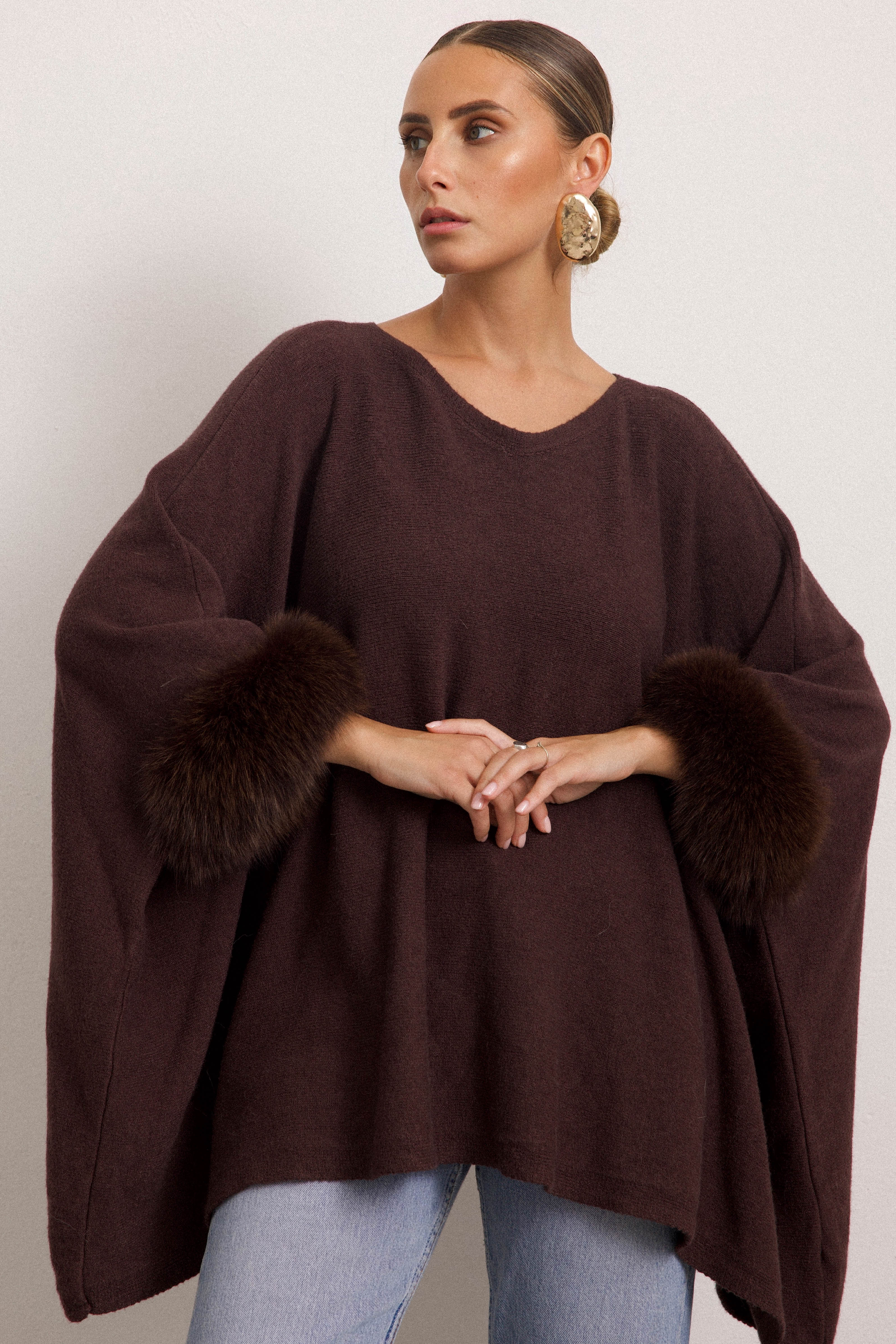 LONDRA - Poncho con polsini in volpe (Marrone)