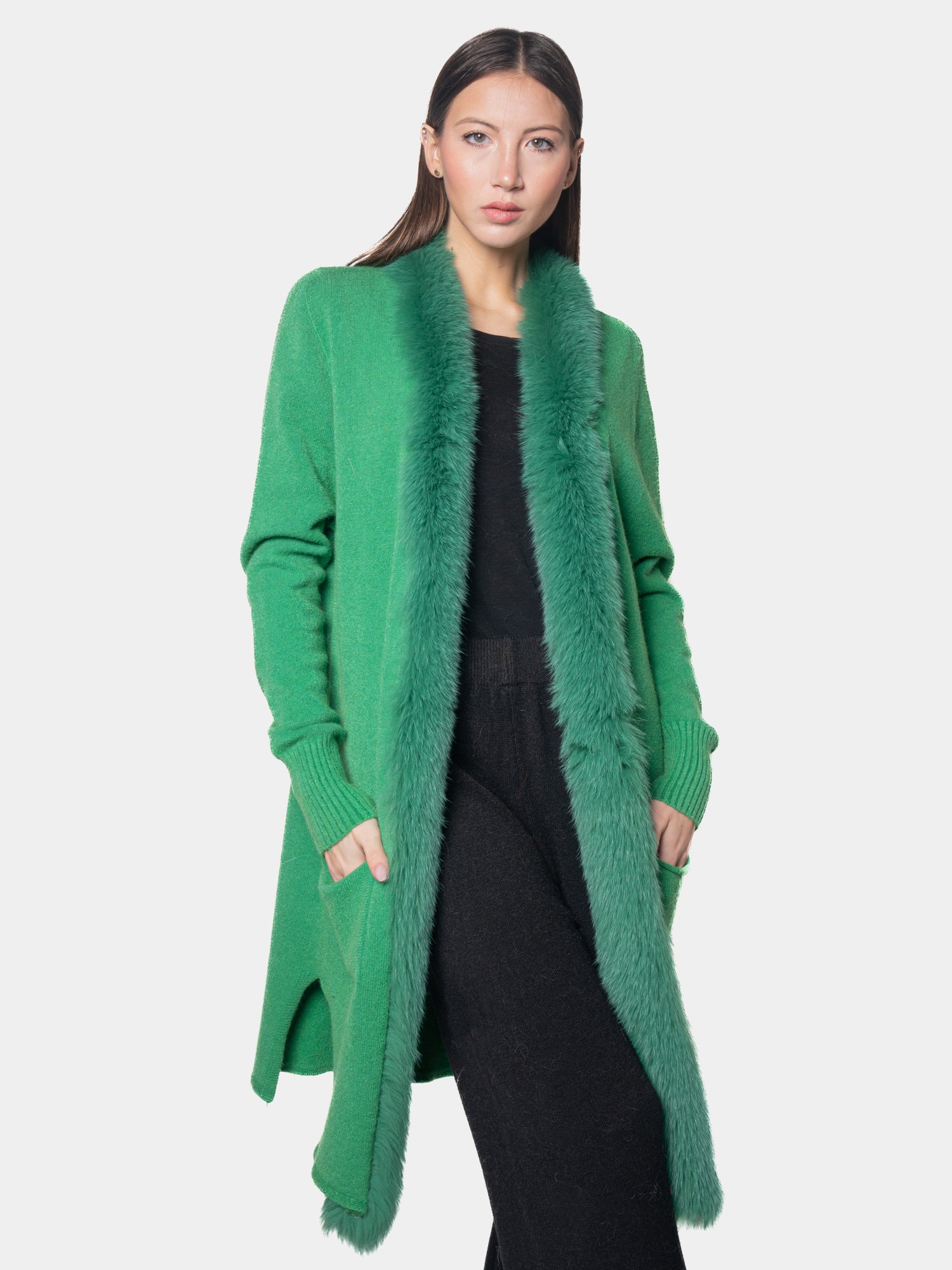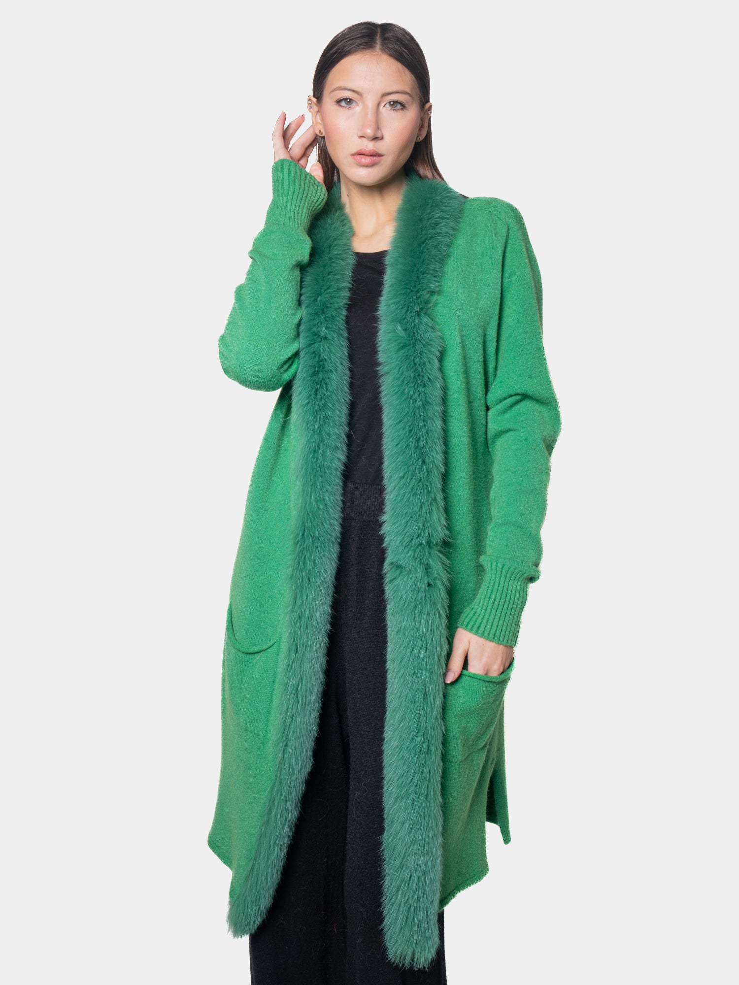 Montecarlo - Cardigan with Fox Front Bordature (Green)