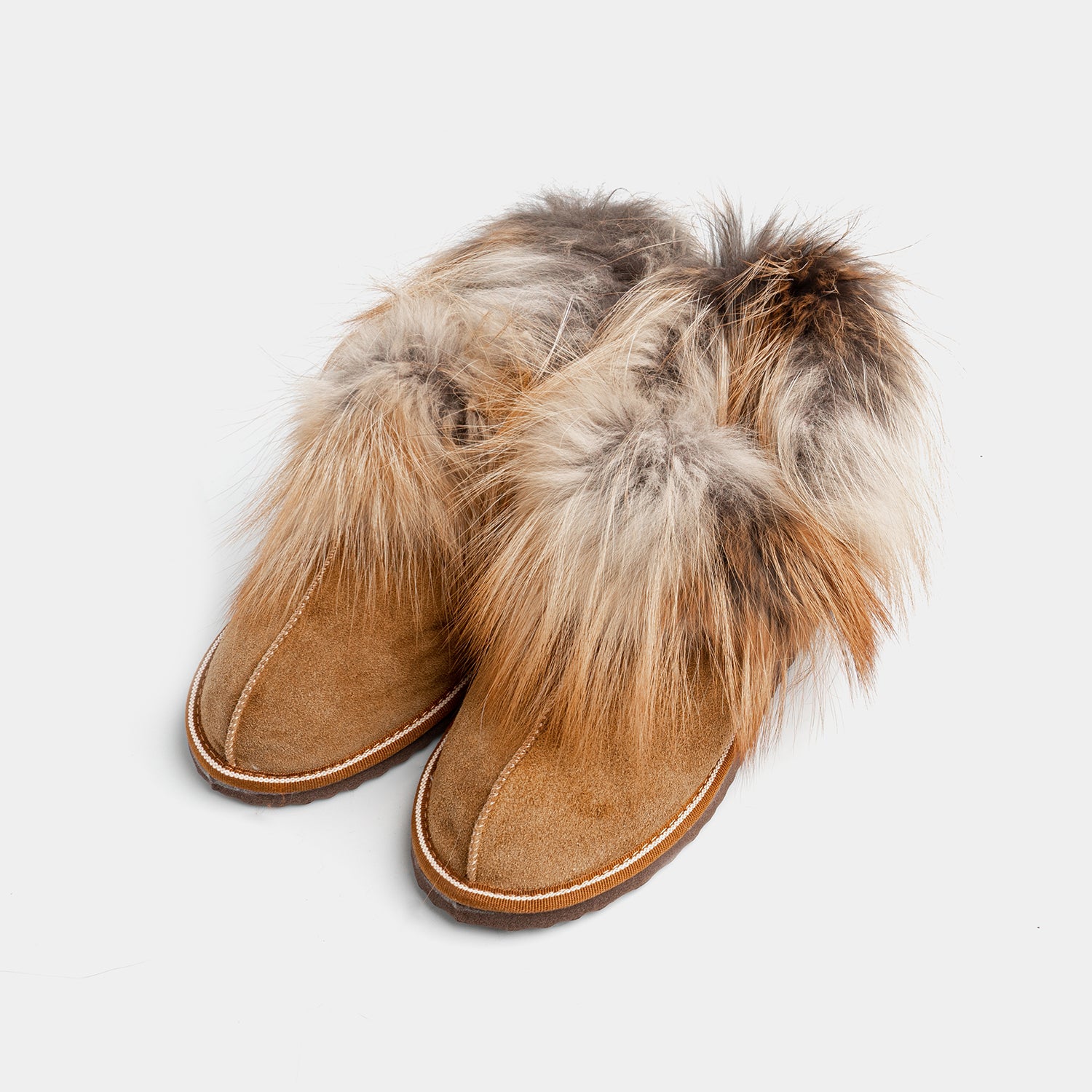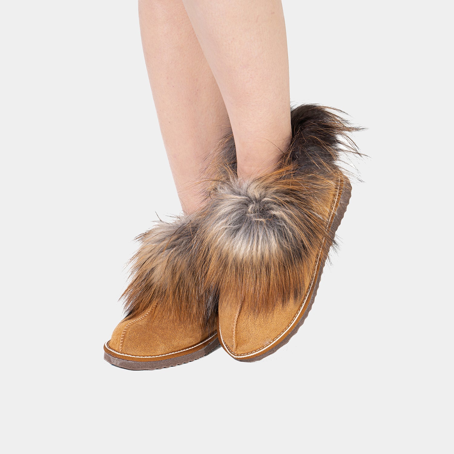 Monterosa - Suede ankle boot with fox bordering (camel)