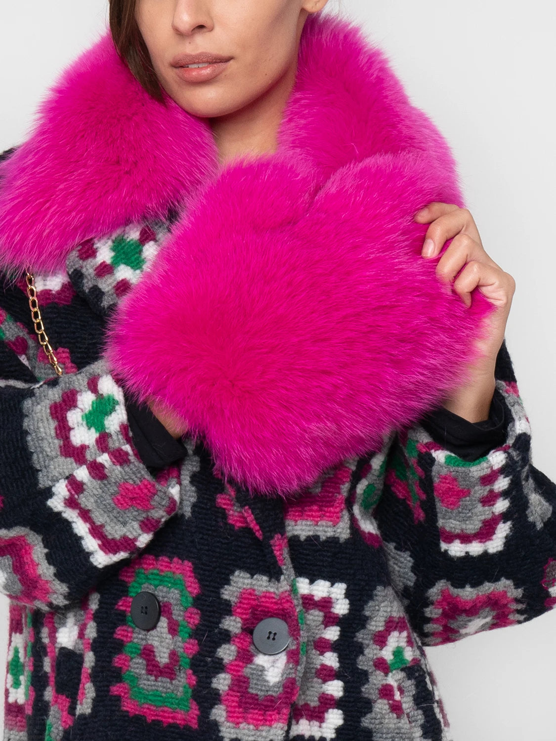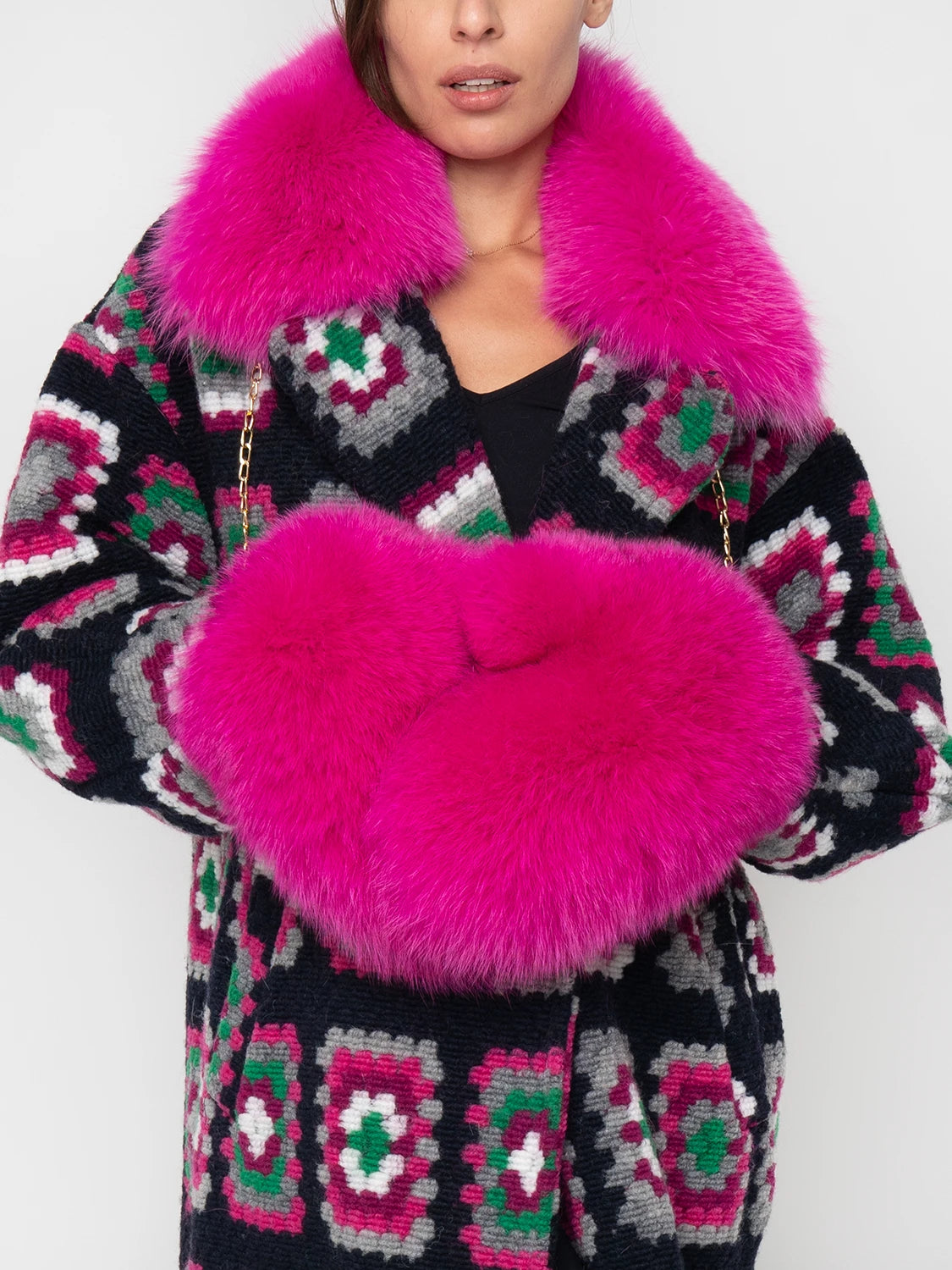 they are large mittens, in fox fur, with which you will not go unnoticed, from the most classic to the brightest colours, in addition to making your hands no longer feel cold, they are a truly luxurious accessory to show off around. They are equipped with an elegant chain that connects them, to be passed inside the coat, so as to be practical and will match perfectly with your everyday outfit. You won't be able to do without it anymore.