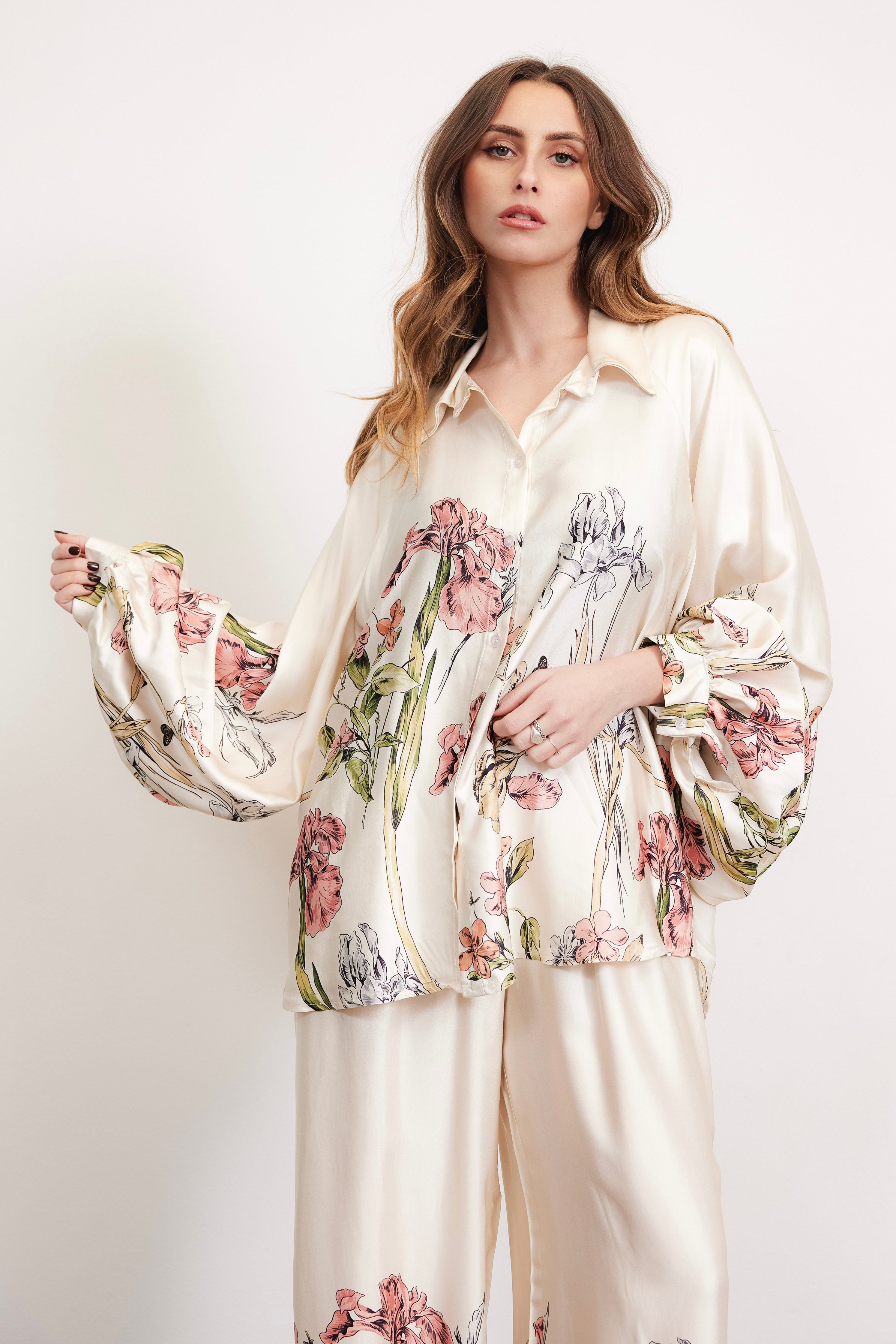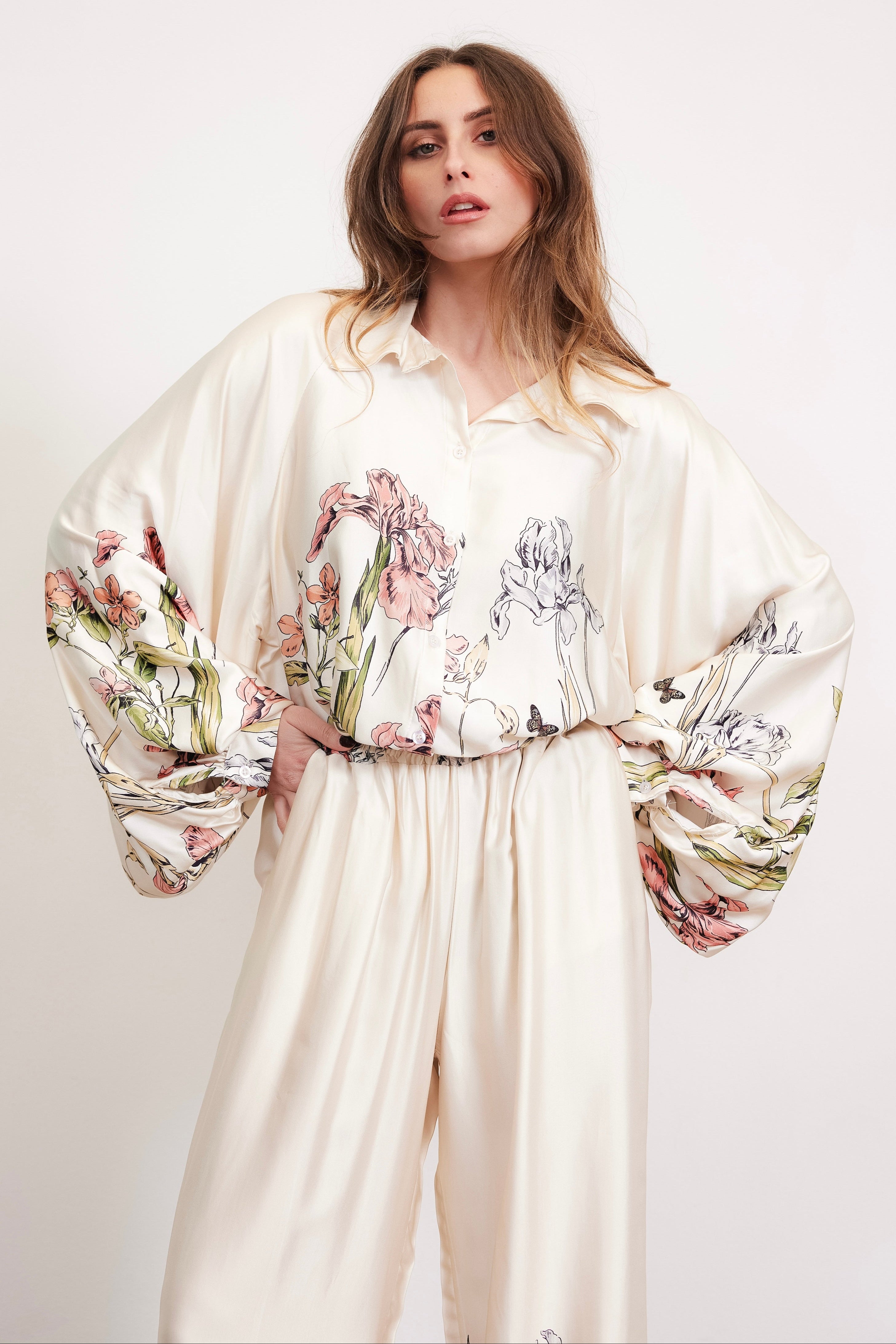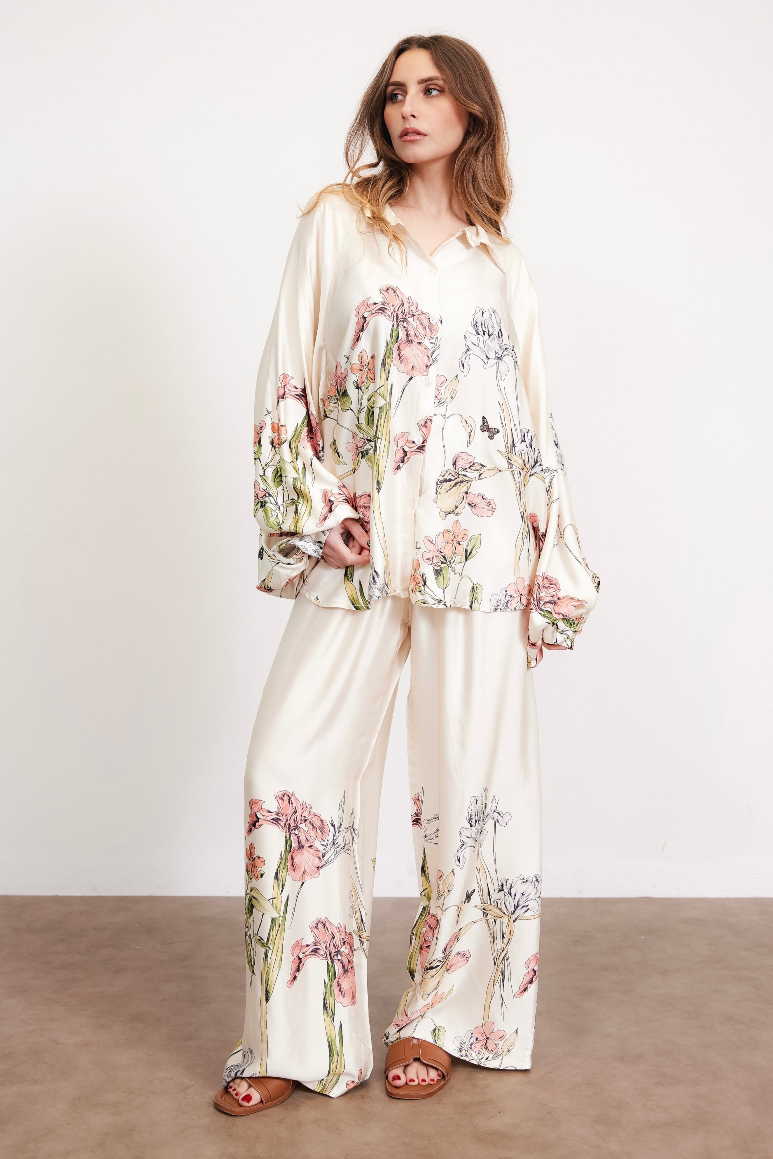 The trousers are elasticized in life and the shirt is soft, with central buttons and classic collar.