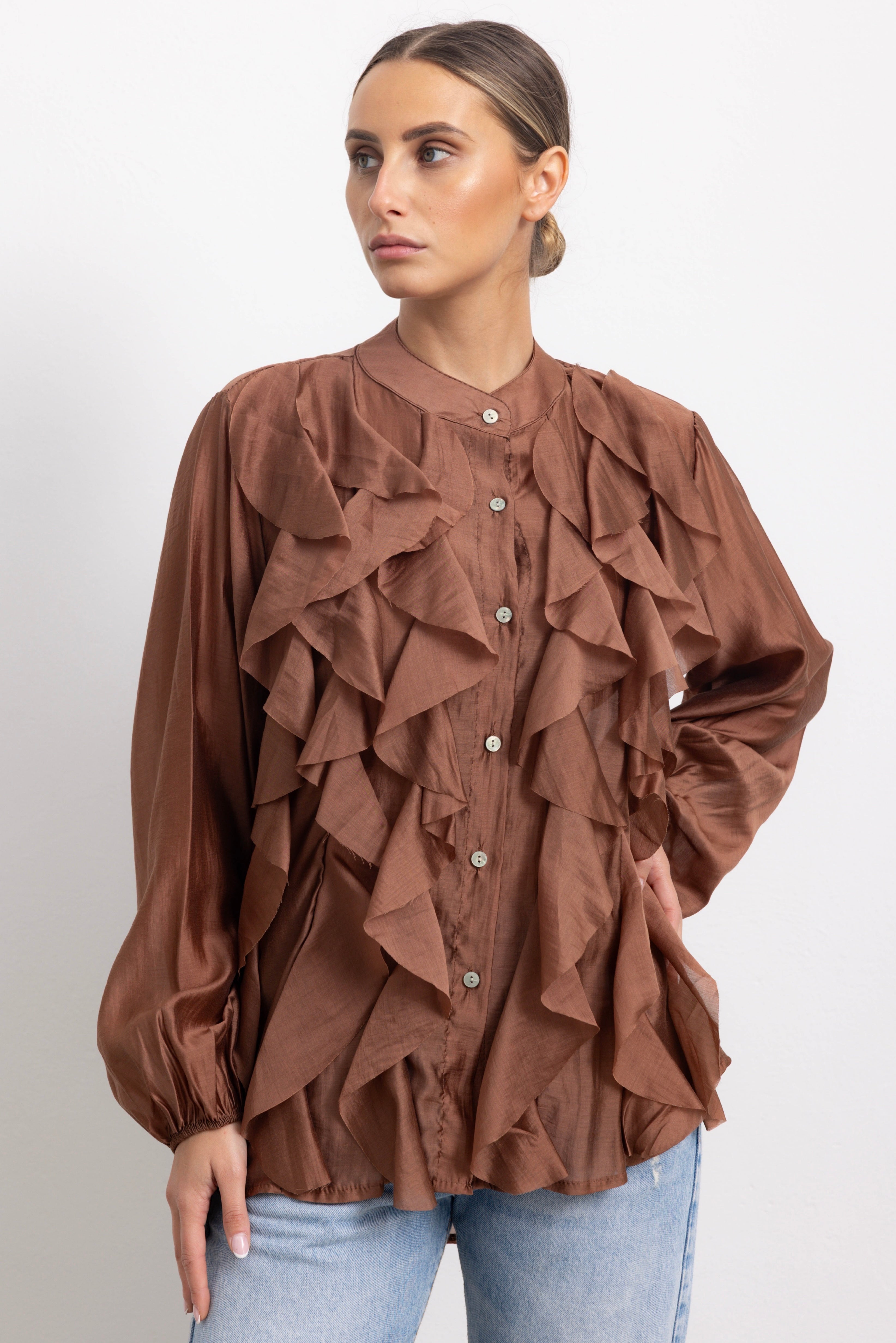 La camicia Tango è la nuova arrivata in casa Elisabetta Panerai. Disponibile in più fantasie. Si presenta come una regolare camicia, bottoni e rouches frontali, ed elegante colletto. La caratterizzano il retro più lungo rispetto alla parte frontale.
