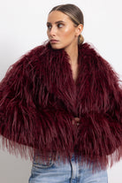 Giacchino cropped in ecopelliccia con collo reverse e manica regolare.