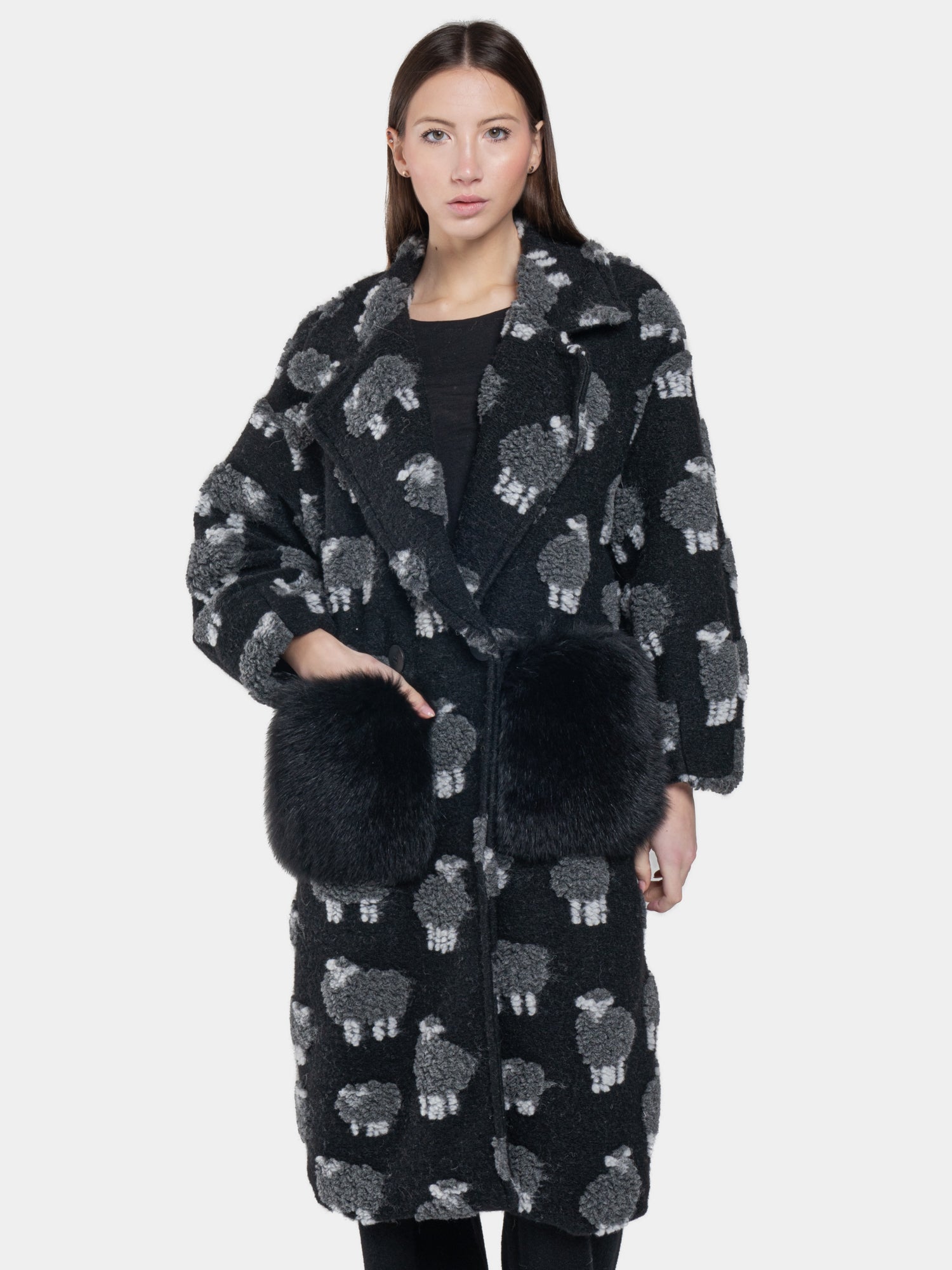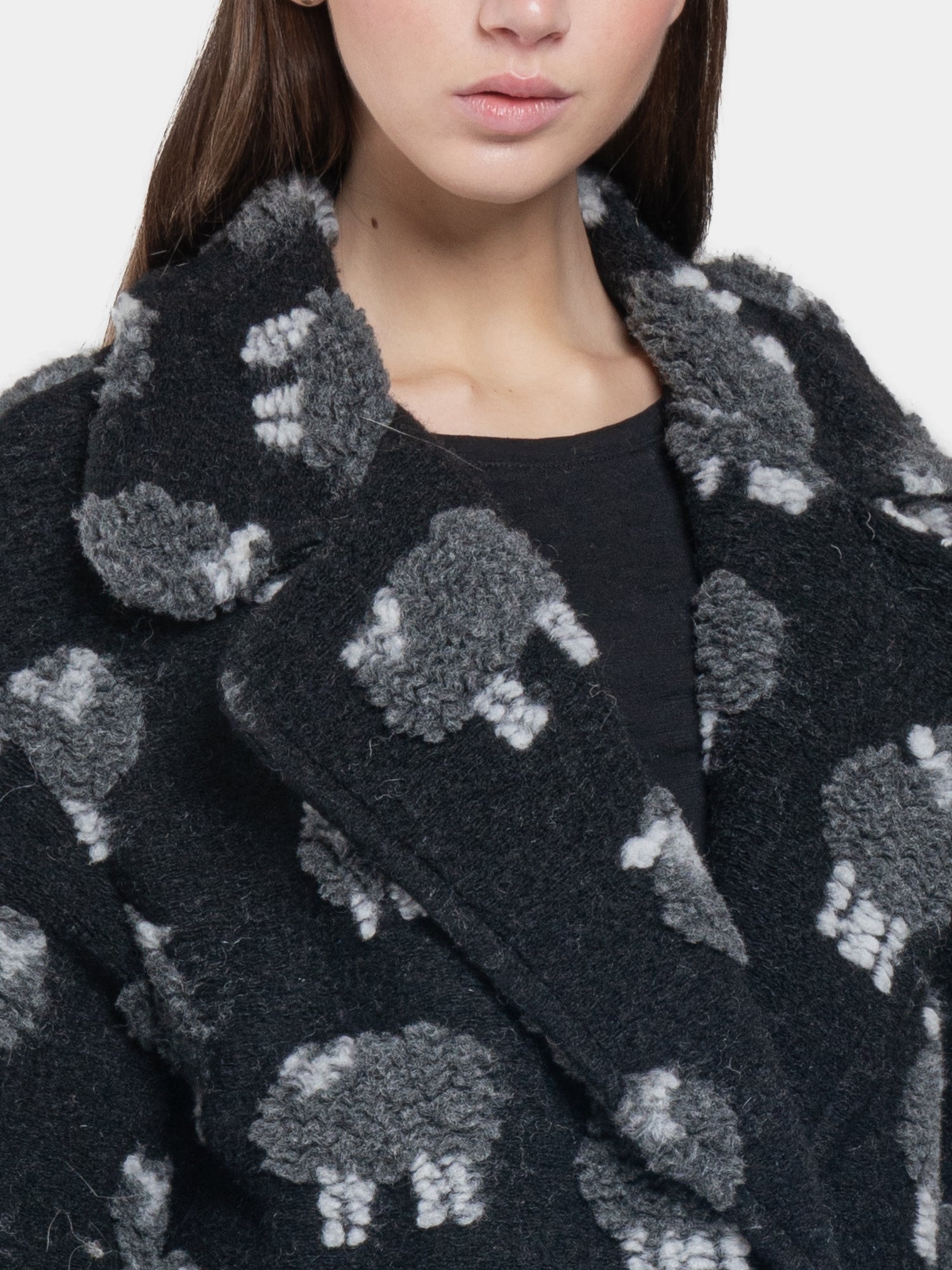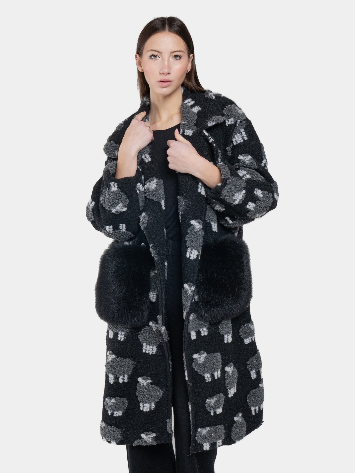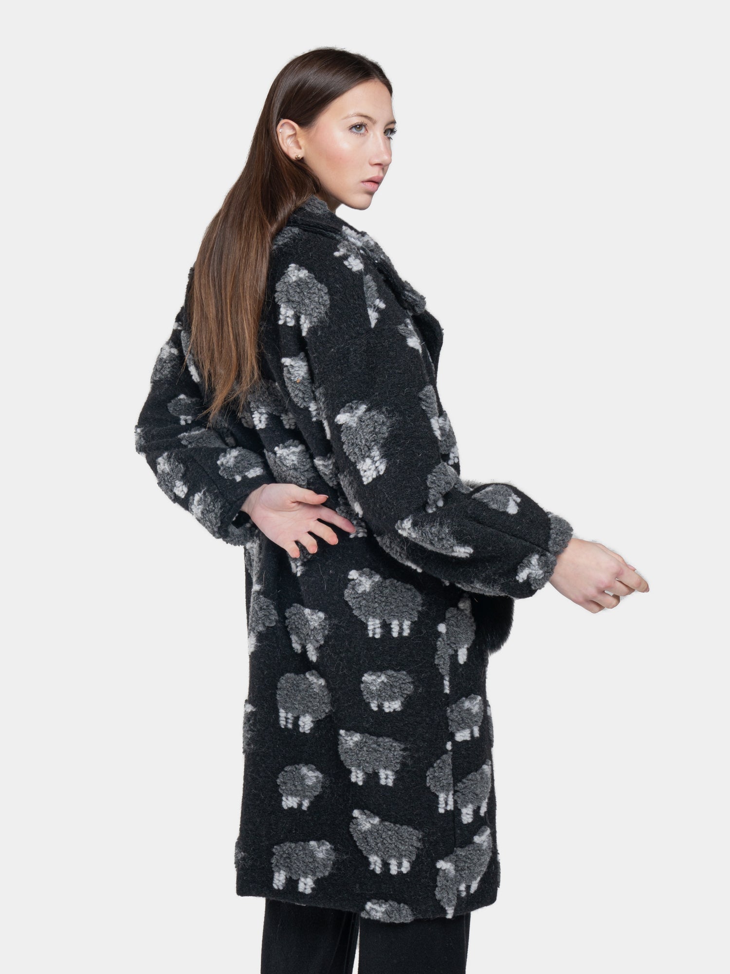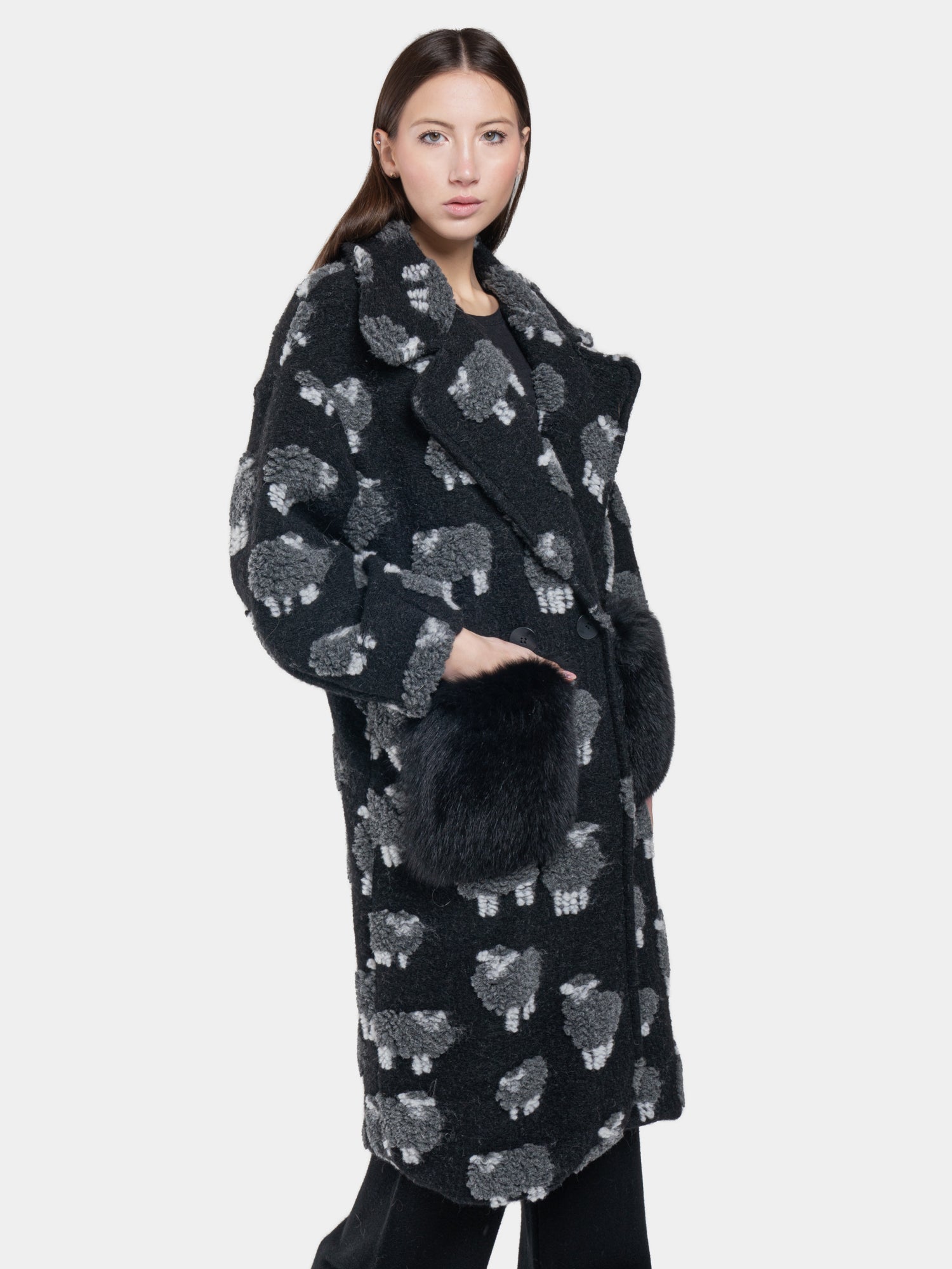 The black "sheep" coat is the perfect expression of comfort and sophisticated style. Made with high quality material, it offers a soft and enveloping texture, ideal for dealing with the coldest months with elegance