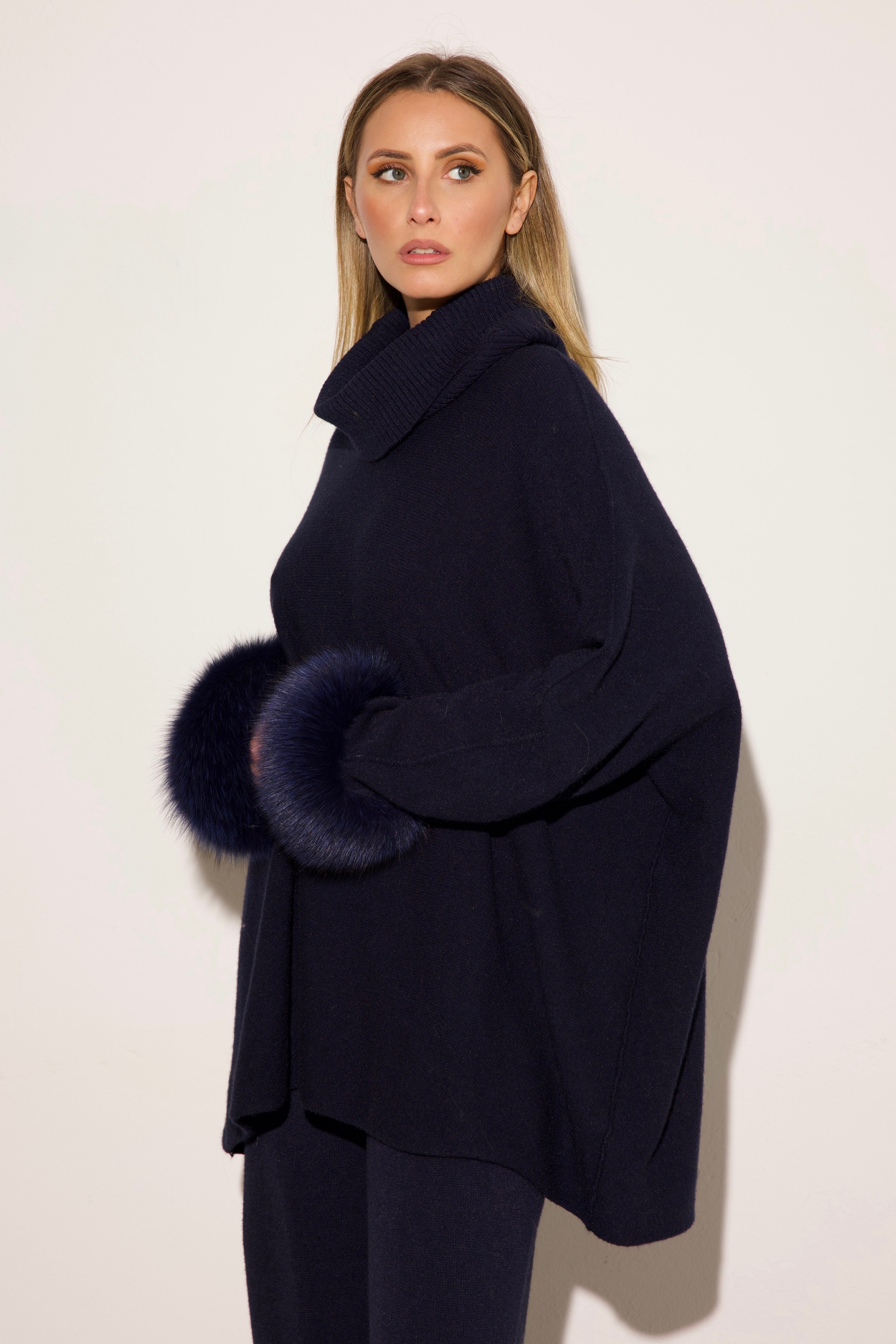 VENEZIA - Completo collo alto polsini in volpe (Blu)
